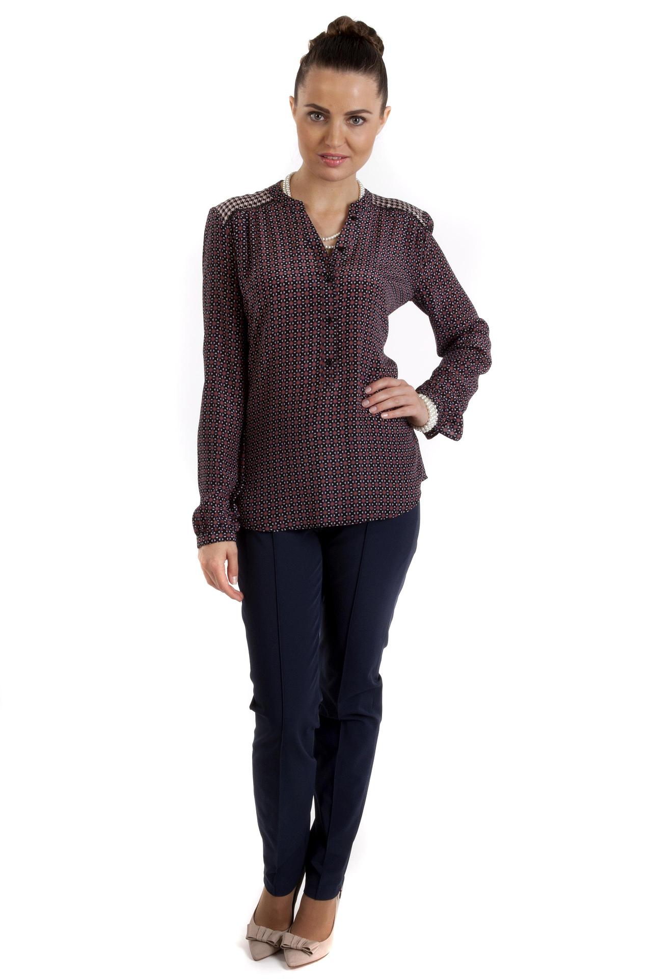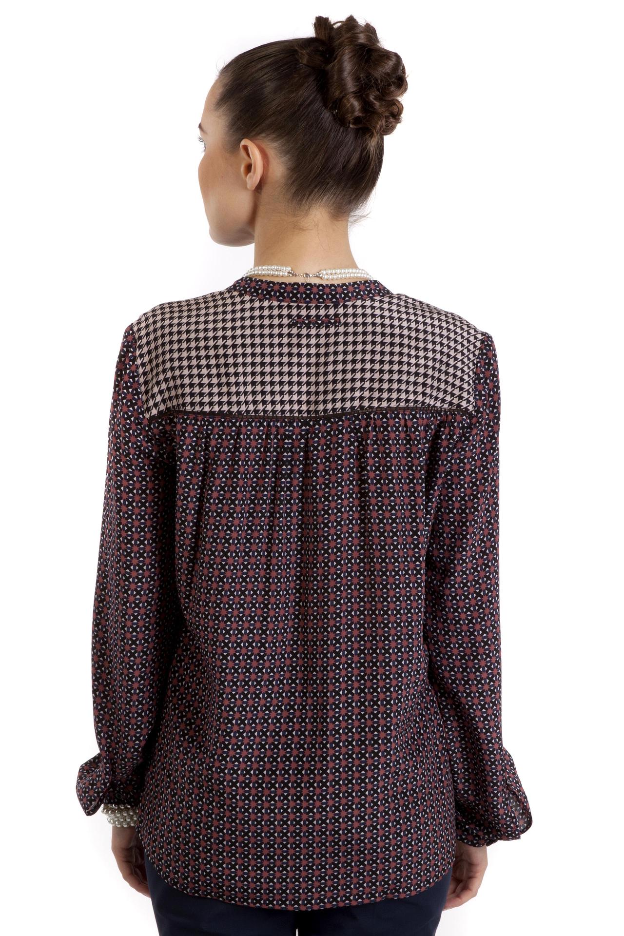 Блуза на пуговицах от бренда Set, для женщин. Это стильная блуза, пошитая из 100% шелка. Ткань украшена оригинальным принтом в красных и синих цветах, а на плечах есть вставки с ломанной клеткой.