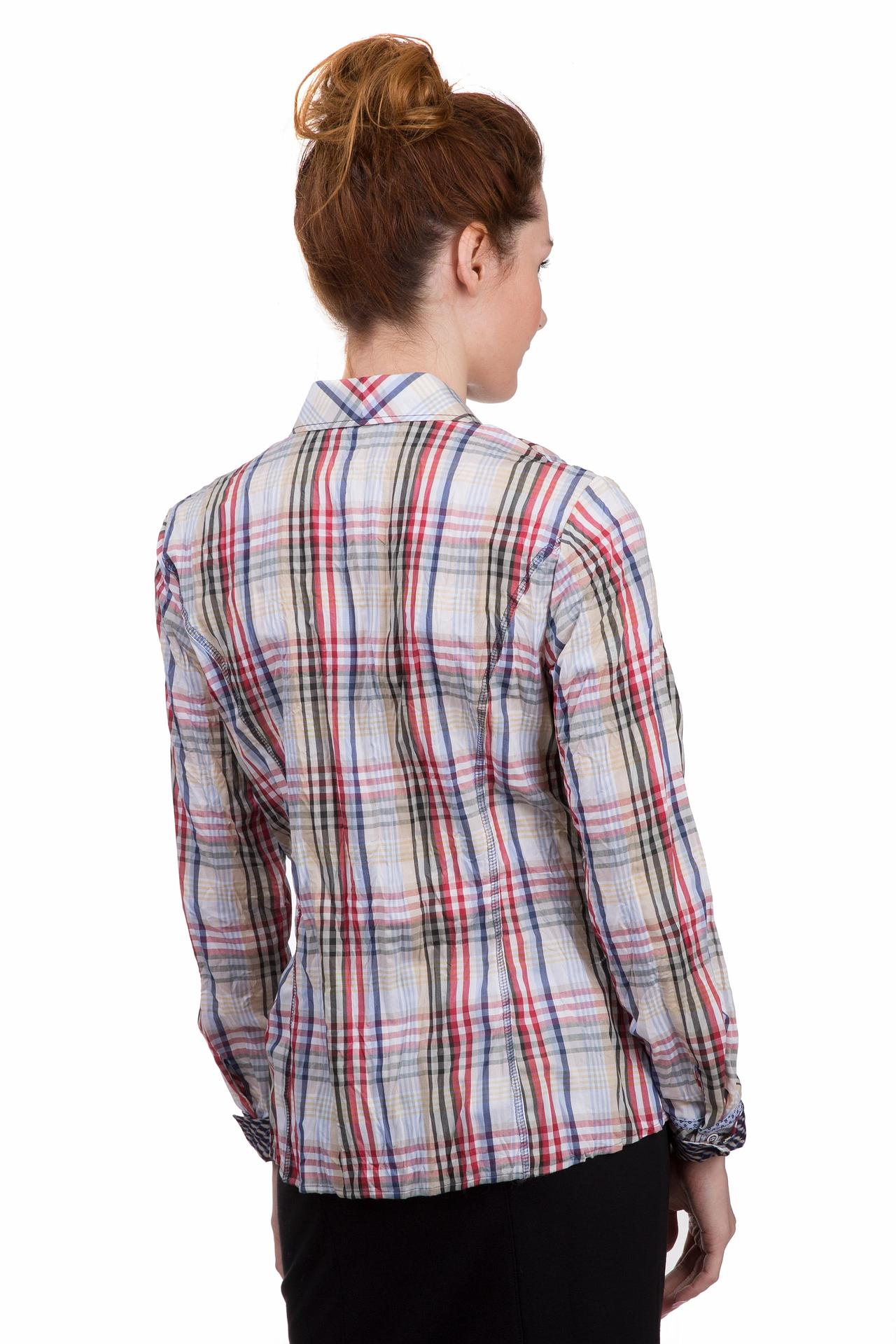 Клетчатая женская блуза от бренда SE Stenau белого, чёрного, бежевого, зелёного, голубого и синего цветов. Это изделие было выполнено из хлопка и полиэстера. Данная модель предназначена для демисезонного периода. Дополнена карманом на груди, маленькой нашивкой, манжетами на рукавах. Застегивается с помощью маленьких серых пуговиц. Отличный вариант для повседневного образа.