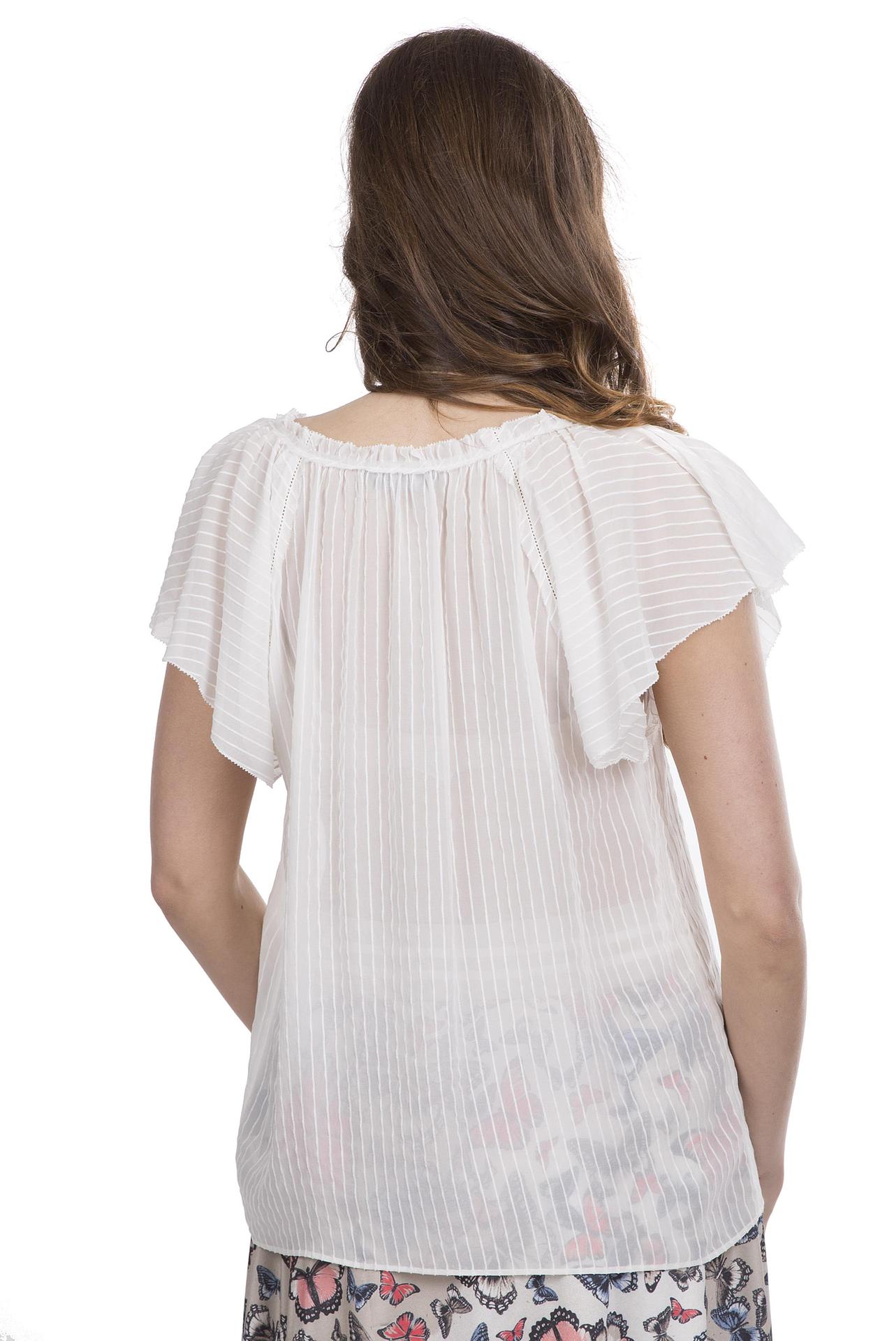 Эта блуза – идеальный выбор для создания женственных и элегантных образов. Легкие рукава-крылышки добавляют модели воздушности и романтичности. Сочетайте ее с юбками, брюками или джинсами, чтобы создать свой неповторимый стиль.