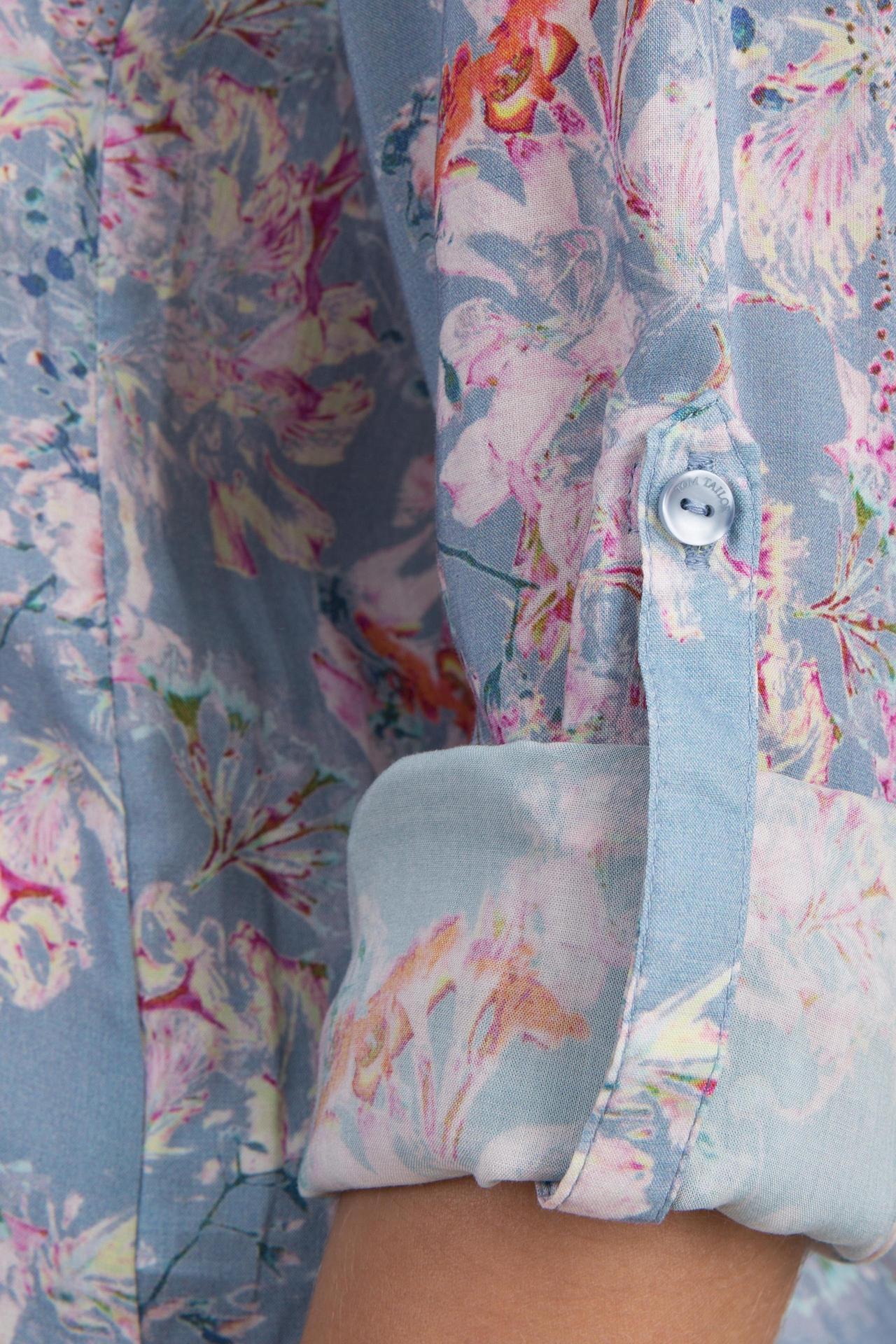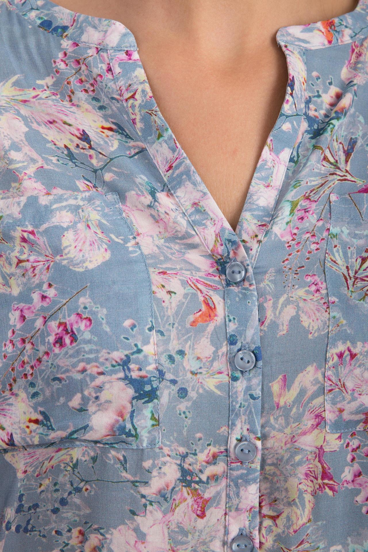 Красивая женская блуза Tom Tailor голубого, розового, оранжевого и синего цветов. Это изделие было выполнено из вискозы. Данная модель предназначена для демисезонного периода. Дополнена карманами на груди и разноцветным цветочным рисунком. Застегивается с помощью маленьких голубых пуговиц. Эта блуза свободного кроя. Сочетается с разной одеждой.