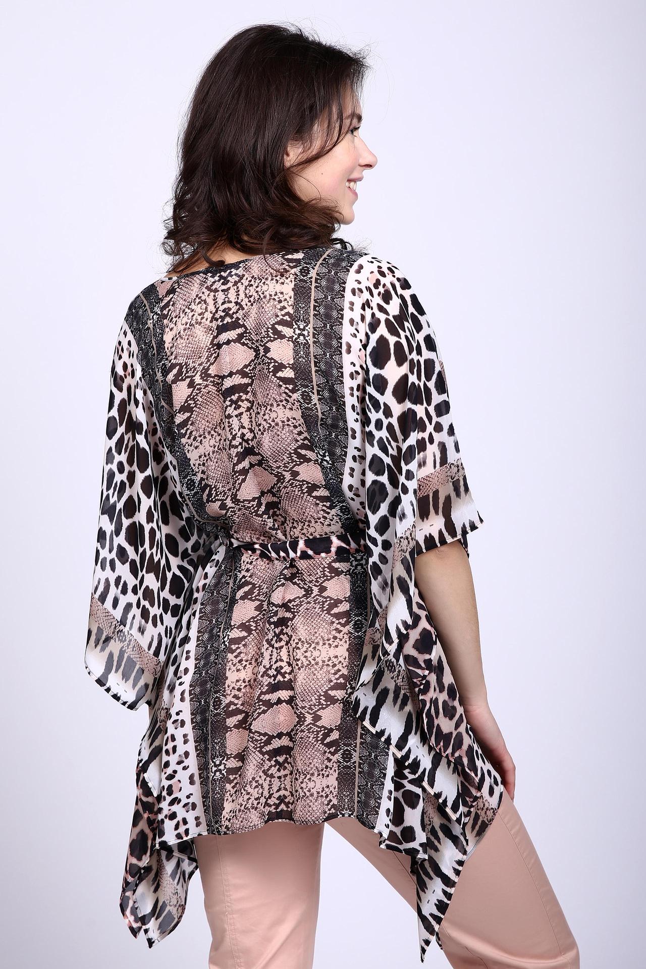 Эффектная блуза от бренда Taifun, выполненная в стиле кафтан, станет ярким акцентом вашего образа. Оригинальный леопардовый принт в сочетании с вставками имитирующими кожу рептилии, создает дерзкий и модный вид. Модель свободного кроя с широкими рукавами и поясом подчеркнет достоинства фигуры и обеспечит комфорт.