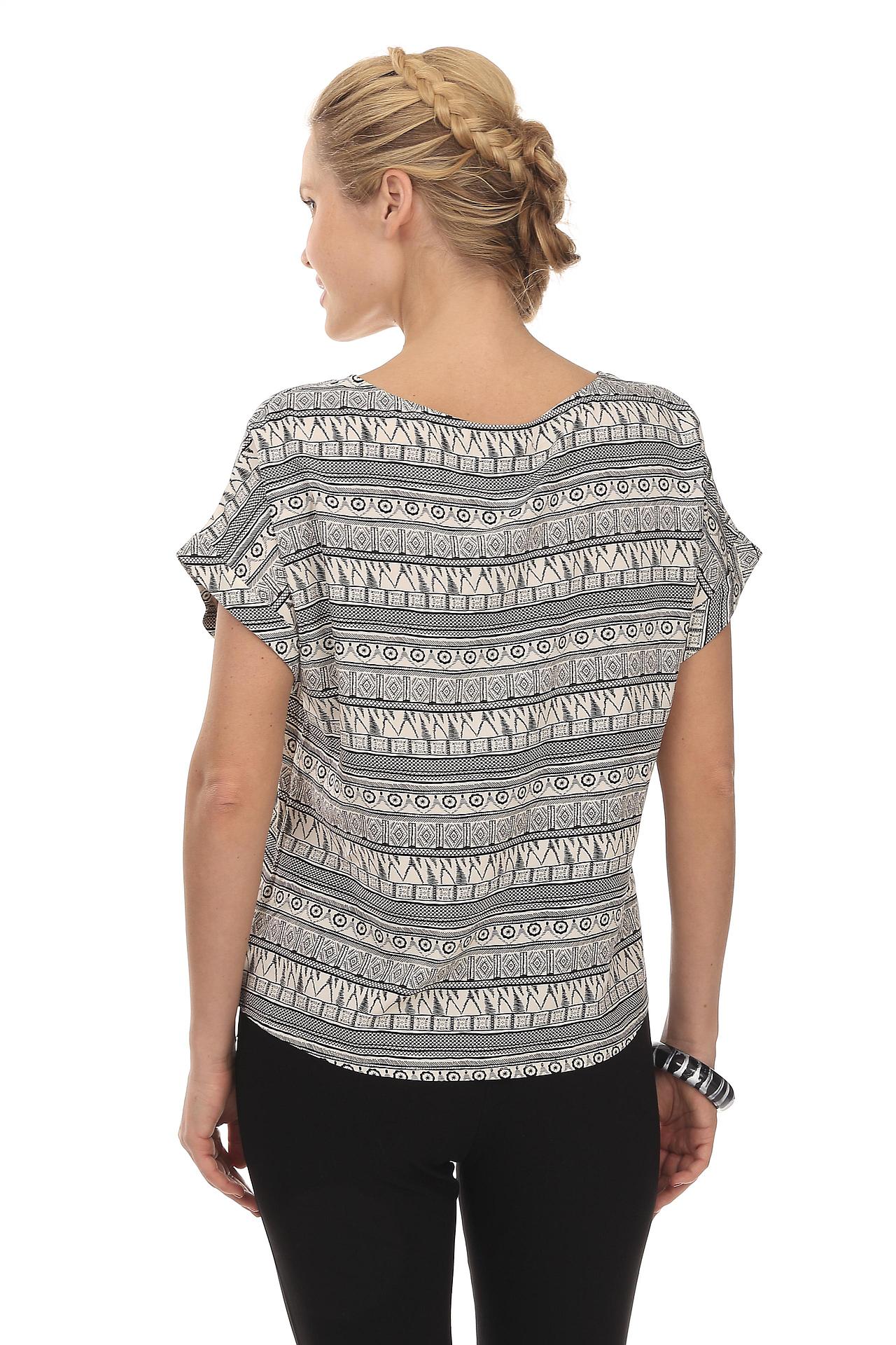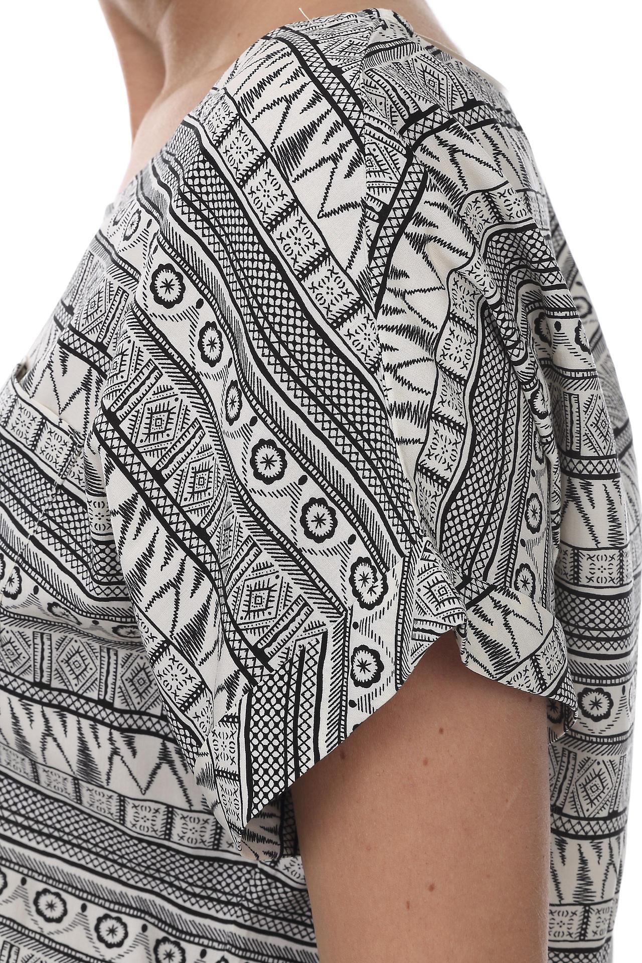 - Дизайн: Оригинальный принт в этническом стиле, выполненный в монохромной гамме, придает образу выразительность и стиль. Свободный крой и рукава-кимоно обеспечивают комфорт и свободу движений.