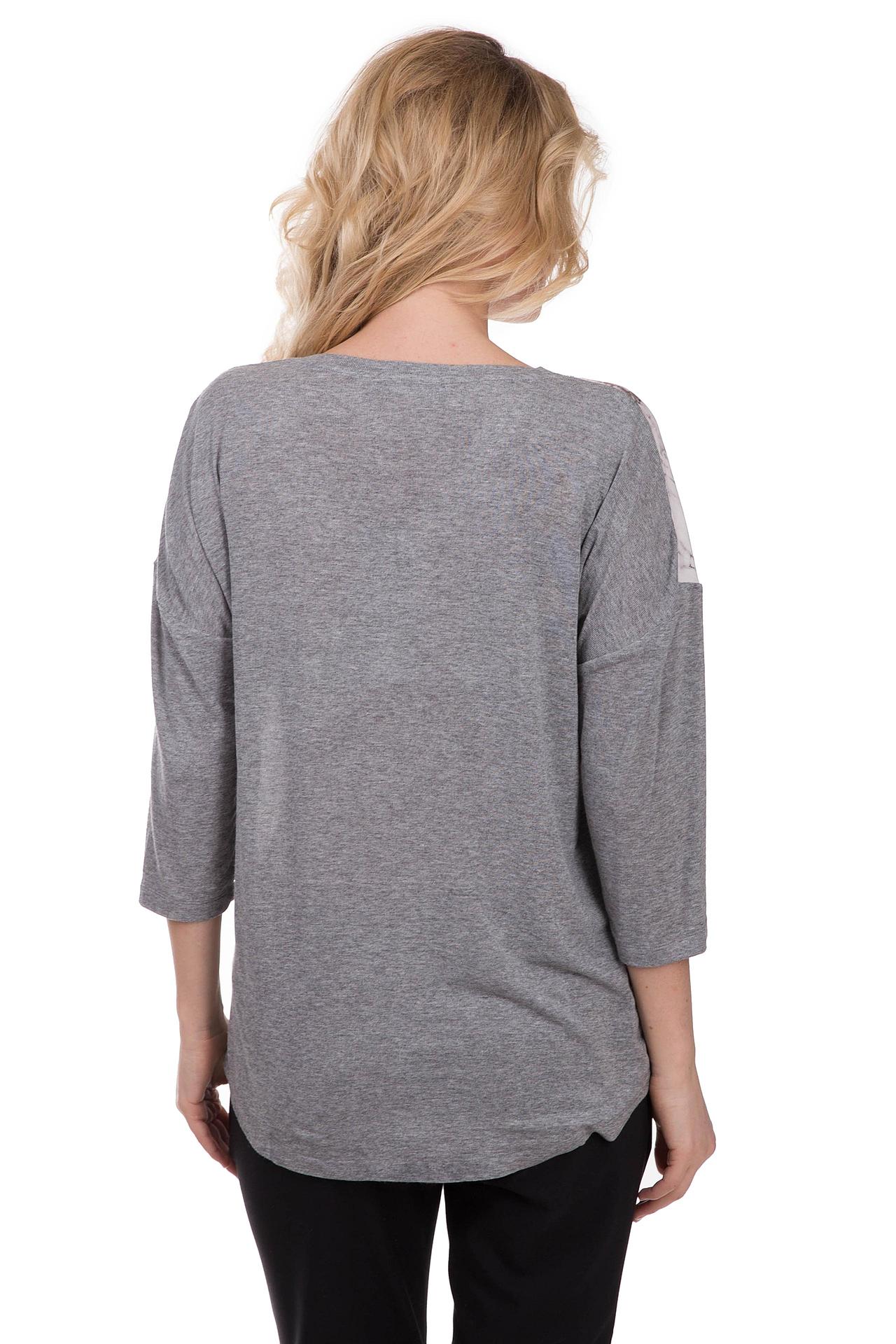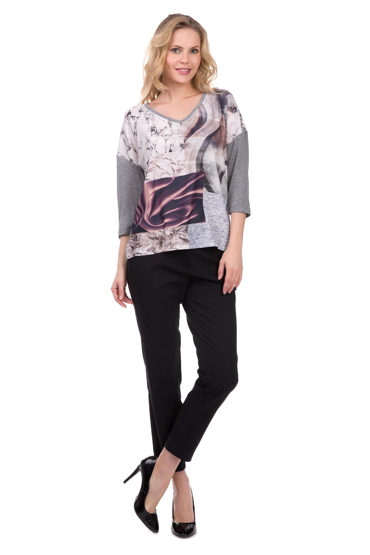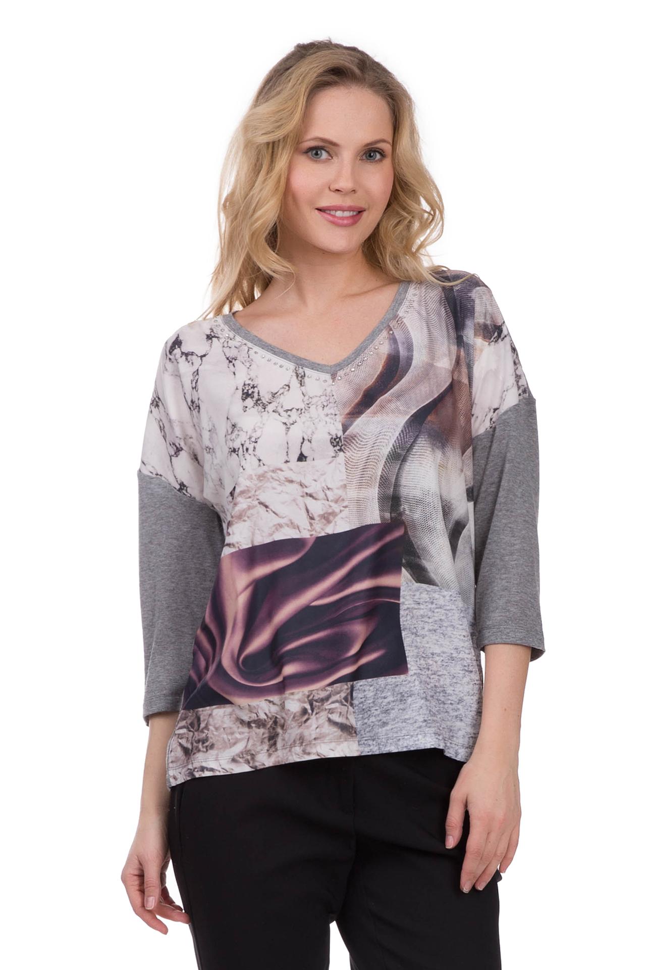 - Современный дизайн с принтом. Блуза украшена многогранным абстрактным принтом в сочетании с однотонными серыми элементами, что создает динамичный и запоминающийся образ. Эффект пэчворка придает изделию уникальность и глубину.