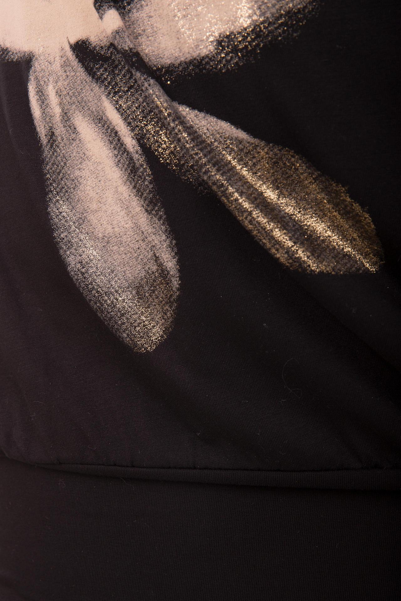 - Дизайн: Классический чёрный цвет дополнен художественным принтом с золотыми и серебристыми элементами, создавая элегантный и запоминающийся образ.