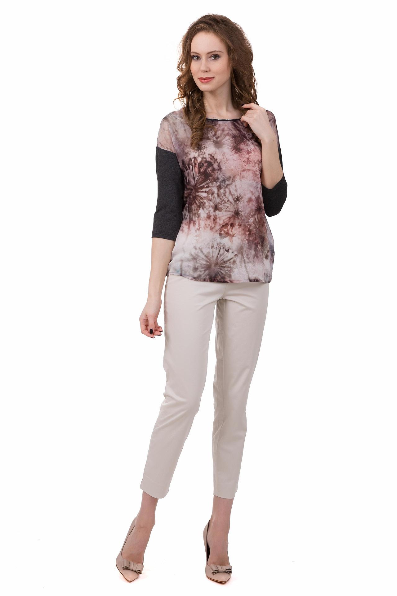 - Цветовая гамма: Основная цветовая палитра представлена сочетанием нежных пудровых, коричневых и серых оттенков, что позволяет легко комбинировать блузу с различными предметами гардероба.