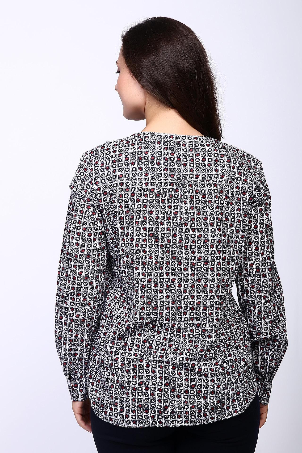 - Дизайн: Утонченный черно-белый принт с цветочным мотивом, придающий блузе неповторимый шарм.