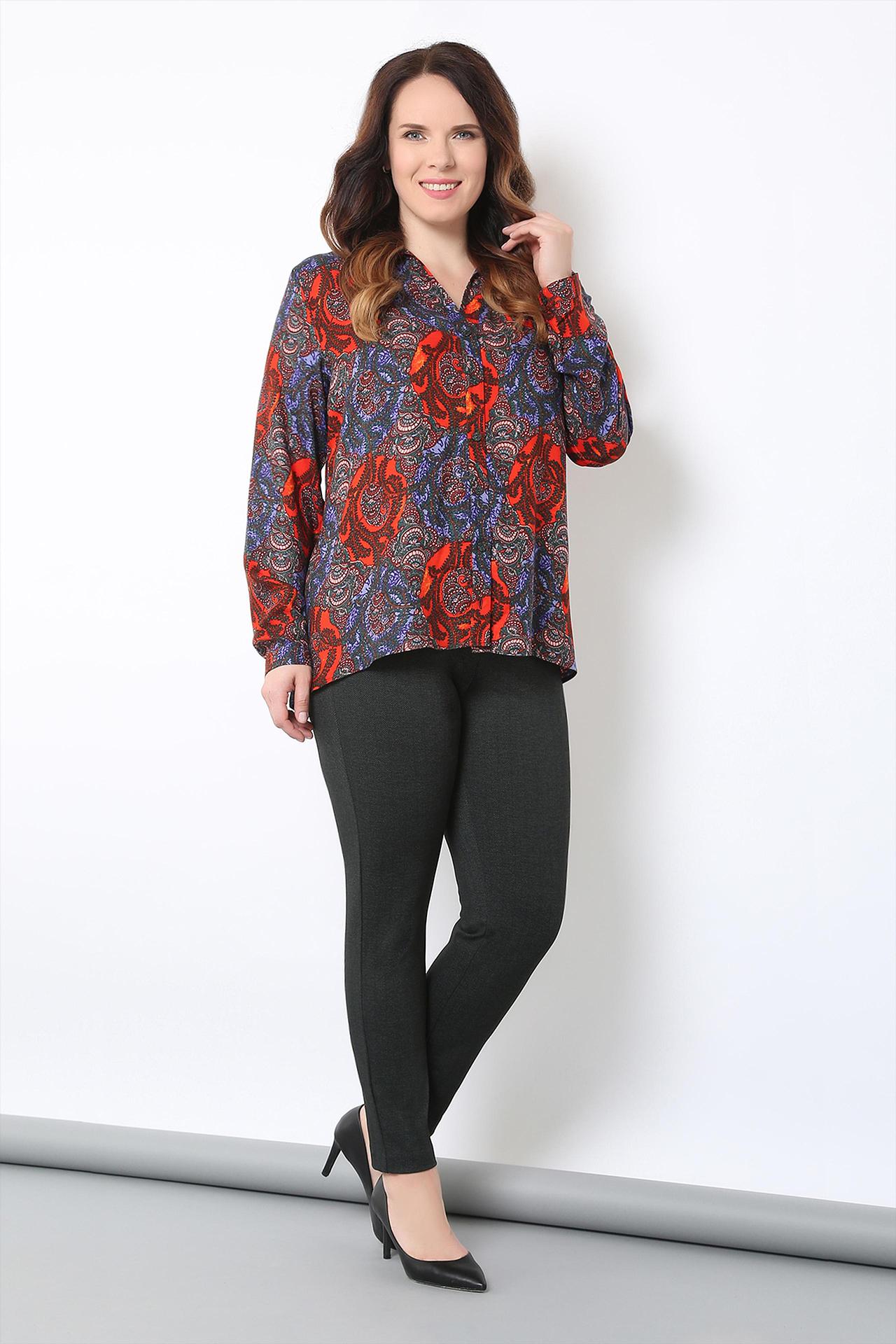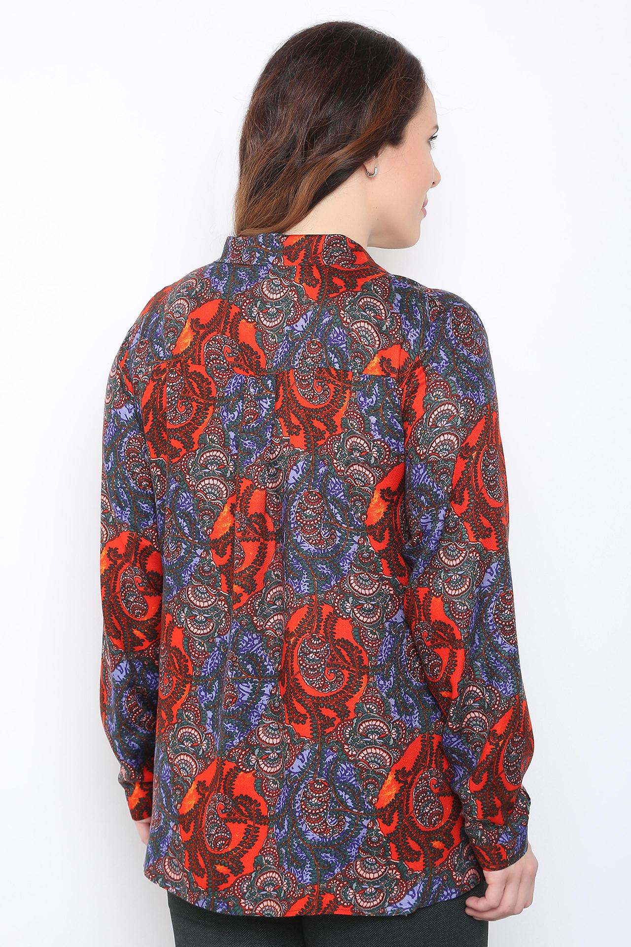 Элегантная женская блуза Horosha с длинным рукавом и отложным воротником. Модель прямого кроя с ярким восточным принтом станет выразительным акцентом в вашем гардеробе, подходящим как для офисных будней, так и для особых случаев.