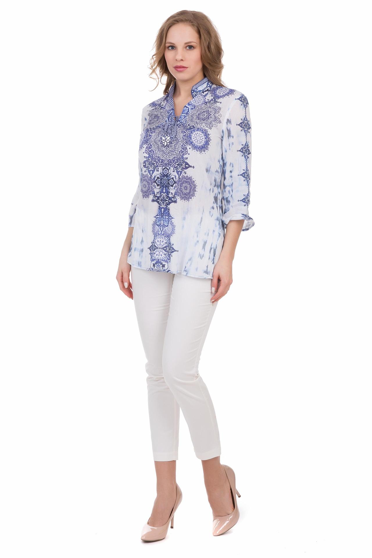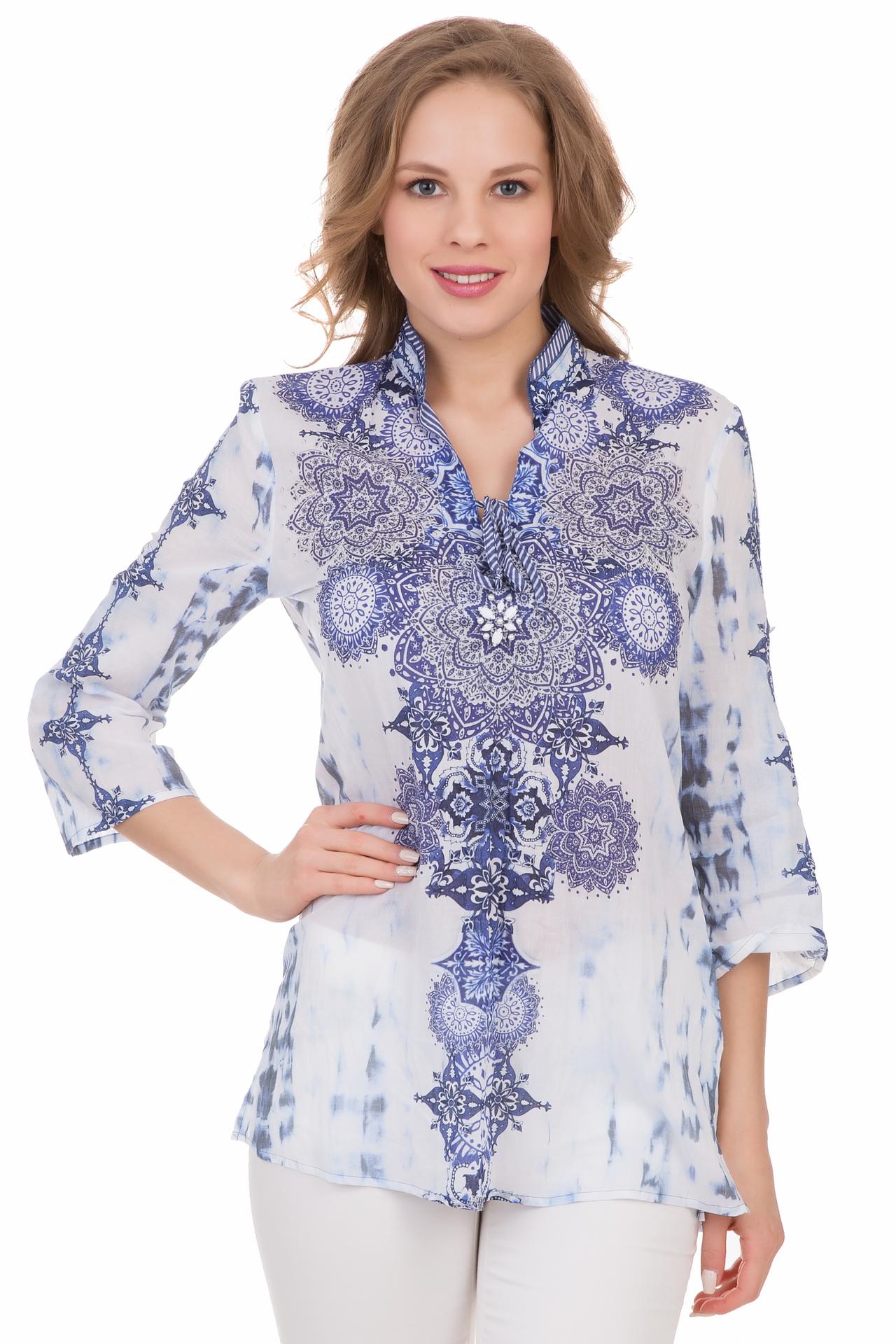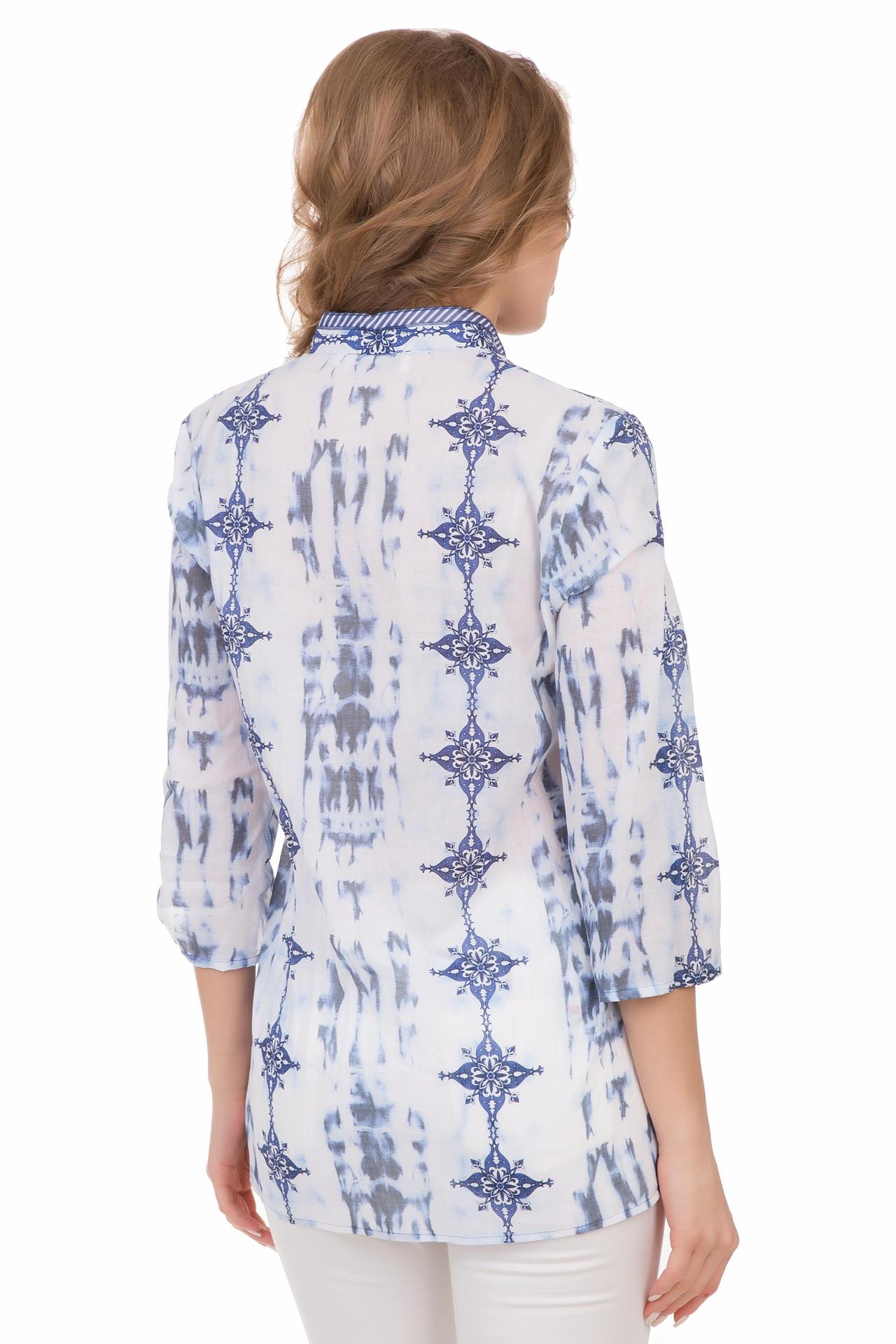 Блузa SE Stenau бело-голубая. Фантазийный рисунок с круглыми мотивами украшает эту блузу и делает ее изделием класса люкс! Рукав три четверти и необычная отделка горловины – дополнительные «плюсы» данной модели. Состав: 100%-ный хлопок. Удлиненная блуза чудесно подходит для сочетаний с брюками облегающего кроя и с капри, а также леггинсами.