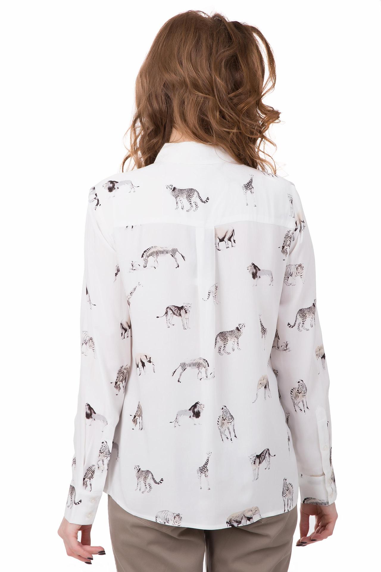 Необычная и интересная блуза Pezzo содержит в своем составе только вискозу. На белом фоне ткани – ненавязчивый принт с различными экзотическими зверушками черного и бежевого цвета. Модель дополнена воротничком-гармошкой. Для тех, кто не боится выглядеть фантазеркой и большой оригиналкой.
