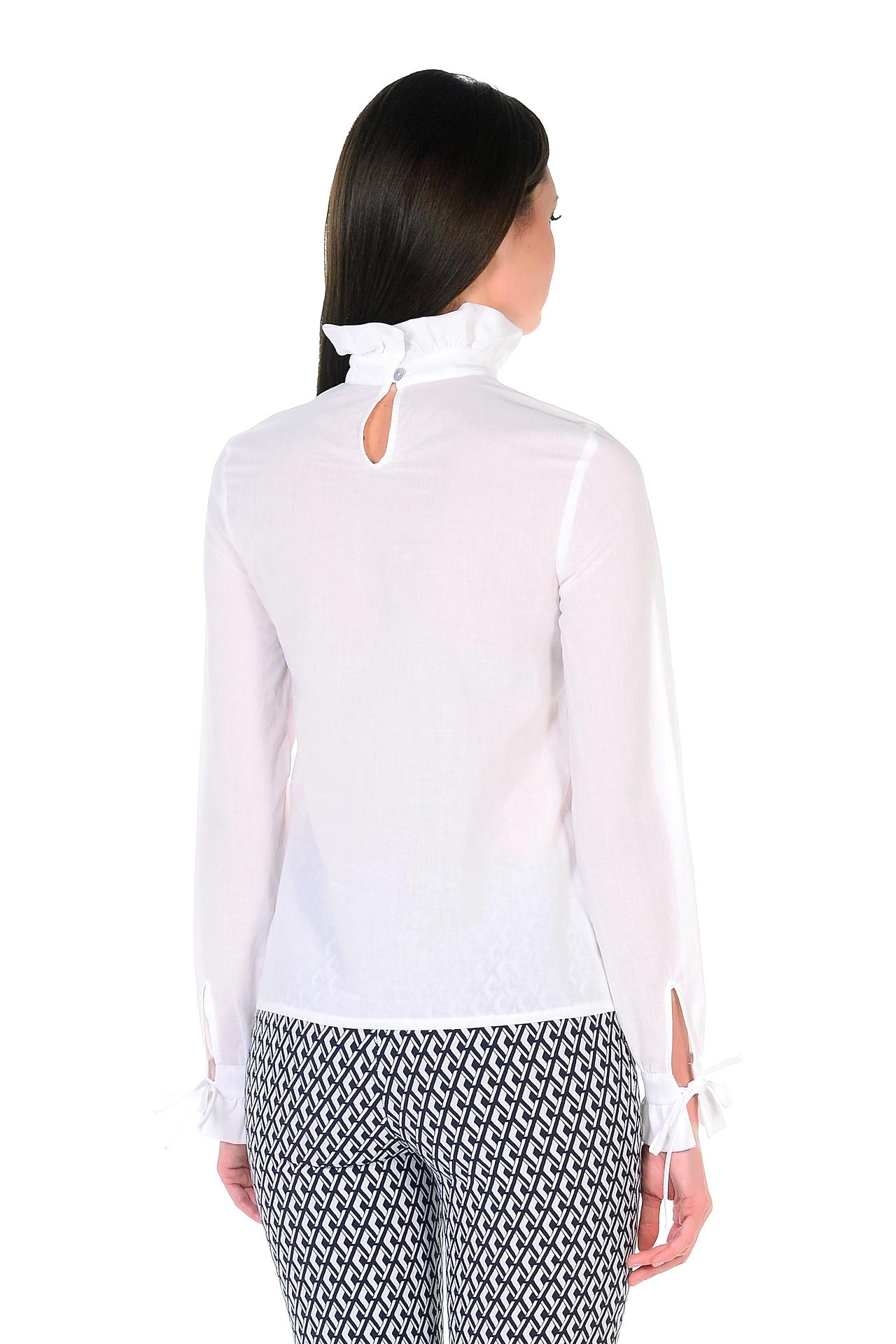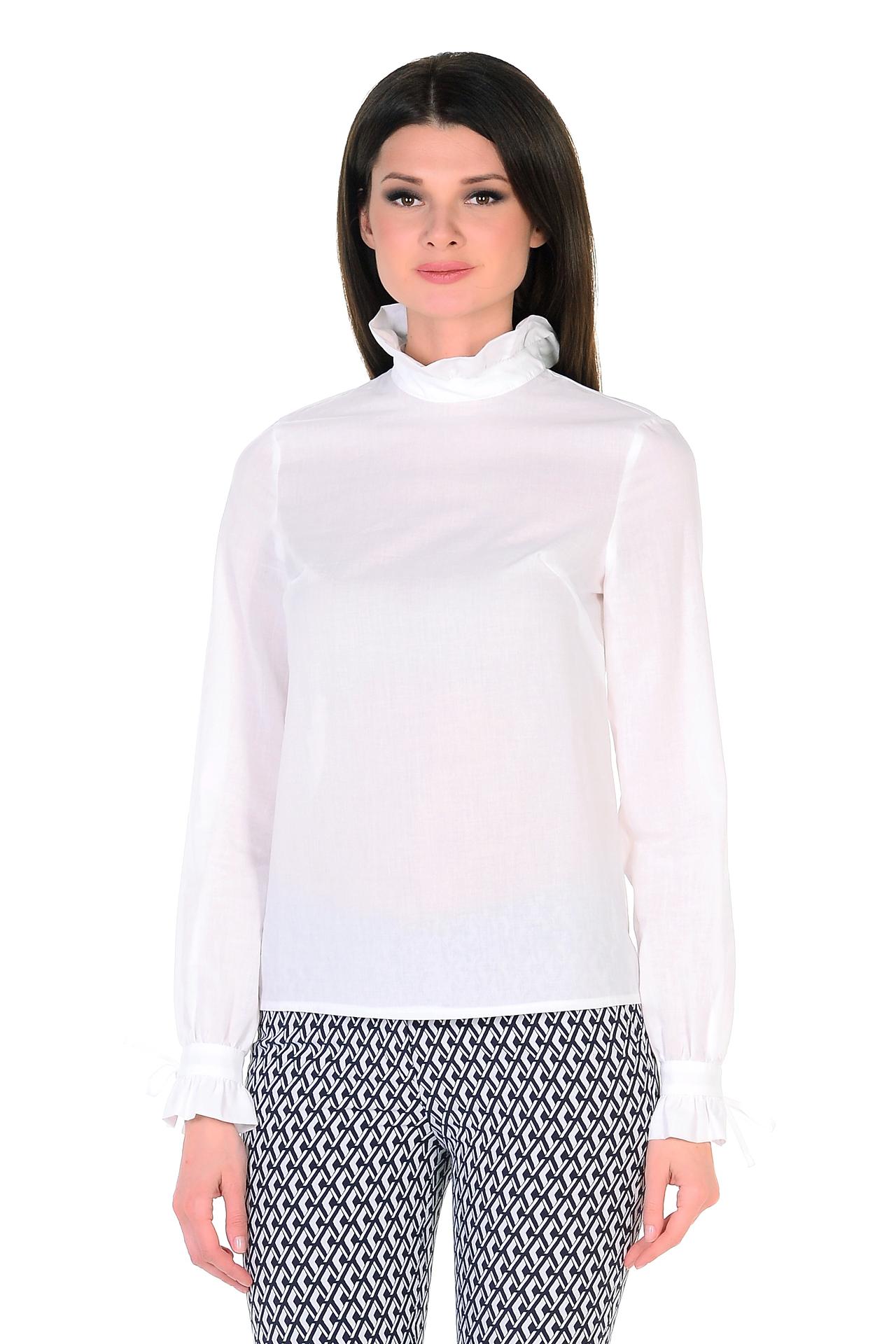 Блуза XARIZMAS белая с воротником-стойкой и манжетами-рюшами