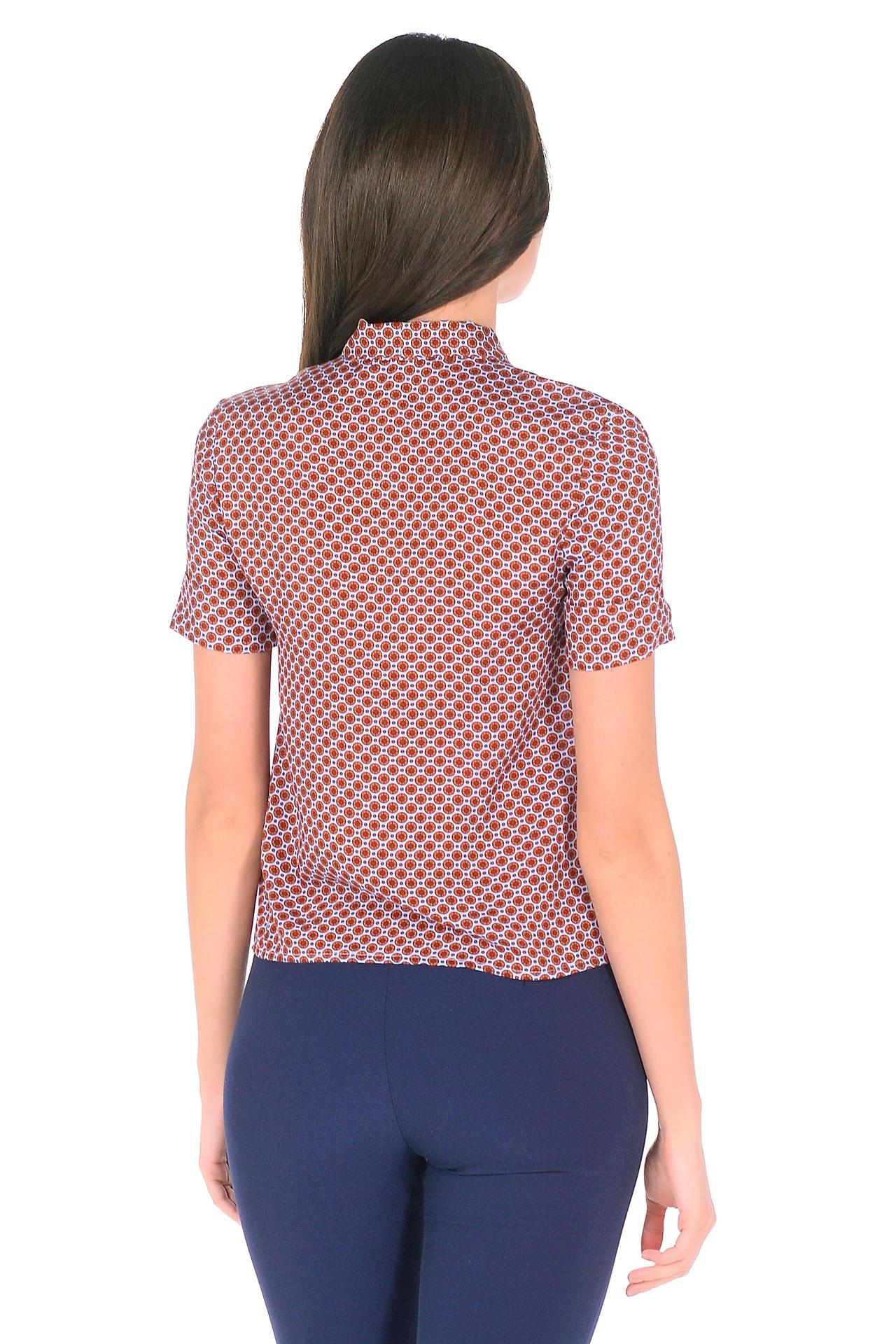 - Принт: Оригинальный геометрический узор в бордовых и белых тонах делает блузу заметной и модной.