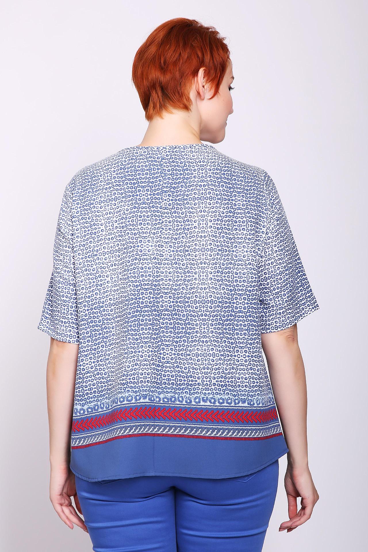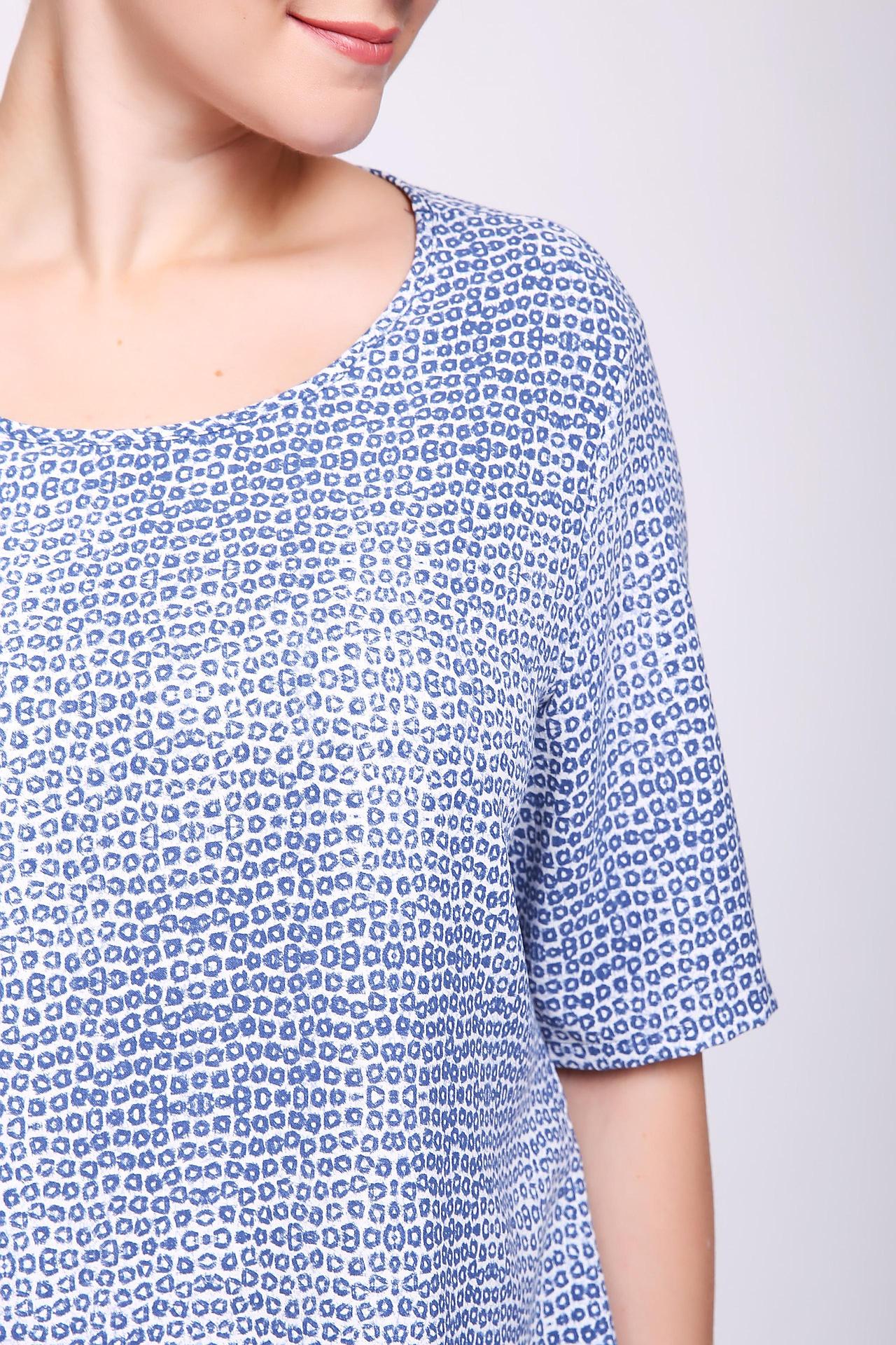 Блуза женская голубого цвета бренда Marc Aurel. Модель выполнена прямым фасоном. Изделие дополнено округлым воротом, втачными, короткими рукавами. Ткань имеет принт и кайму. Подшита блуза полукругом. Состав ткани: 100% полиэстер. Сочетать можно с различными брюками, юбками.