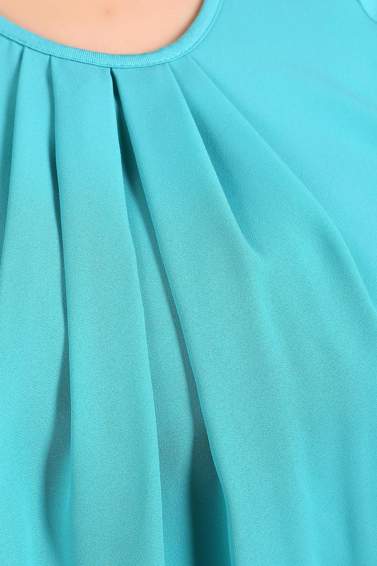 - Дизайн: Классический крой с короткими рукавами и округлым вырезом горловины. Центральная часть блузы украшена изящной драпировкой, которая придает изделию особый шарм и визуально стройнит.