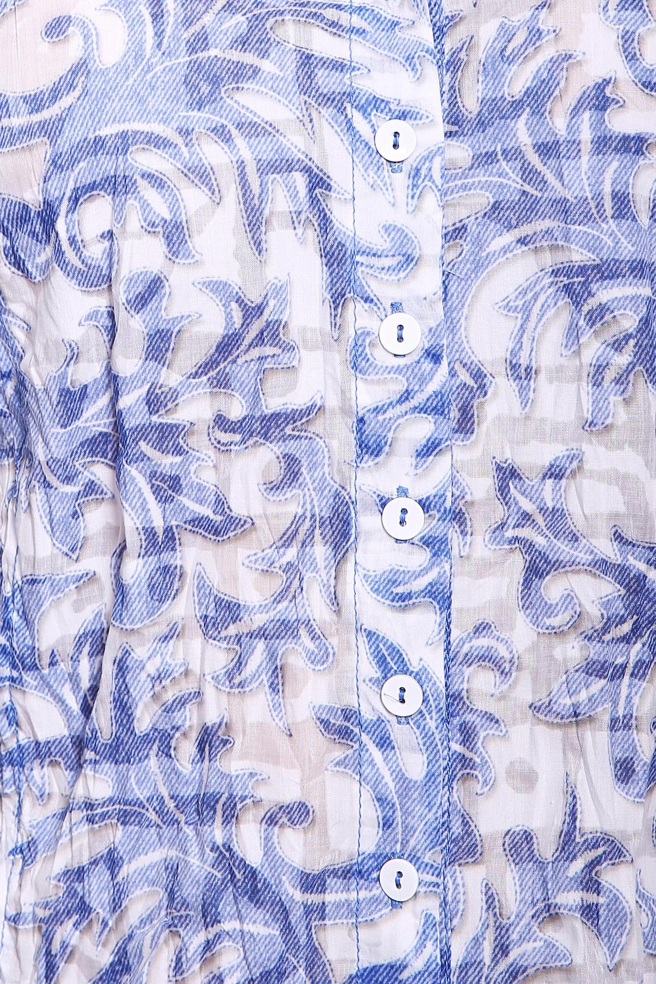 Блуза женская белого цвета от немецкого бренда SA Stenau. Модель выполнена прямым фасоном. Изделие дополнено откладным воротом, застежка на пуговицу, втачными, короткими рукавами с манжетами. Ткань имеет принт. Состав ткани: 65% полиэстер, 35% хлопок. Комбинировать можно с различными брюками.