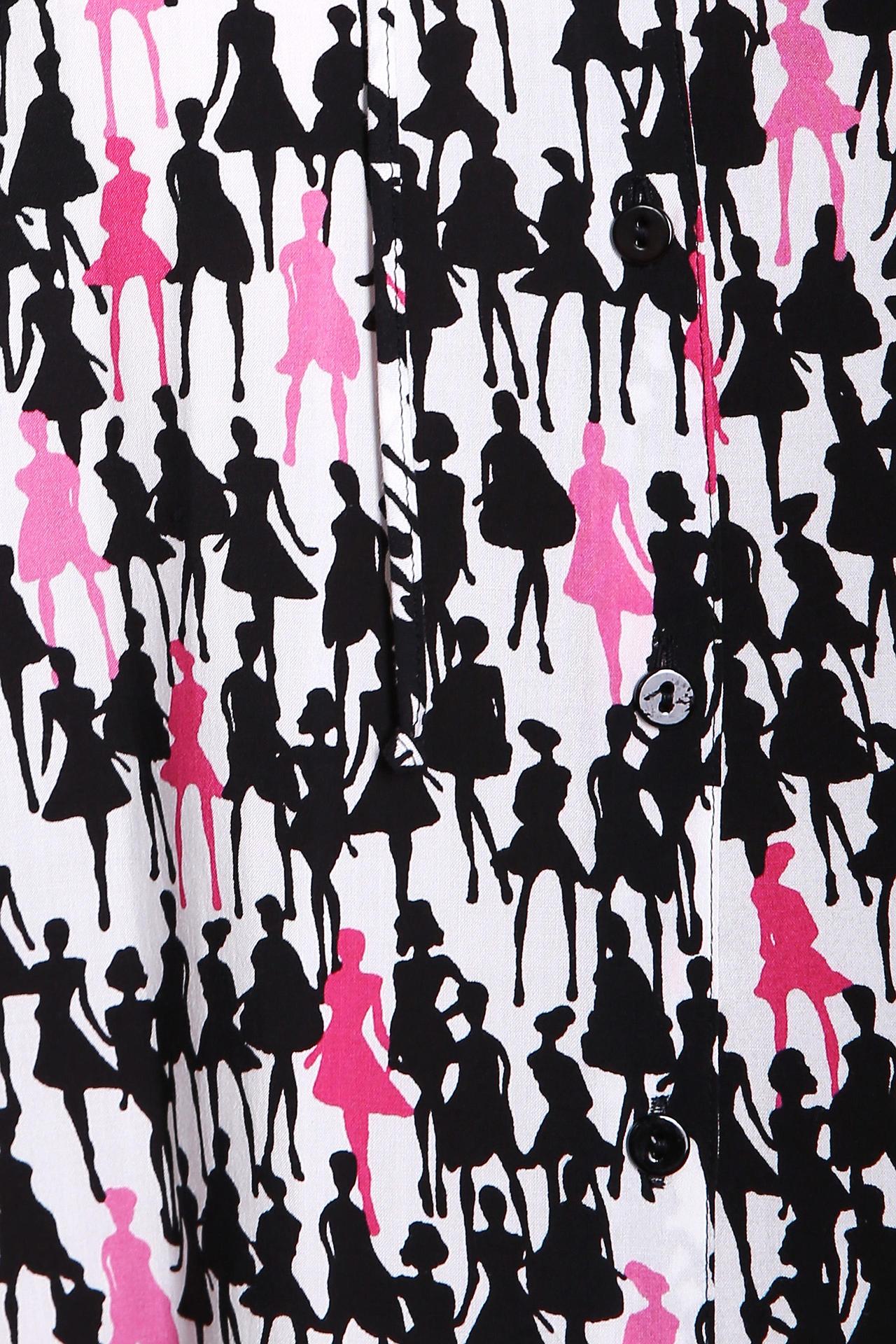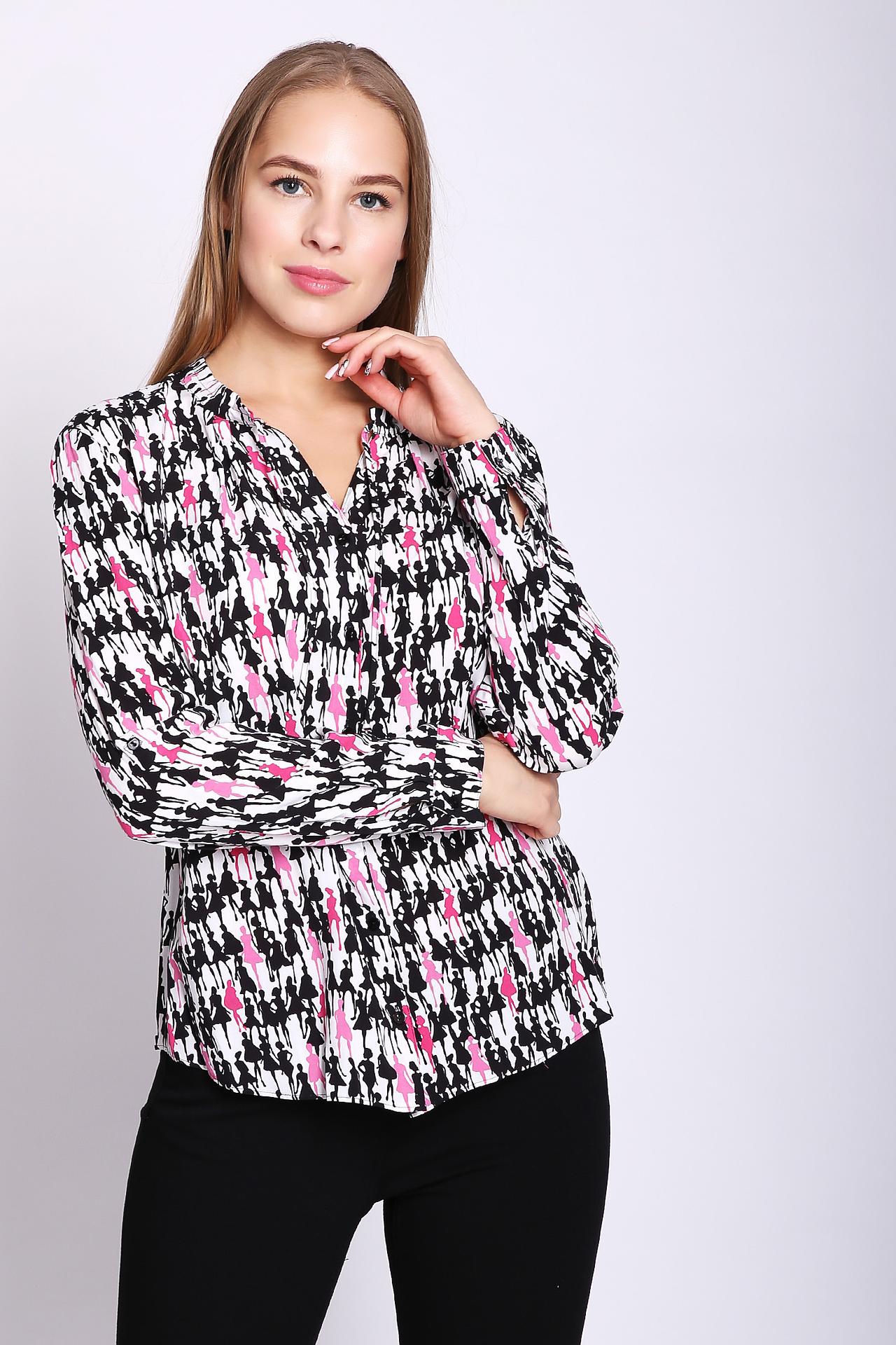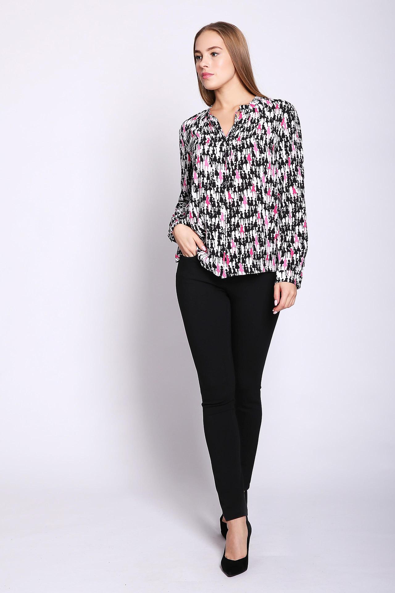 Блуза разноцветного цвета фирмы Gerry Weber. Ткань состоит из 100% вискозы. Модель выполнена прямым покроем. Блуза дополнена округлым воротом, застежка на пуговицы, втачным длинным рукавом с манжетой на пуговицу, задней кокеткой. Изделие в сочетании с брюками и юбками, может создать комплект для разных поводов.