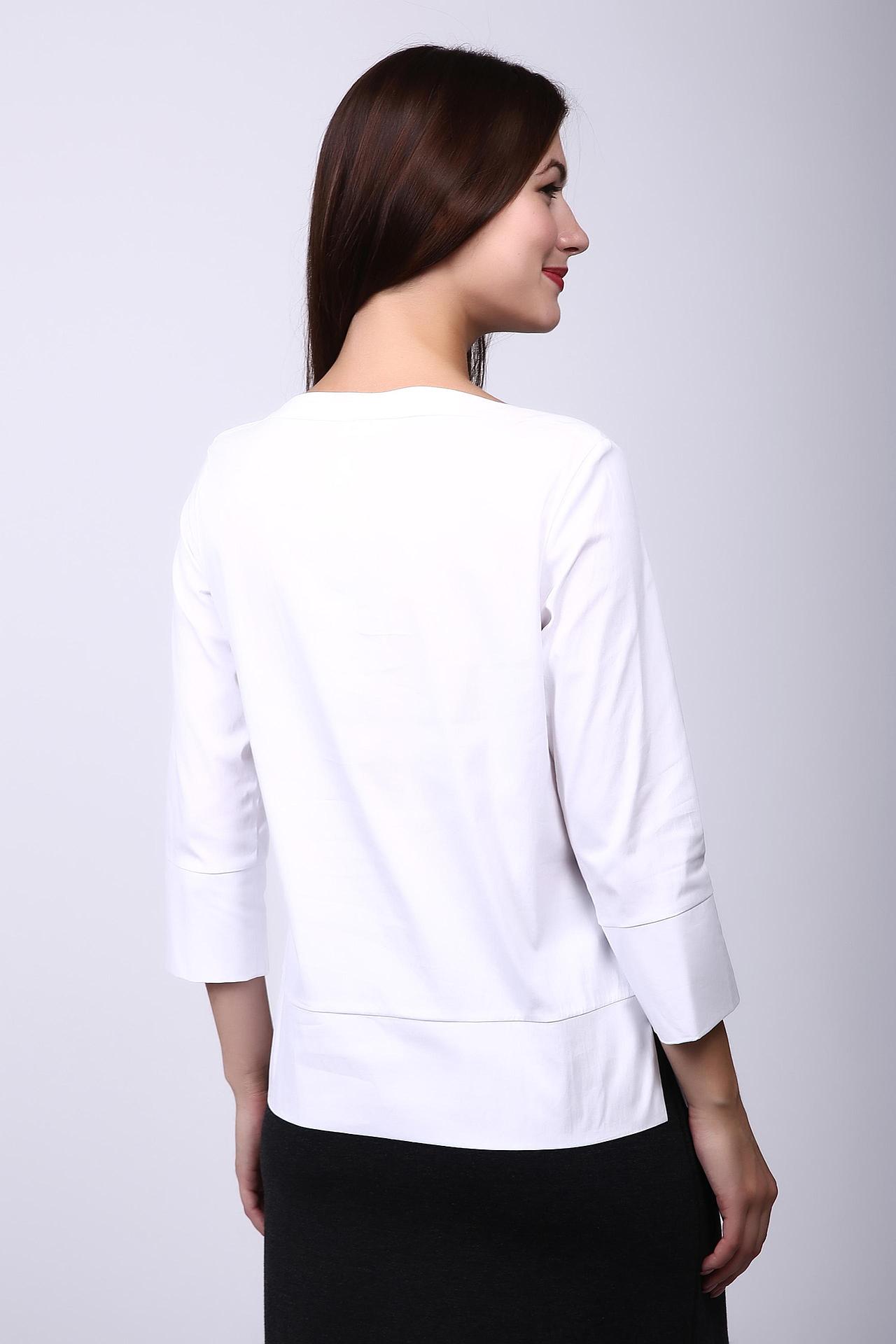 Блуза отлично подойдет как для офисного стиля, так и для повседневных выходов. Сочетание хлопка с эластаном обеспечивает комфорт и приятные тактильные ощущения, а добавление полиамида гарантирует износостойкость и сохранение формы изделия.