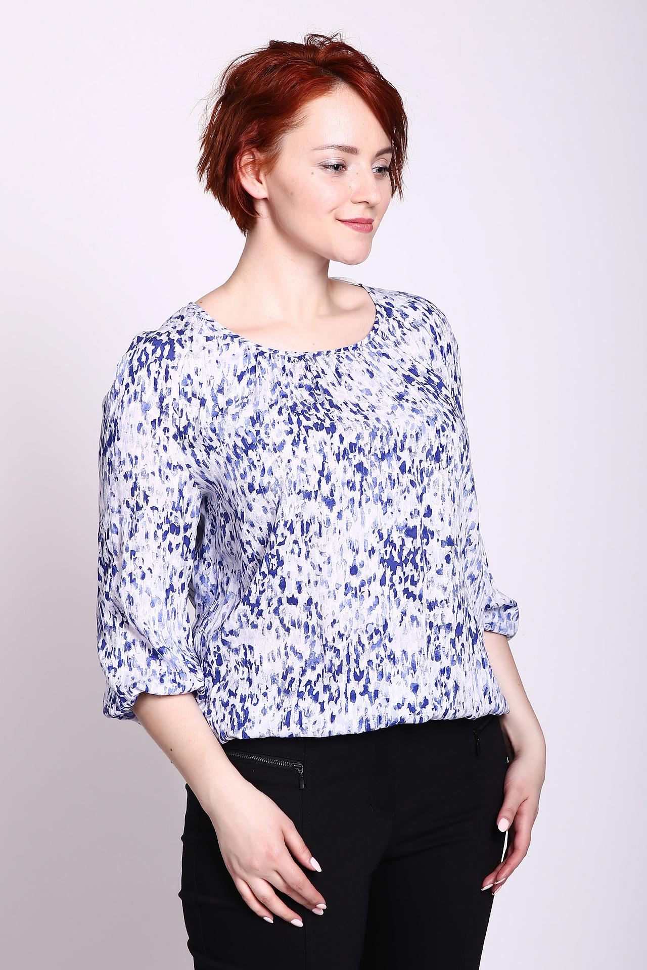 - Модный принт: Блуза украшена современным абстрактным принтом в бело-синих тонах, добавляющим яркости и оригинальности образу. Этот узор легко комбинируется с однотонными брюками или юбками, создавая запоминающийся ансамбль.