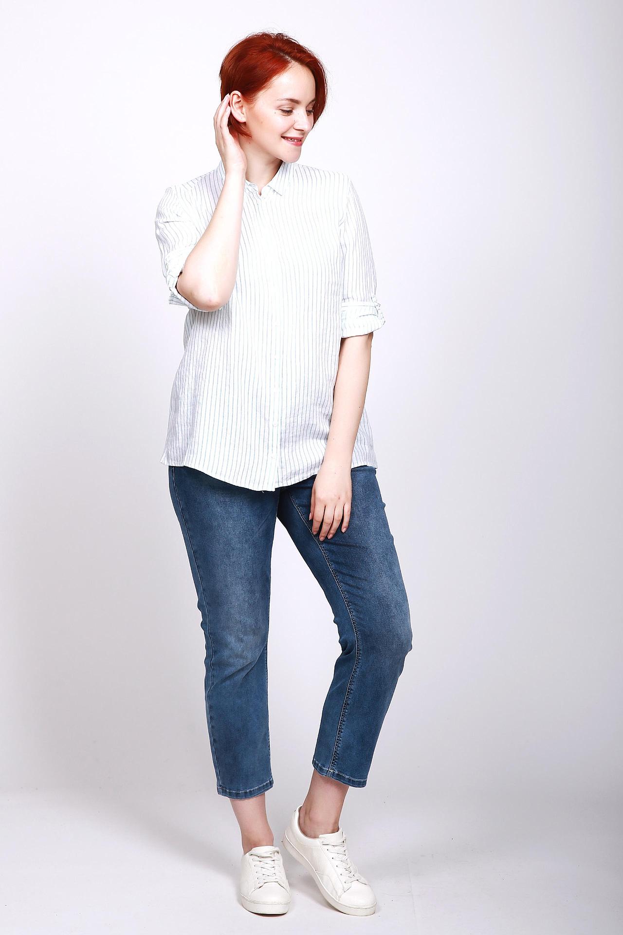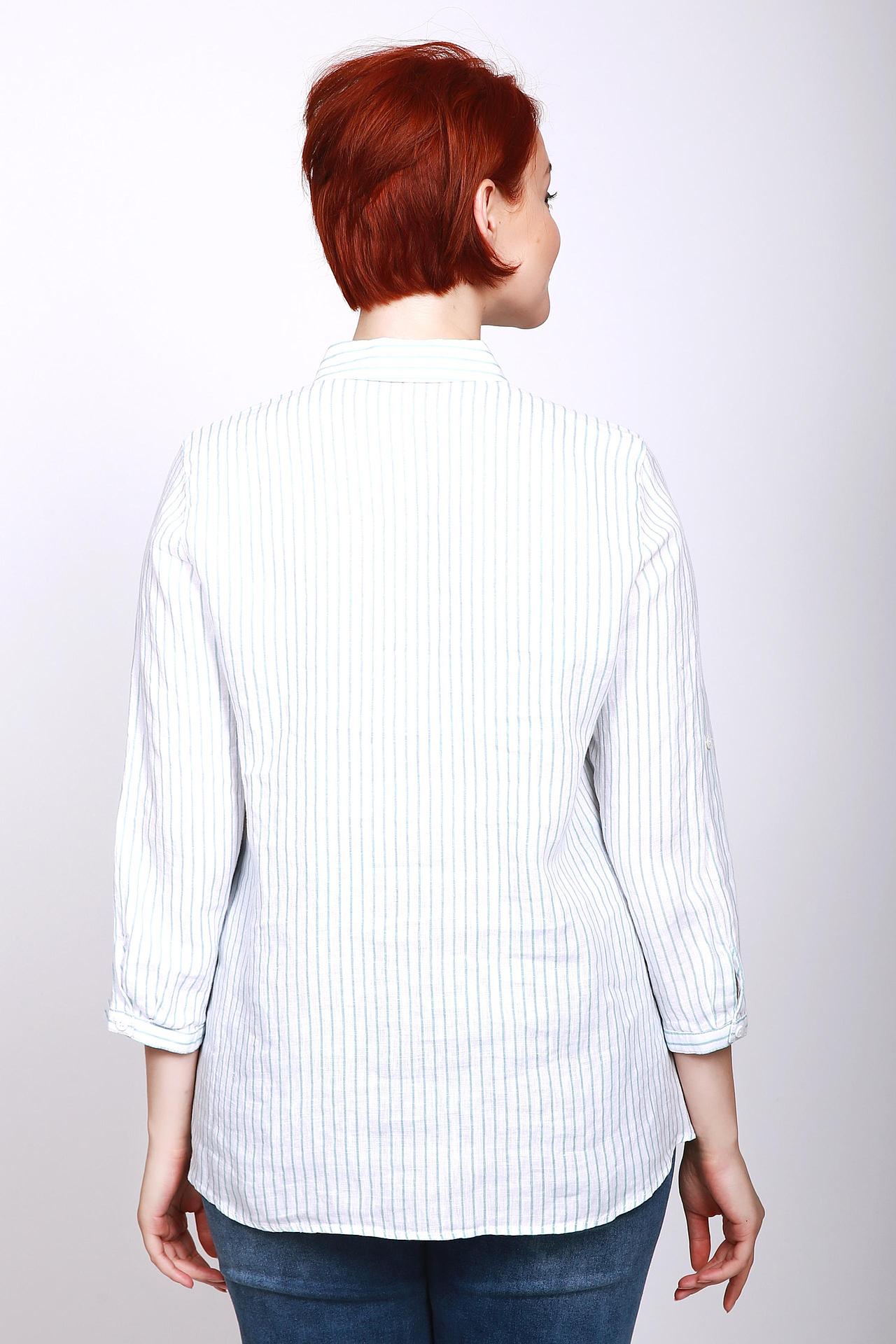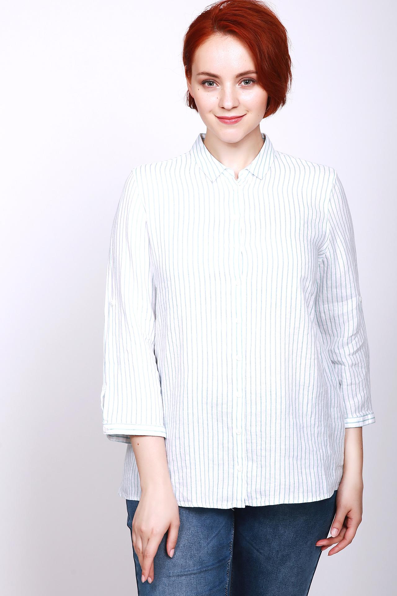 Блуза женская белого цвета от бренда Erfo. Модель выполнена прямым фасоном. Изделие дополнено откладным воротом на стойке, застежка на пуговицы, втачными рукавами 3/4 длинны с манжетами на пуговицу. Ткань состоит из 100% льна. Сочетать можно с различными брюками, юбками.