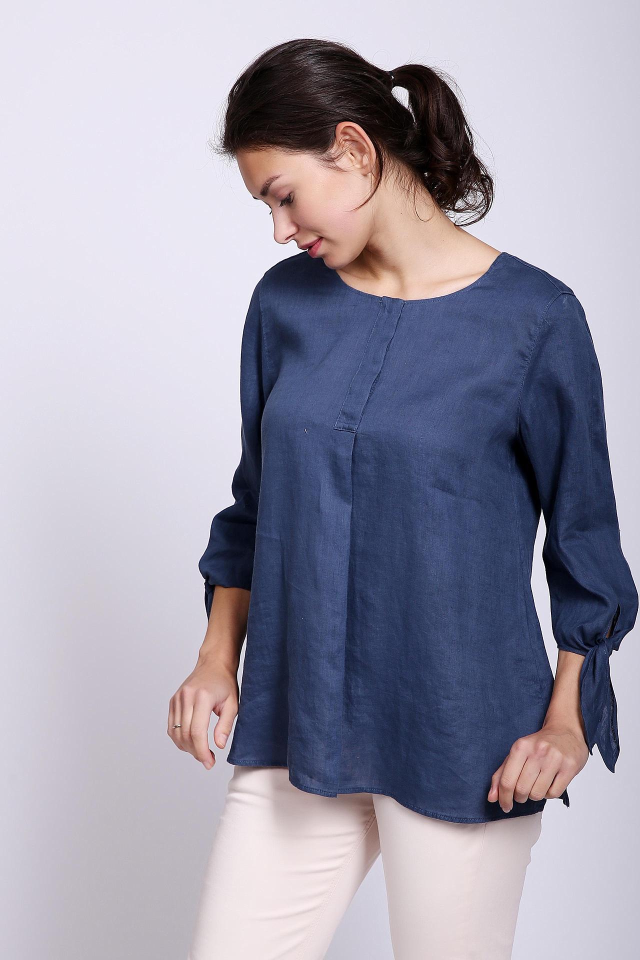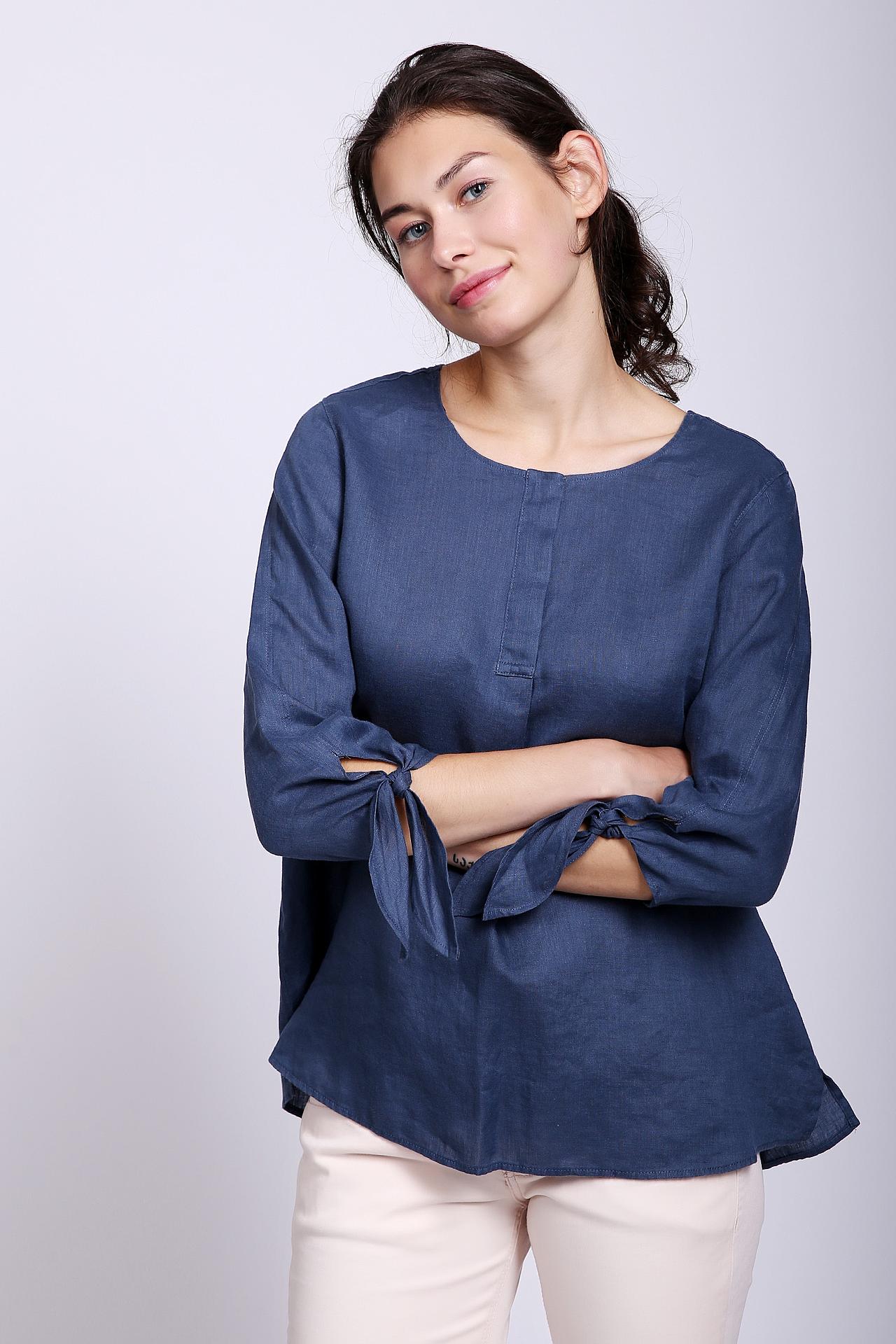 Блуза Gerry Weber Синяя из льна с завязками на рукавах