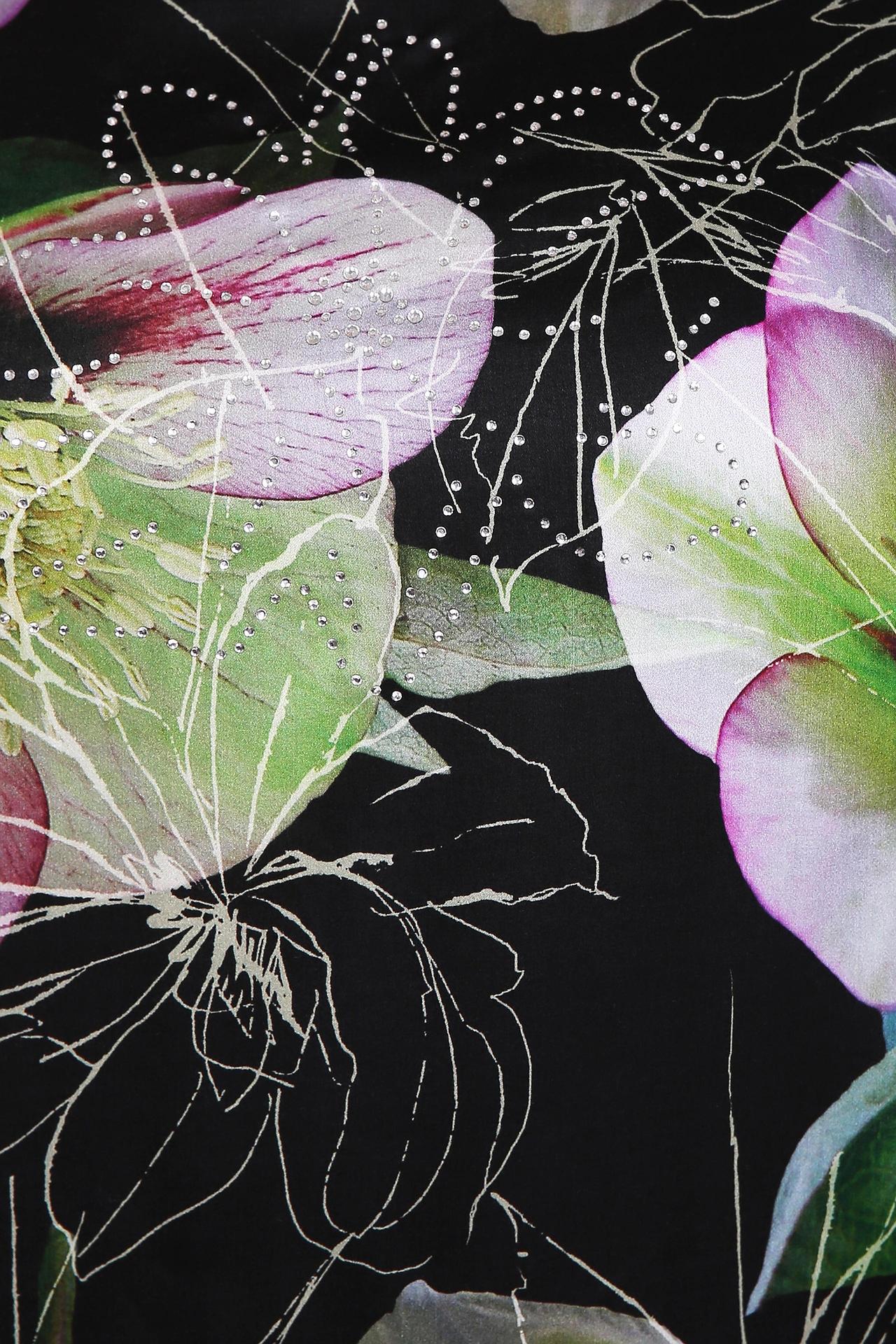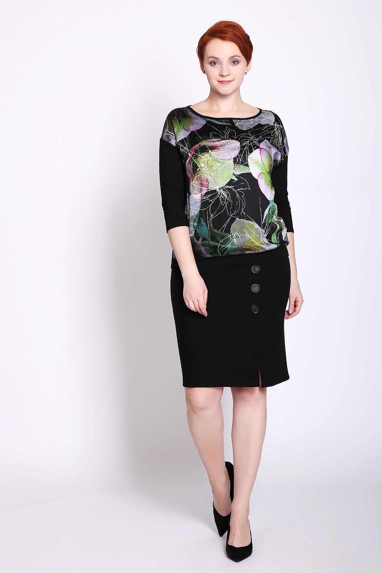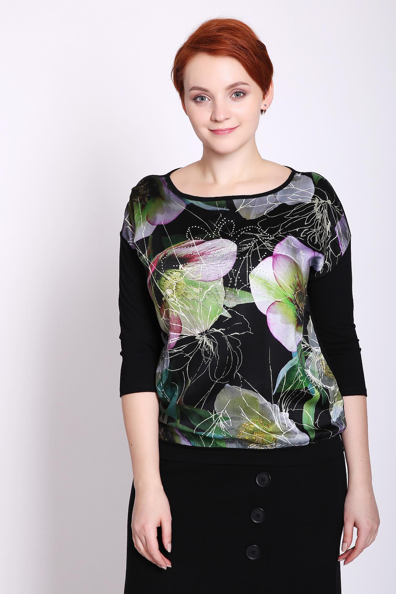 Блуза женская черного цвета фирмы Betty Barclay. Модель выполнена прямым фасоном. Изделие дополнено округлым воротом, приспущенными рукавами 3/4 длинны. Ткань состоит из 5% эластана, 95% вискозы. Передняя часть блузы изготовлена из ткани с разноцветным принтом. Гармонировать можно с различными юбками, брюками.