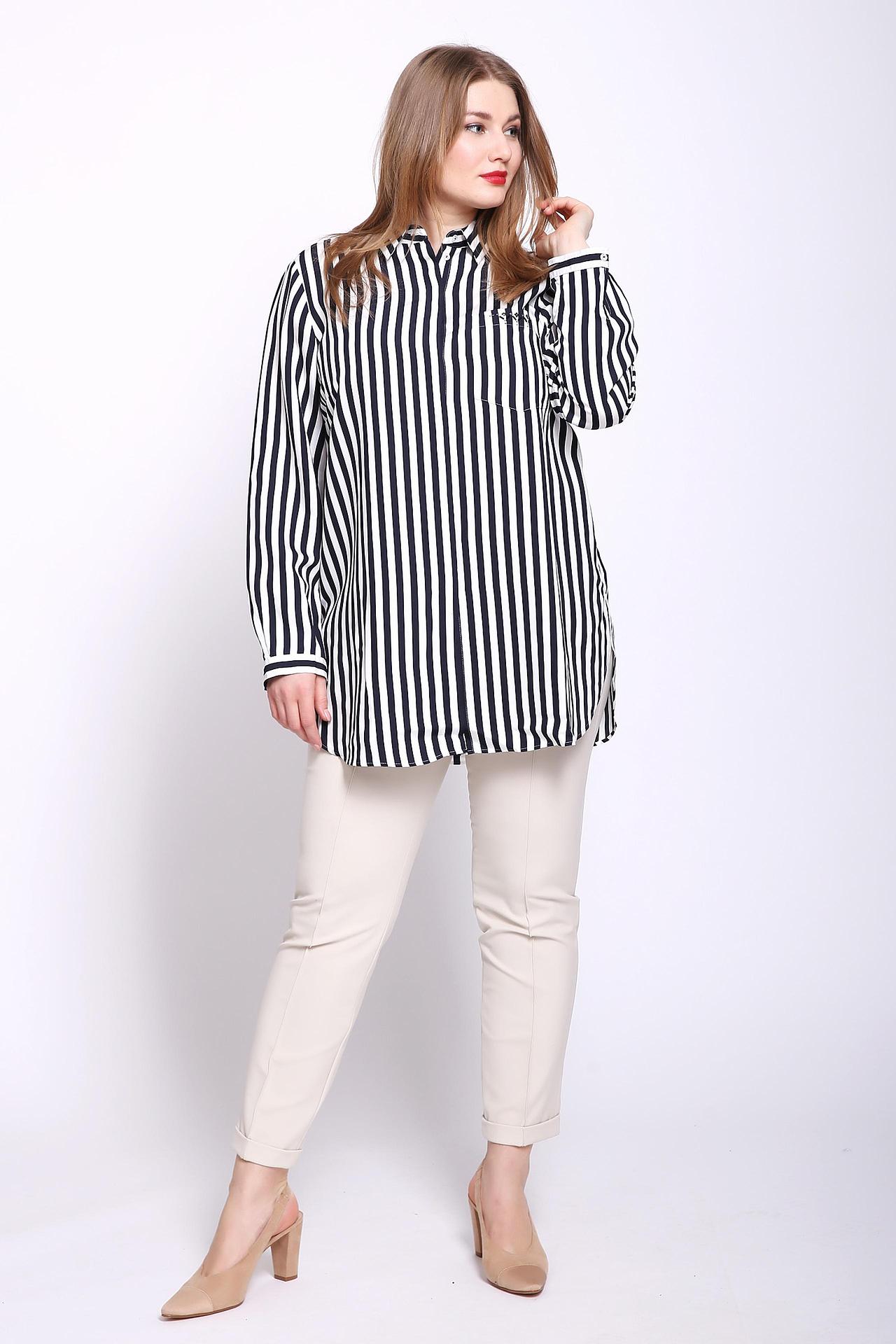 Классический крой и универсальный дизайн делают эту блузку подходящей для различных типов фигур. Вертикальная полоска визуально вытягивает силуэт, добавляя изящности. Блуза легко сочетается с брюками, юбками и джинсами.