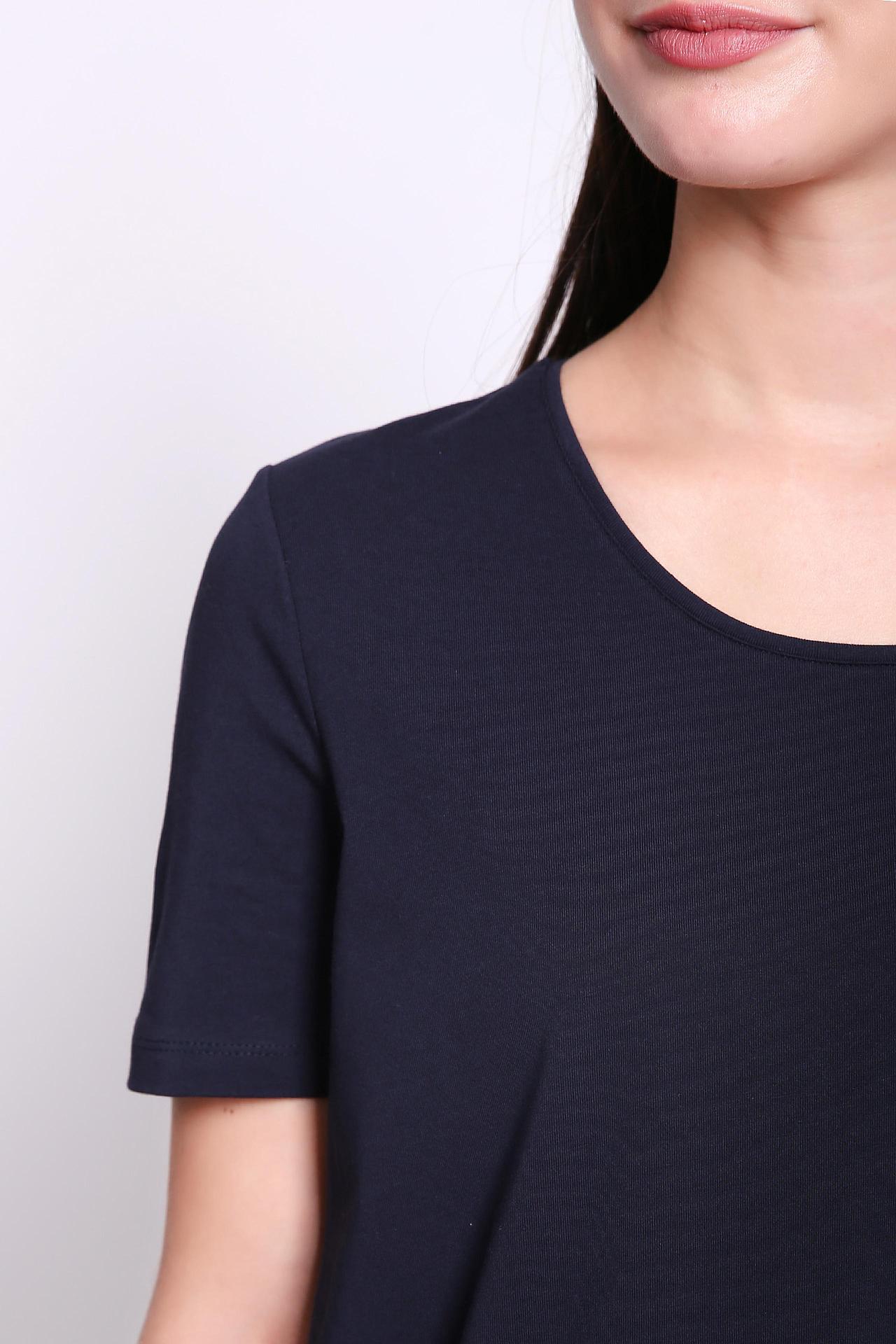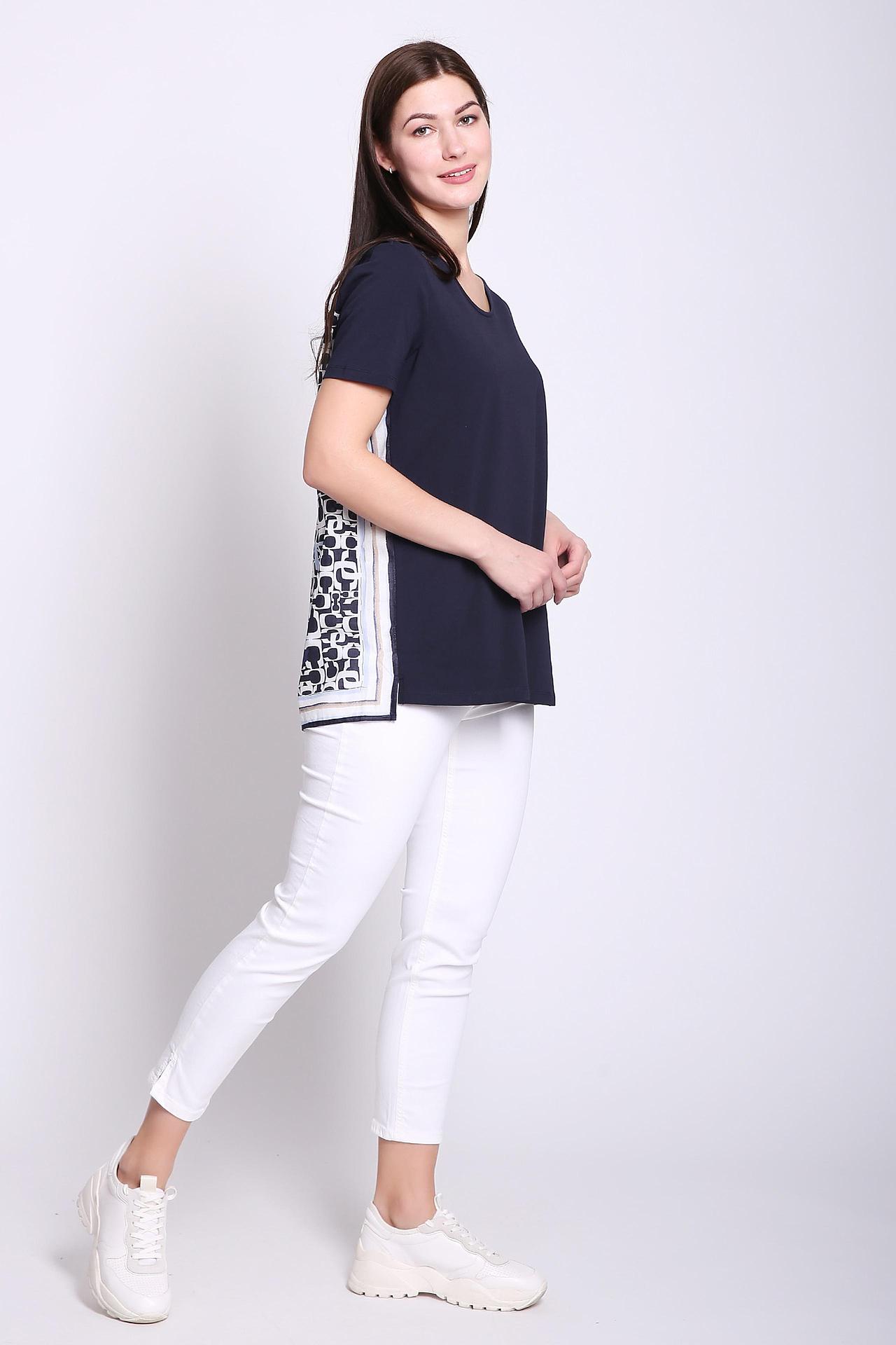 - Комфорт и посадка: Модель имеет прямой, слегка свободный силуэт, который не сковывает движений. Короткие рукава и округлый вырез горловины делают блузу универсальной для различных образов.