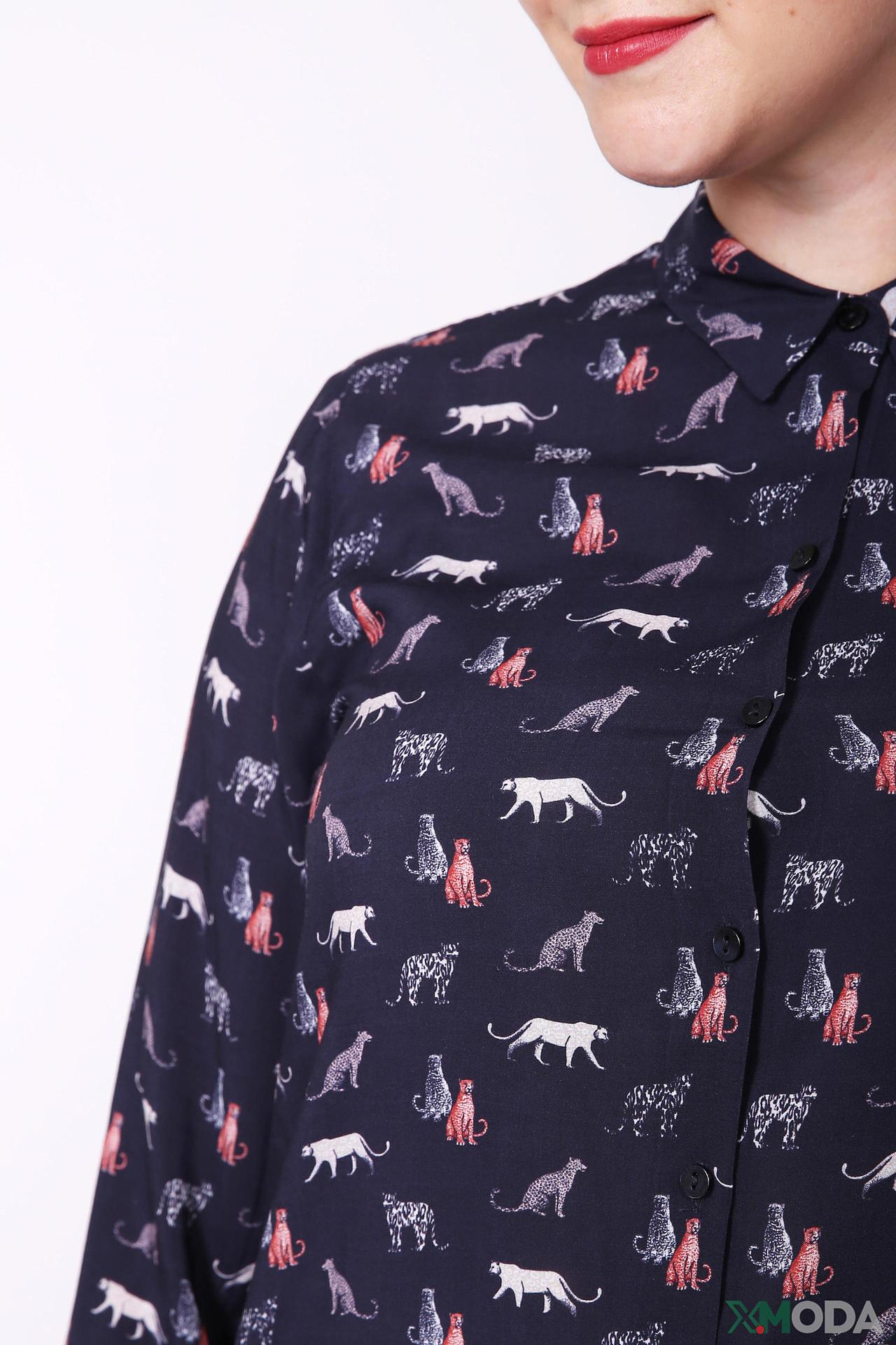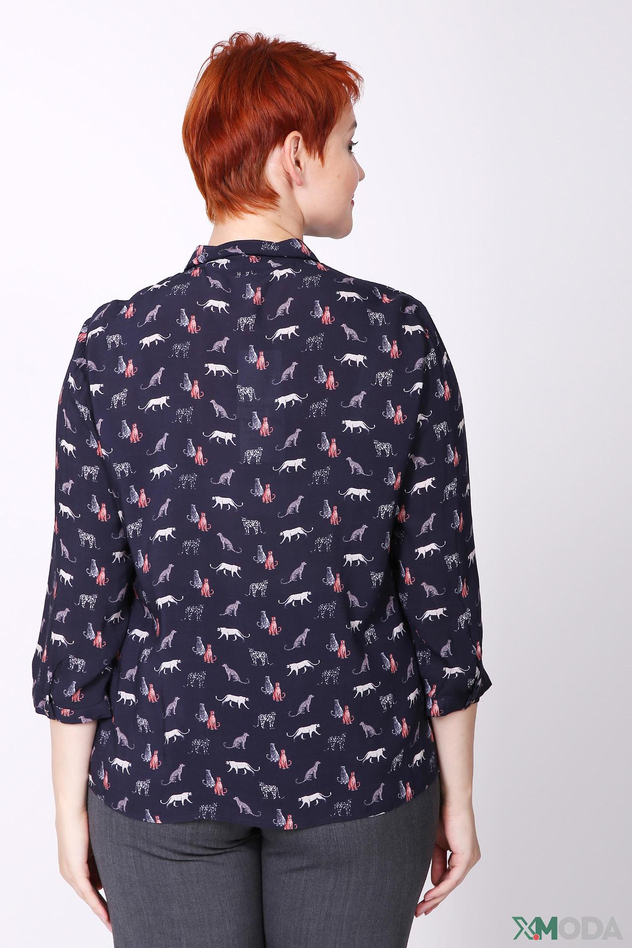 Блуза женская синего цвета от бренда Gerry Weber. Модель выполнена прямым фасоном. Изделие дополнено откладным воротом, втачными рукавами 3/4 длины, застежка на пуговицу. Ткань имеет принт. Состав ткани: 100% вискоза. Сочетать можно с различными брюками.