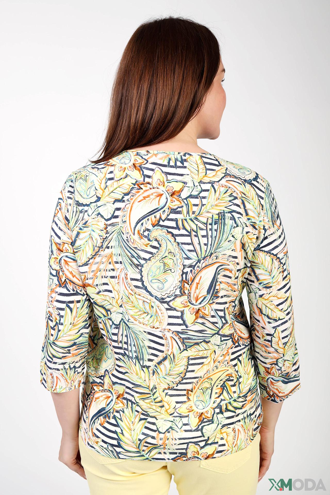 Изысканная блуза от Lebek, выполненная из 100% вискозы, сочетает в себе комфорт и элегантность. Лёгкий и приятный к телу материал обеспечивает превосходную воздухопроницаемость и свободу движений. Яркий принт в виде стилизованных «огурцов» (пейсли) и полоски придает образу неповторимый шарм и делает эту блузу отличным выбором для создания запоминающегося летнего образа.