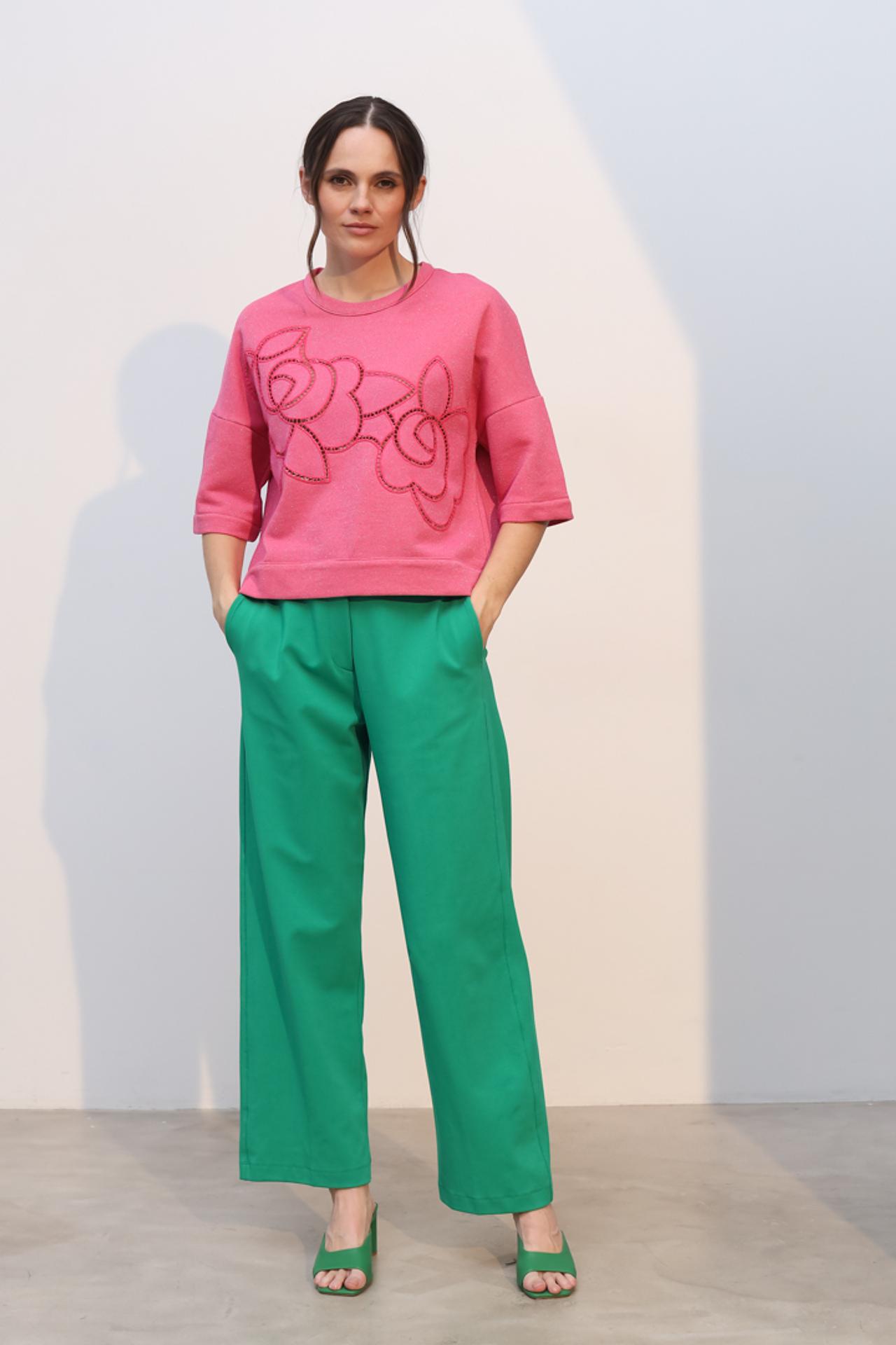 - Посадка: Брюки с высокой посадкой подчеркивают талию и визуально удлиняют ноги.