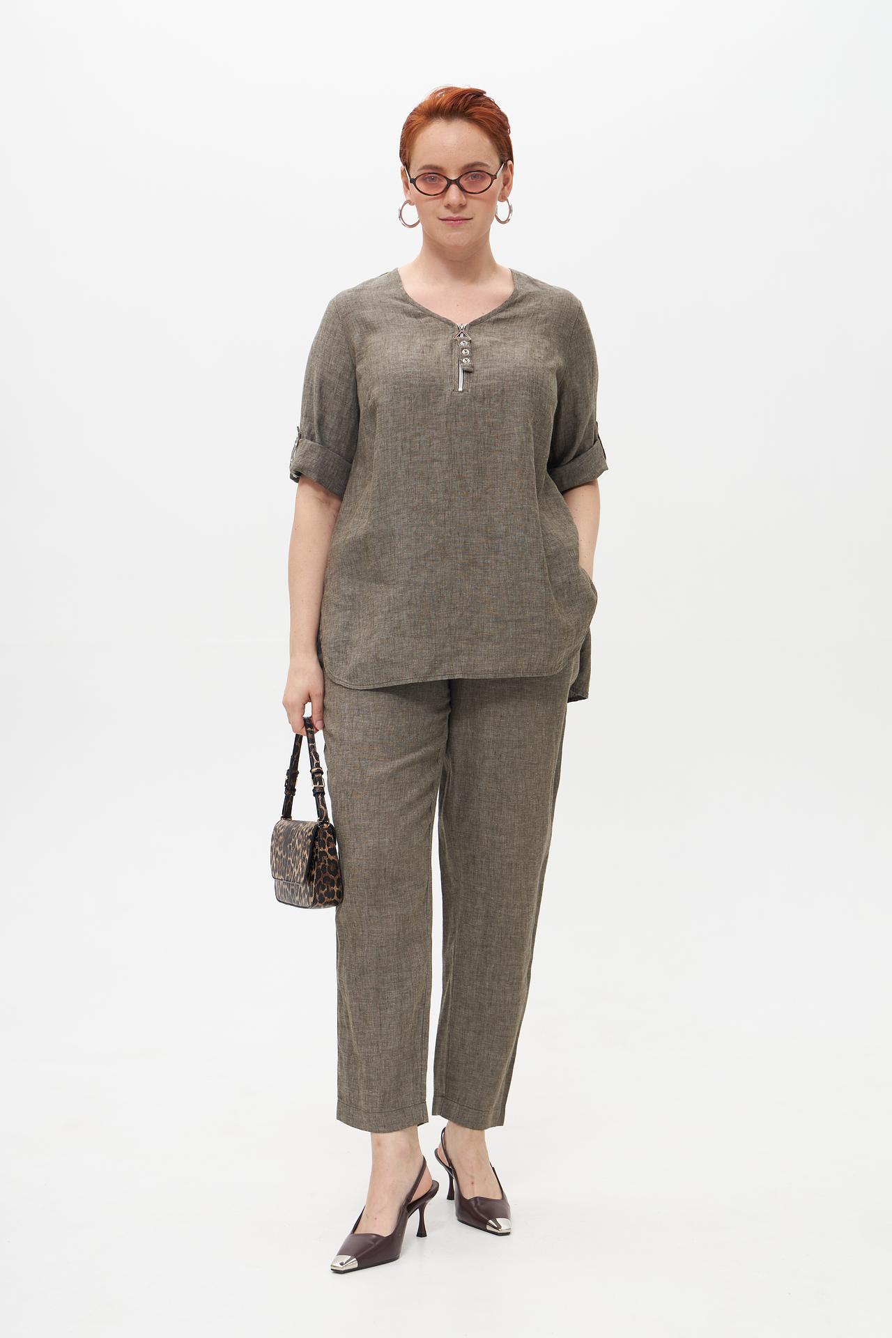- Натуральный лен. Брюки выполнены из 100% льна, что обеспечивает отличную воздухопроницаемость и комфорт в жаркую погоду. Лен – это экологически чистый и приятный к телу материал.