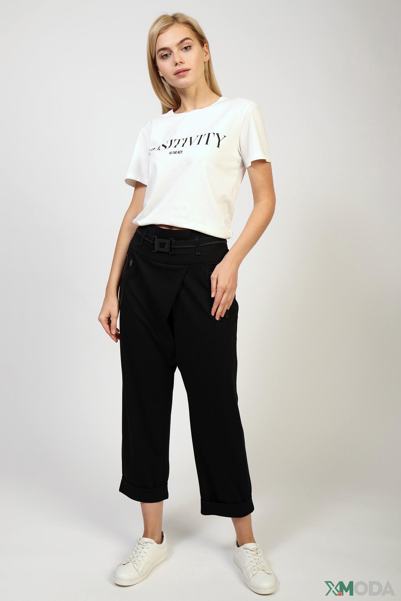 - Дизайн и крой: Модель отличается оригинальным дизайном с запахом и акцентными молниями на карманах. Классическая длина и возможность подвернуть низ штанин позволяют создавать разнообразные образы.