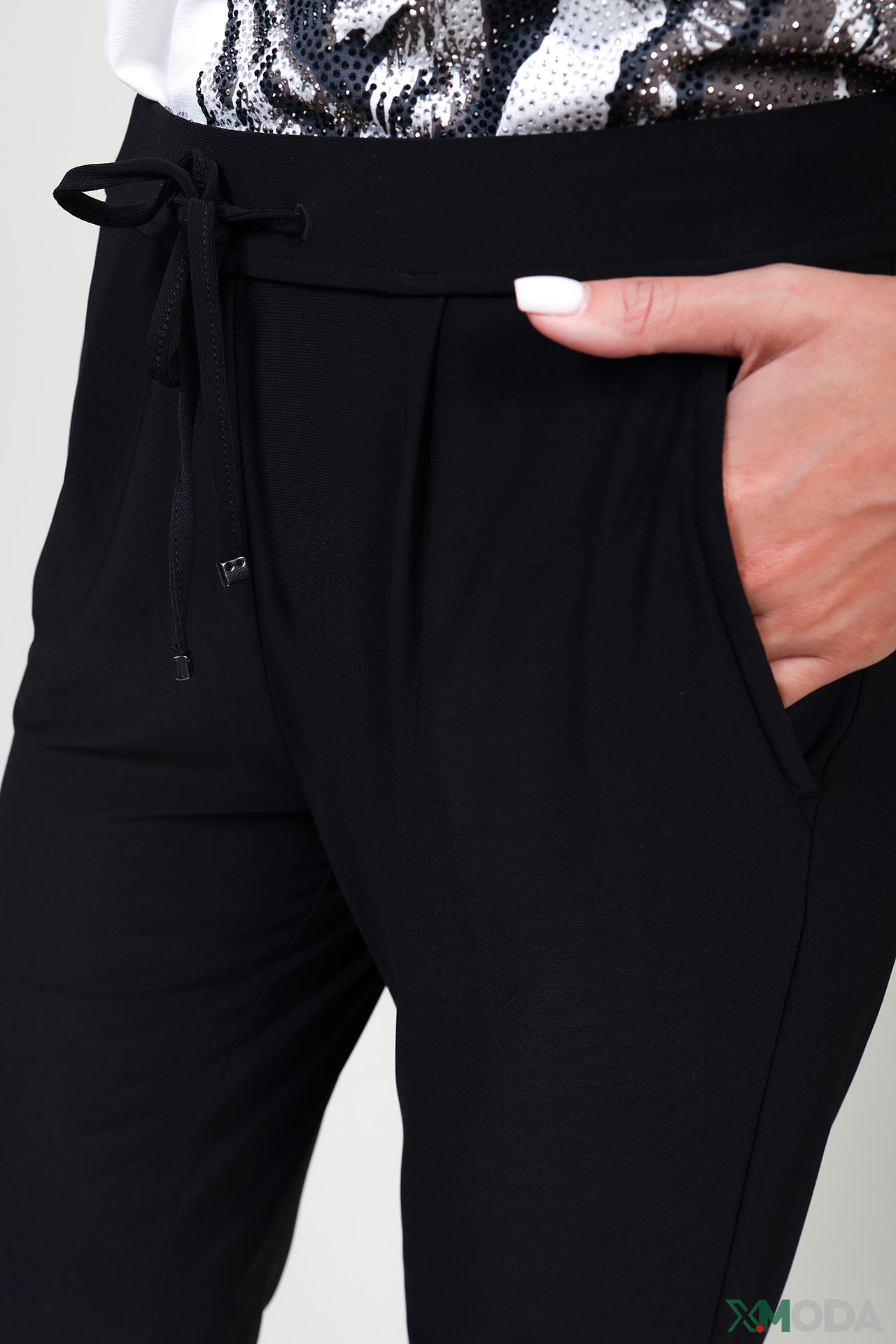 Брюки женские черного цвета бренда Betty and Co. Модель выполнена прямым фасоном. Изделие дополнено пришивным поясом с эластичной лентой и тесьмой, боковыми карманами, задними разрезными карманами. Брючины к низу заужены Состав: 5% эластан, 95% полиэстер. Ткань брюк прочная, долго носится, легкая. Комбинировать можно с различными футболками, блузами, пуловерами.