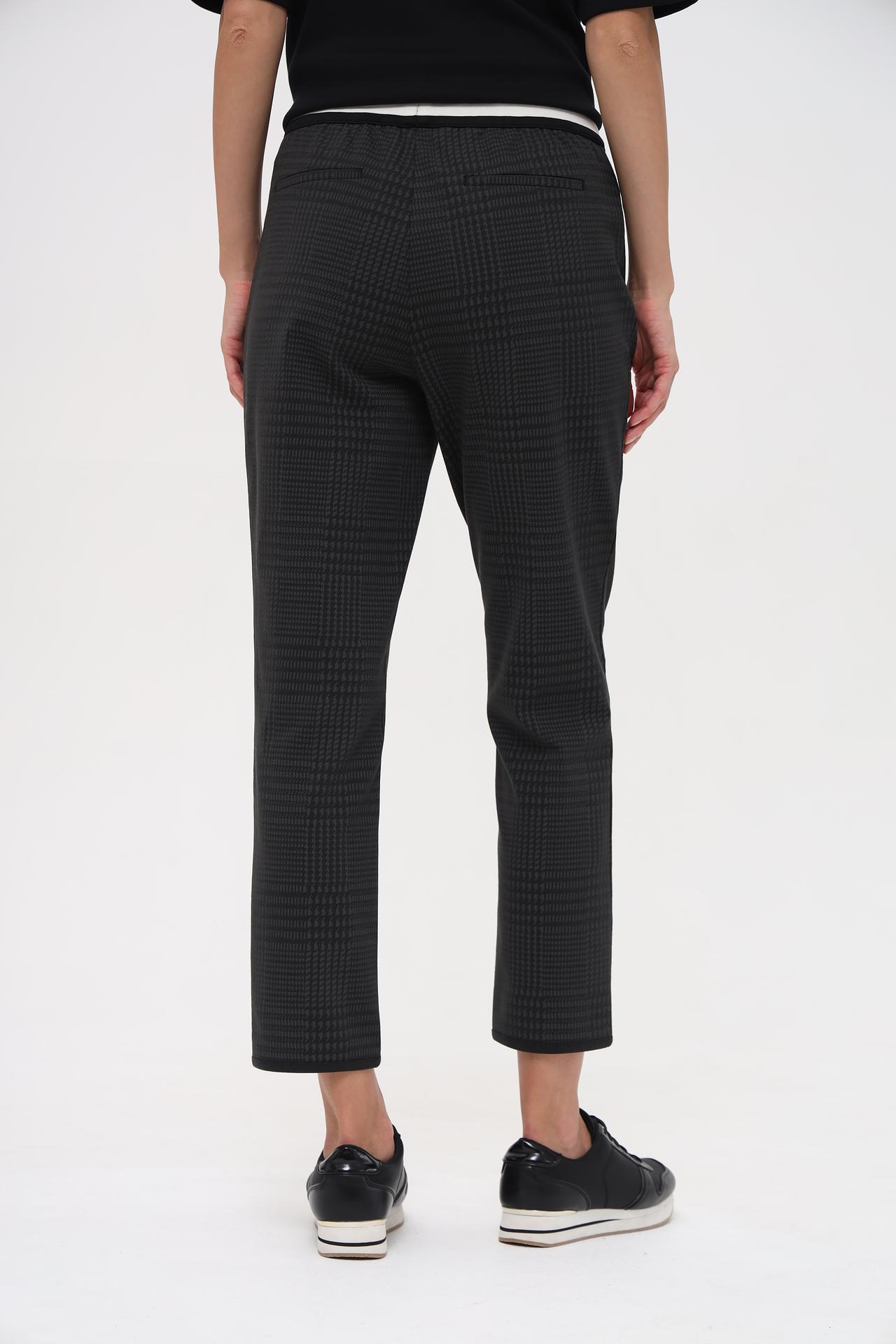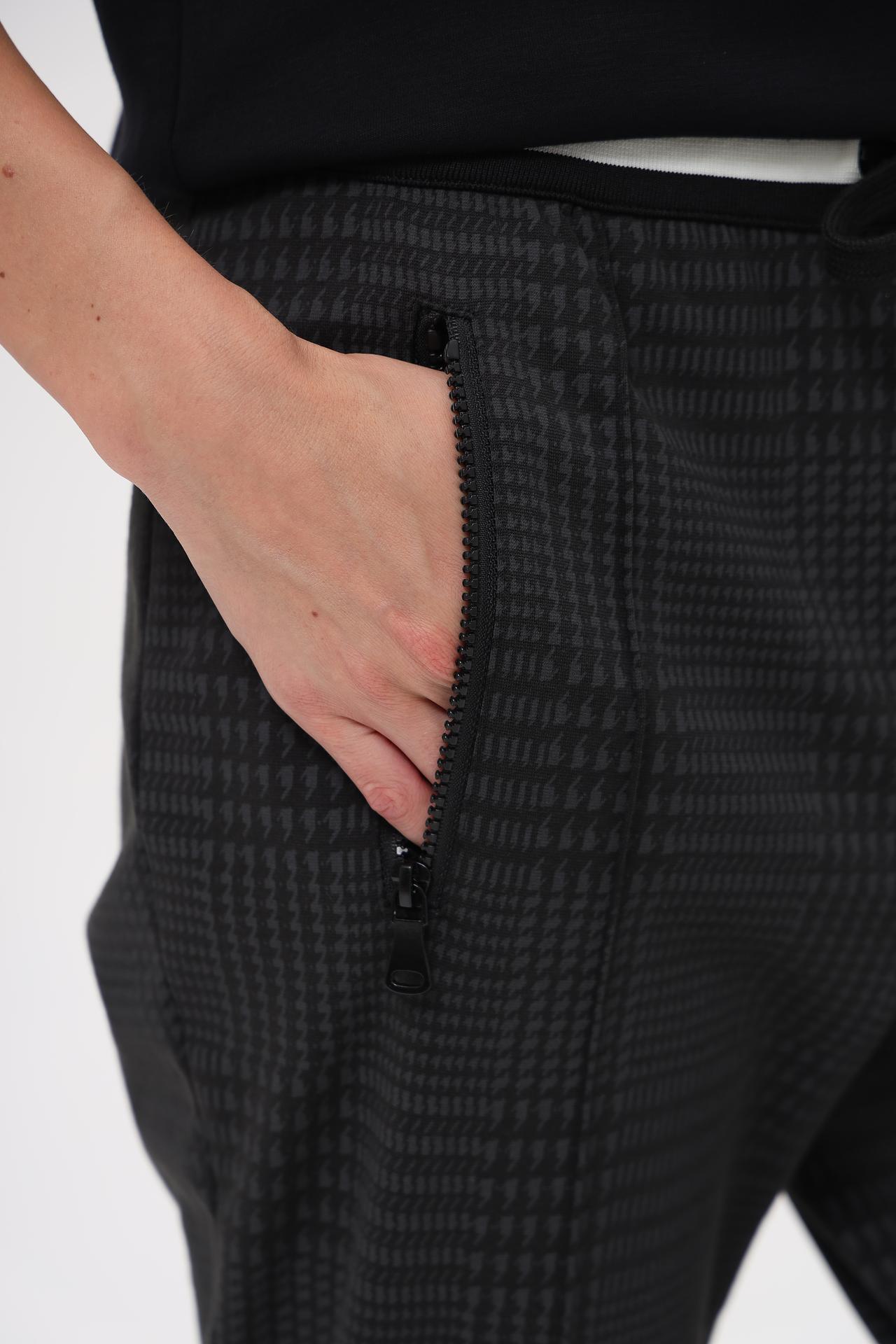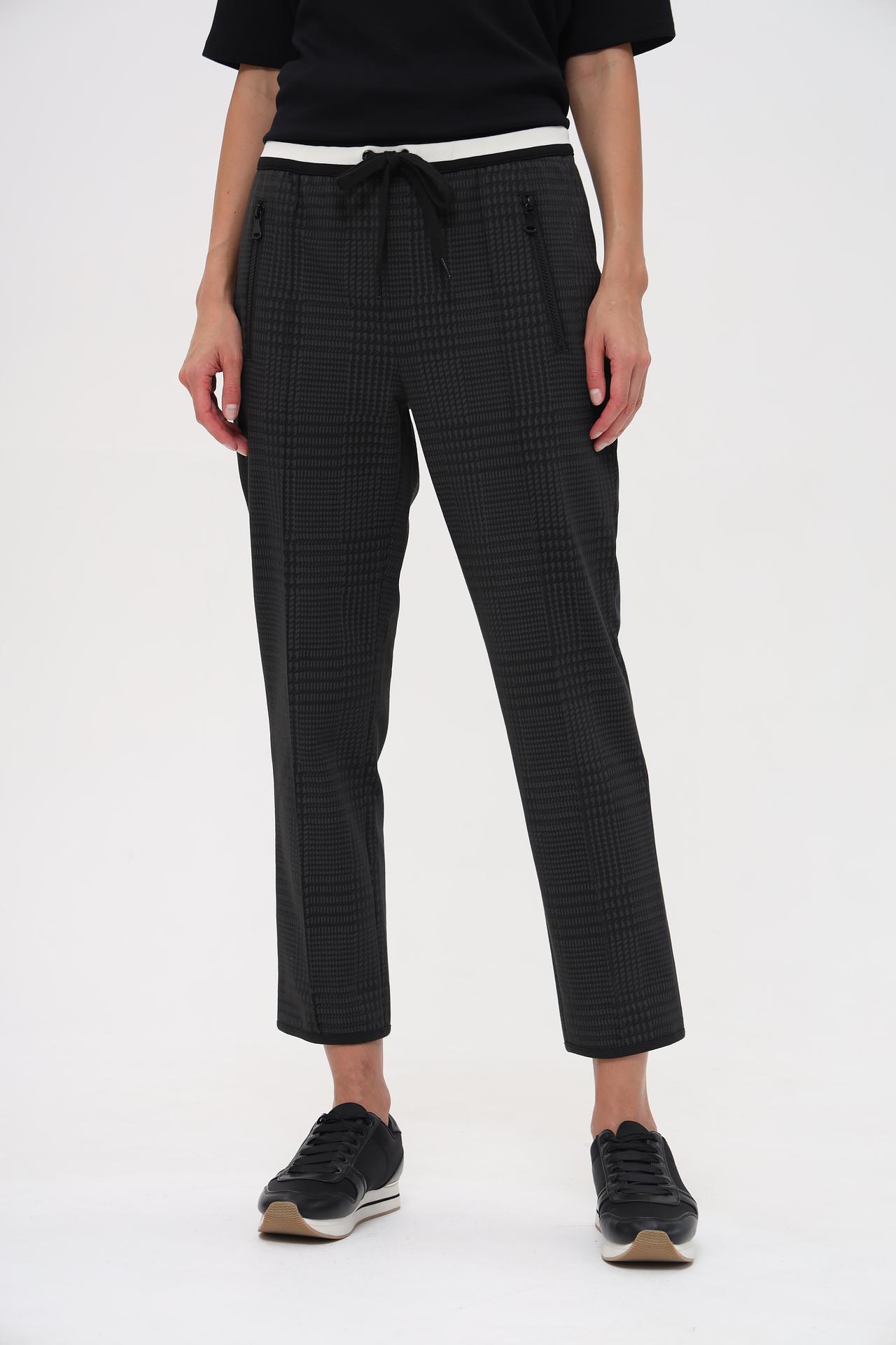 - Дизайн: Брюки отличаются стильным принтом "гусиная лапка" и актуальным кроем. Декоративные молнии на карманах добавляют изделию современный акцент.