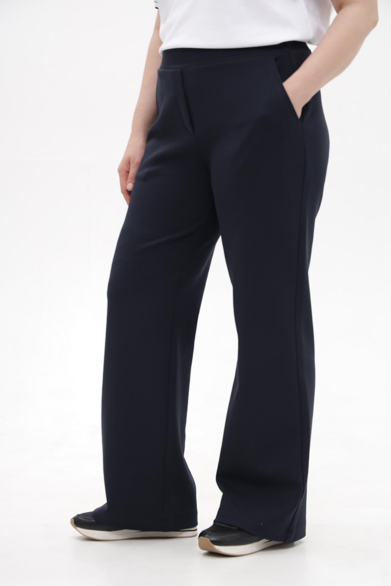 Брюки прямого кроя, расклешенные от колена, визуально удлиняют силуэт и создают женственный образ. Высокая посадка и эластичный пояс обеспечивают максимальный комфорт в течение всего дня. Оригинальным акцентом служит декоративный простеганный карман на задней части брюк, придающий модели современный вид.