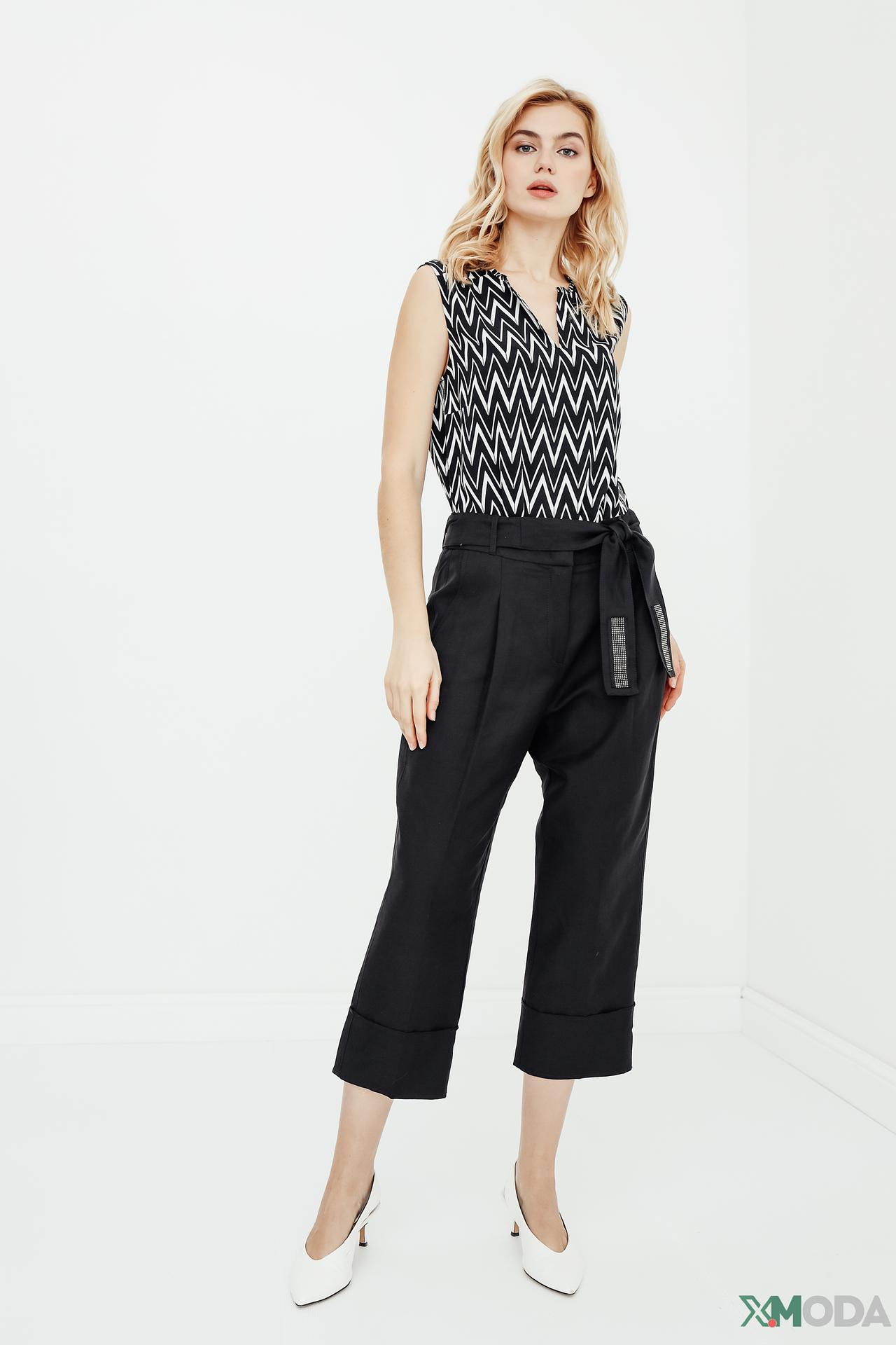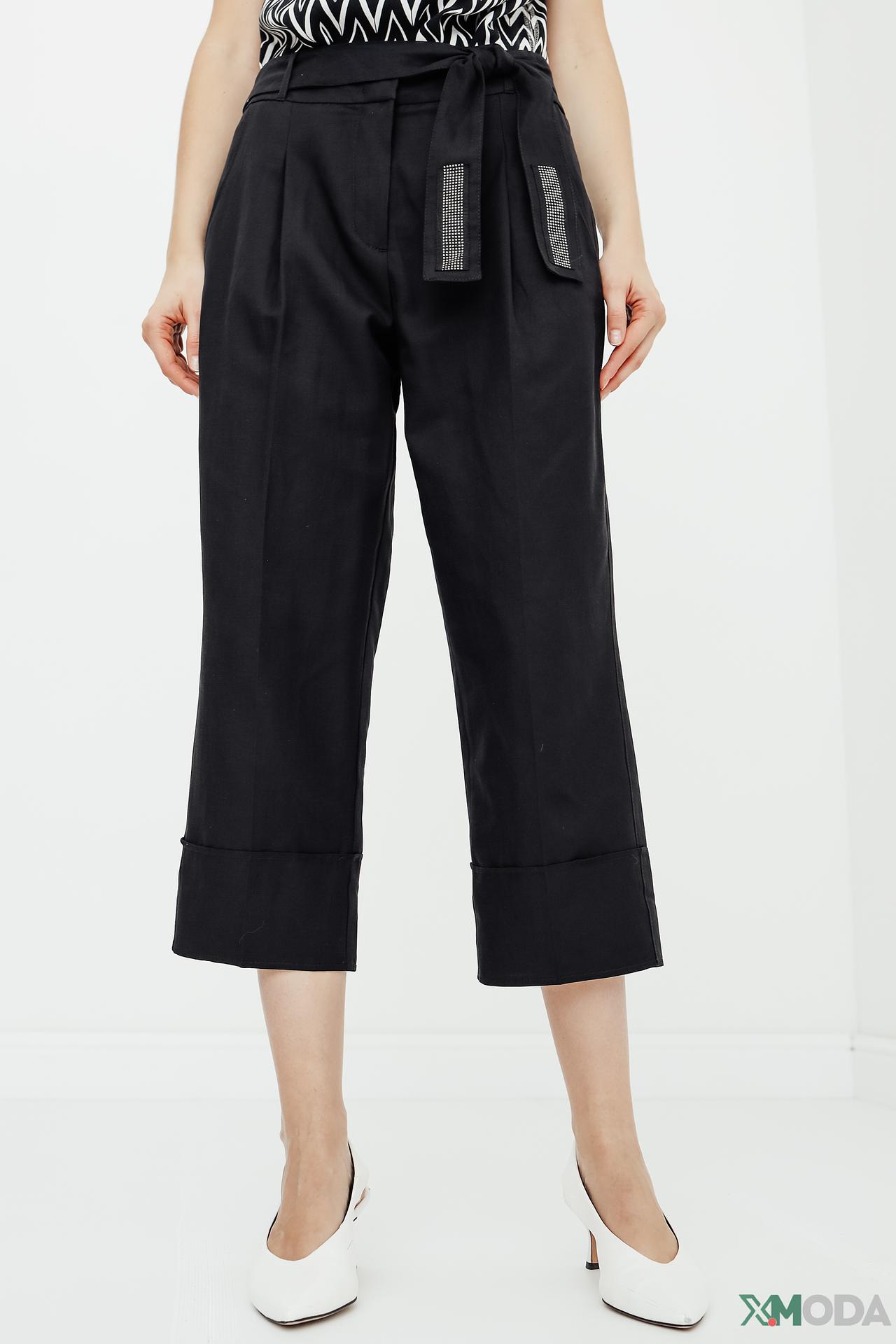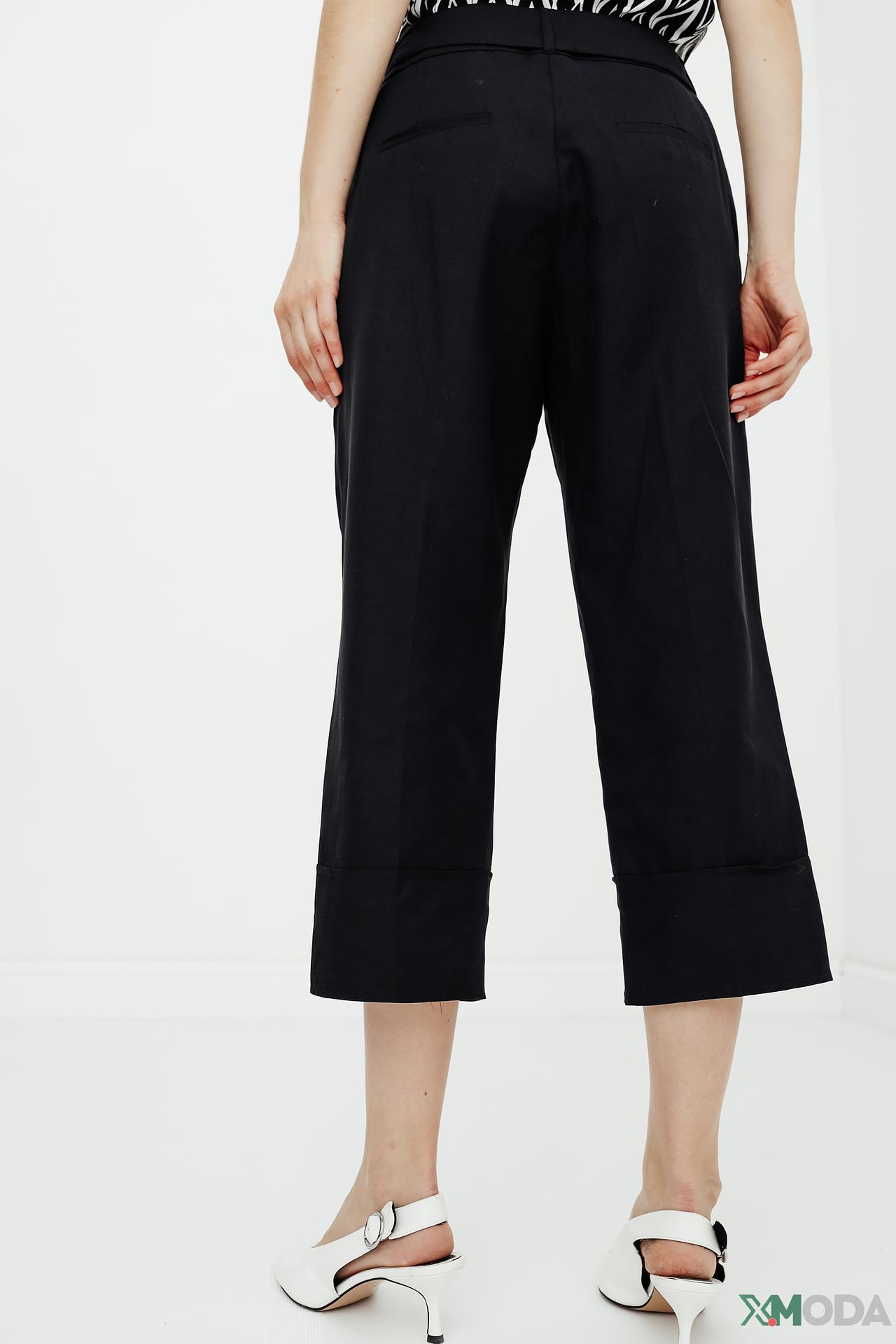 - Широкие отвороты: Широкие фиксированные отвороты по низу брючин придают изделию законченный вид и современный акцент. Этот элемент подчеркивает элегантность и добавляет объем в области щиколотки.