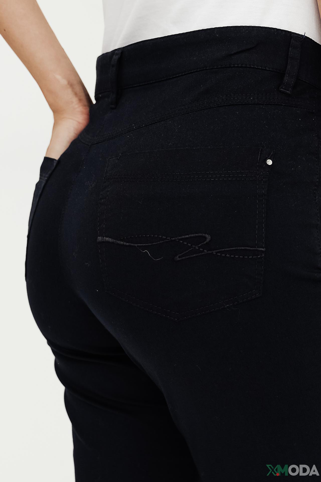 - Детали: Модель имеет стандартный дизайн с двумя боковыми и двумя задними карманами. Небольшие разрезы по бокам штанин и деликатный декор из страз на одном из карманов и по низу штанин добавляют изысканности.