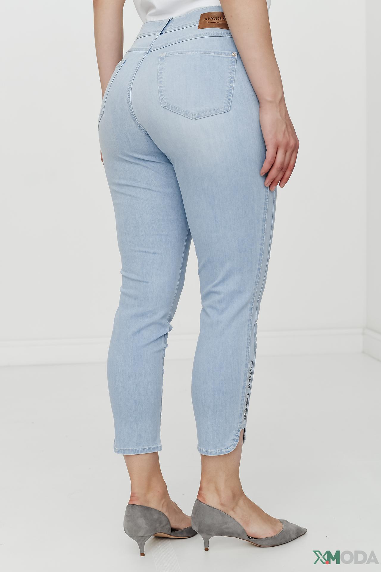 Джинсы Angels голубые, укороченные, с надписью на штанине