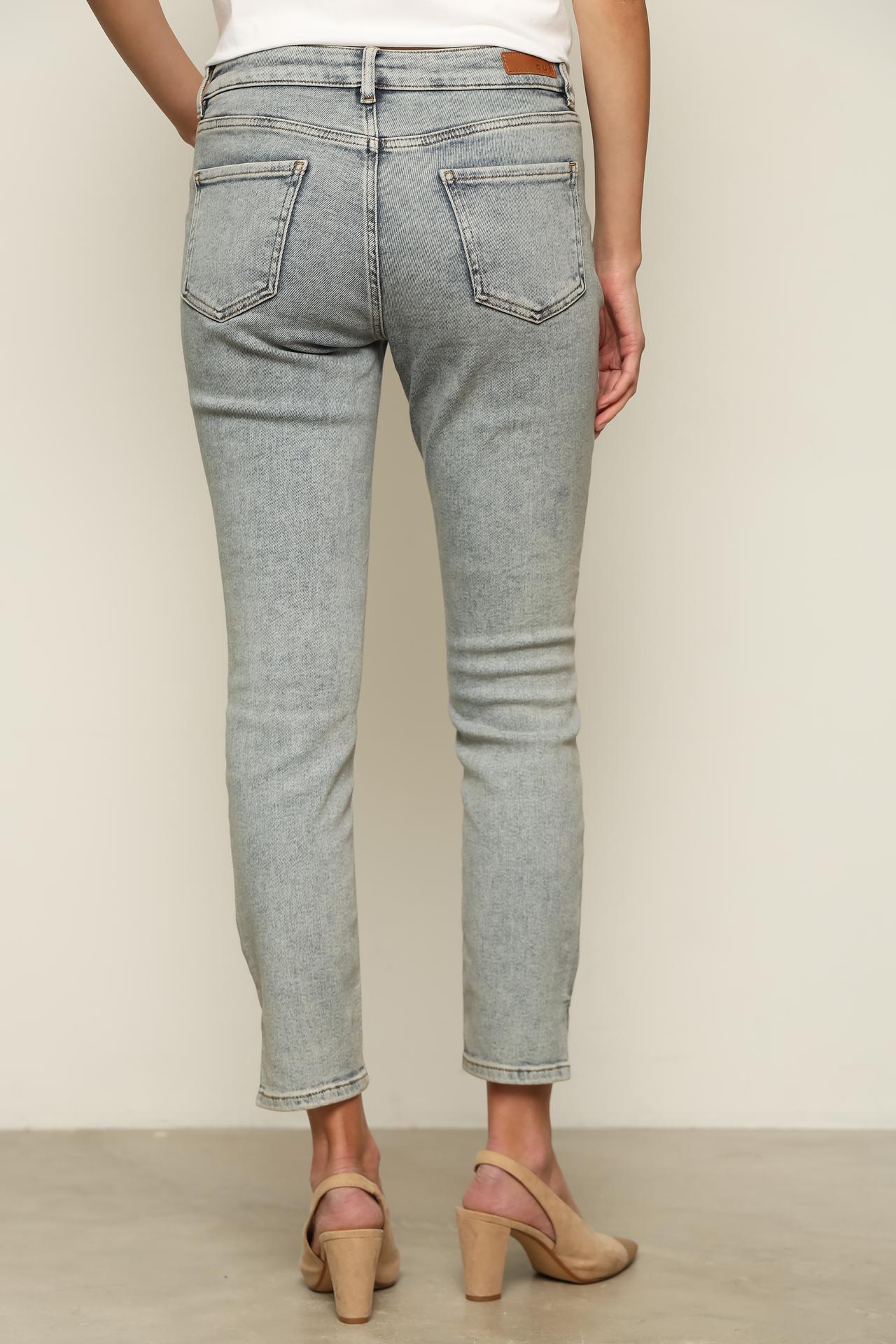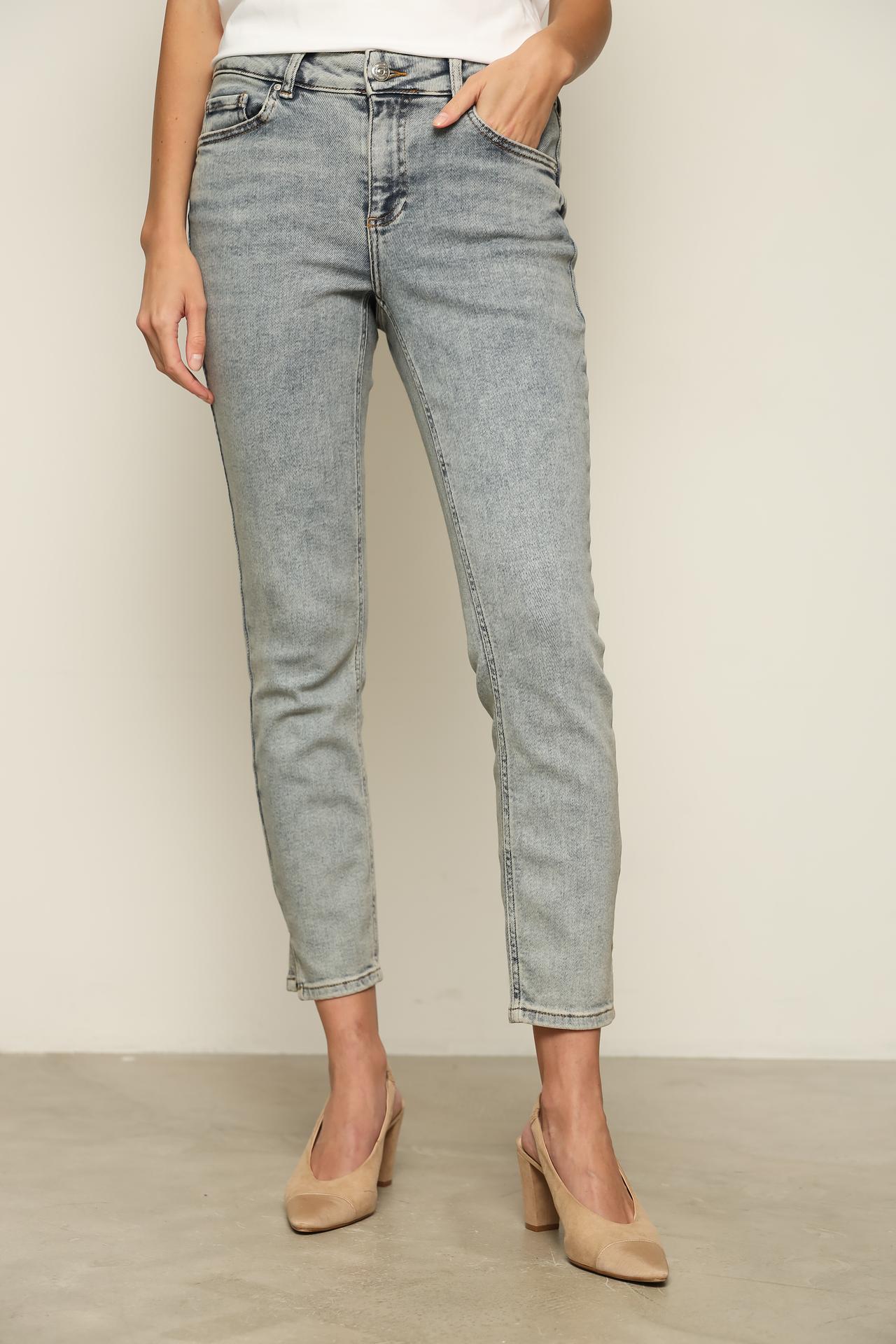 - Дизайн: Классическая модель с пятью карманами и застёжкой на молнии и пуговице. Светлый голубой цвет с эффектом лёгкого выцветания универсален и легко сочетается с любой одеждой.