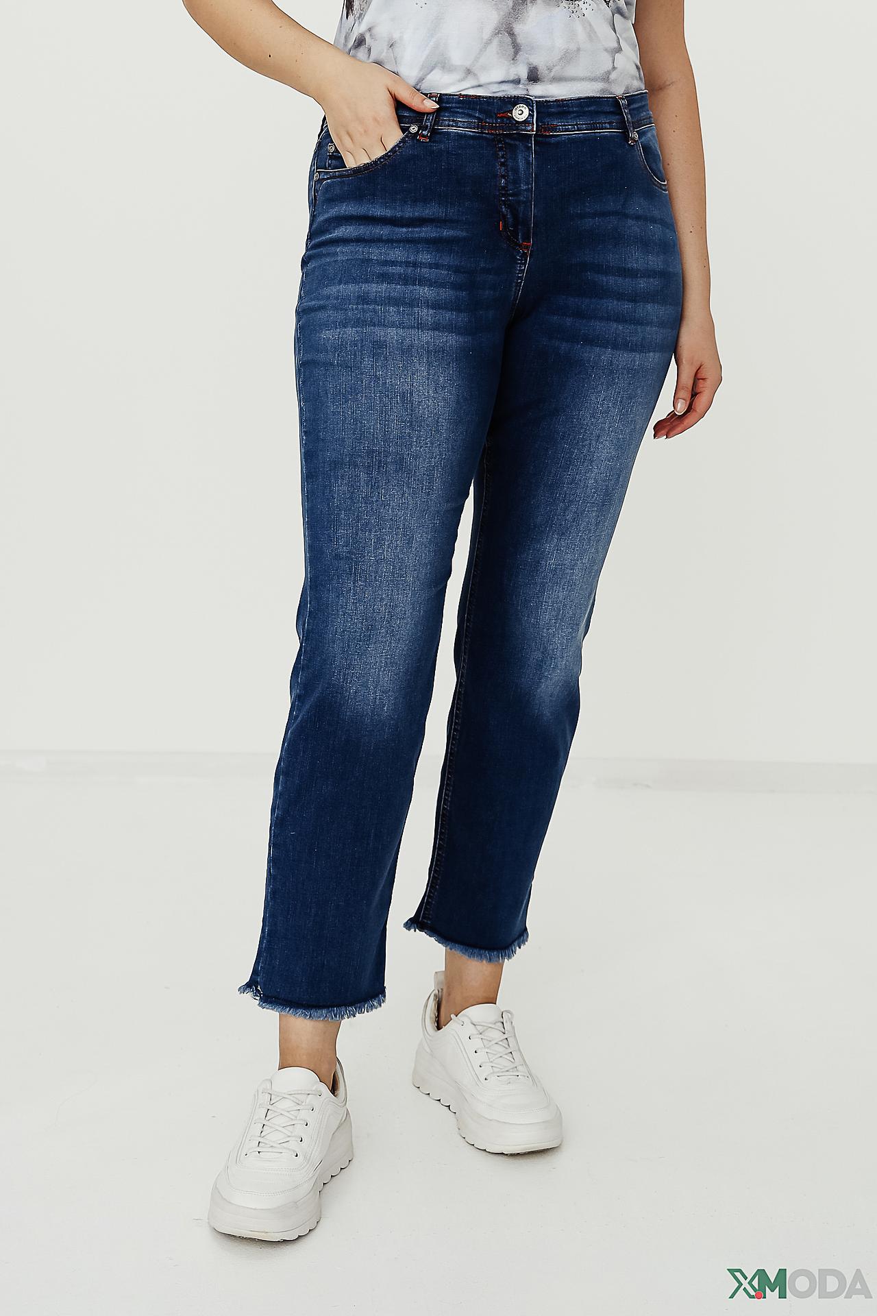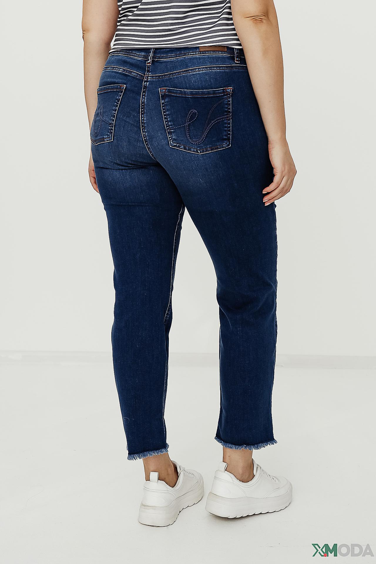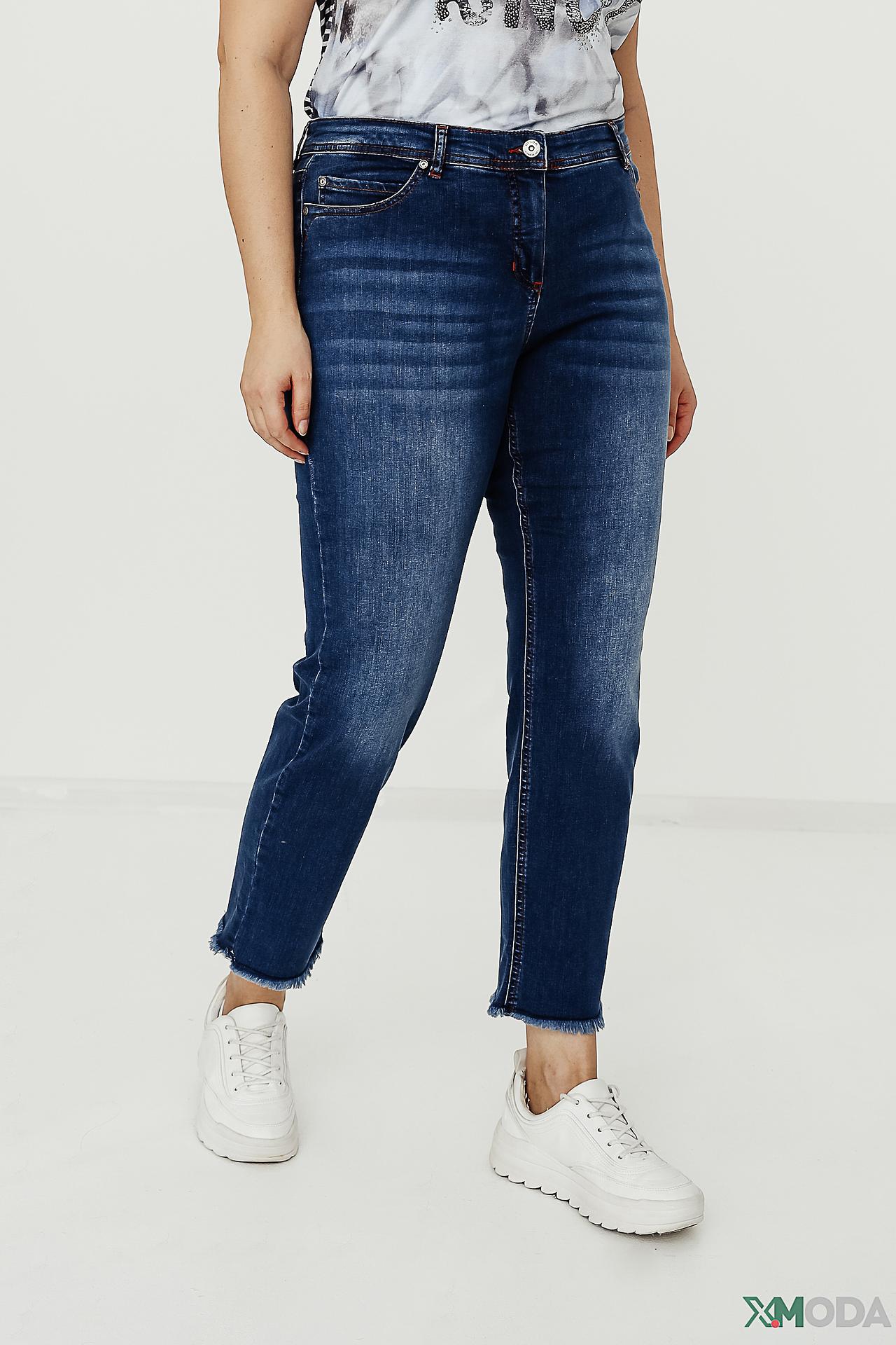 Джинсы Olsen синие с бахромой и контрастной строчкой