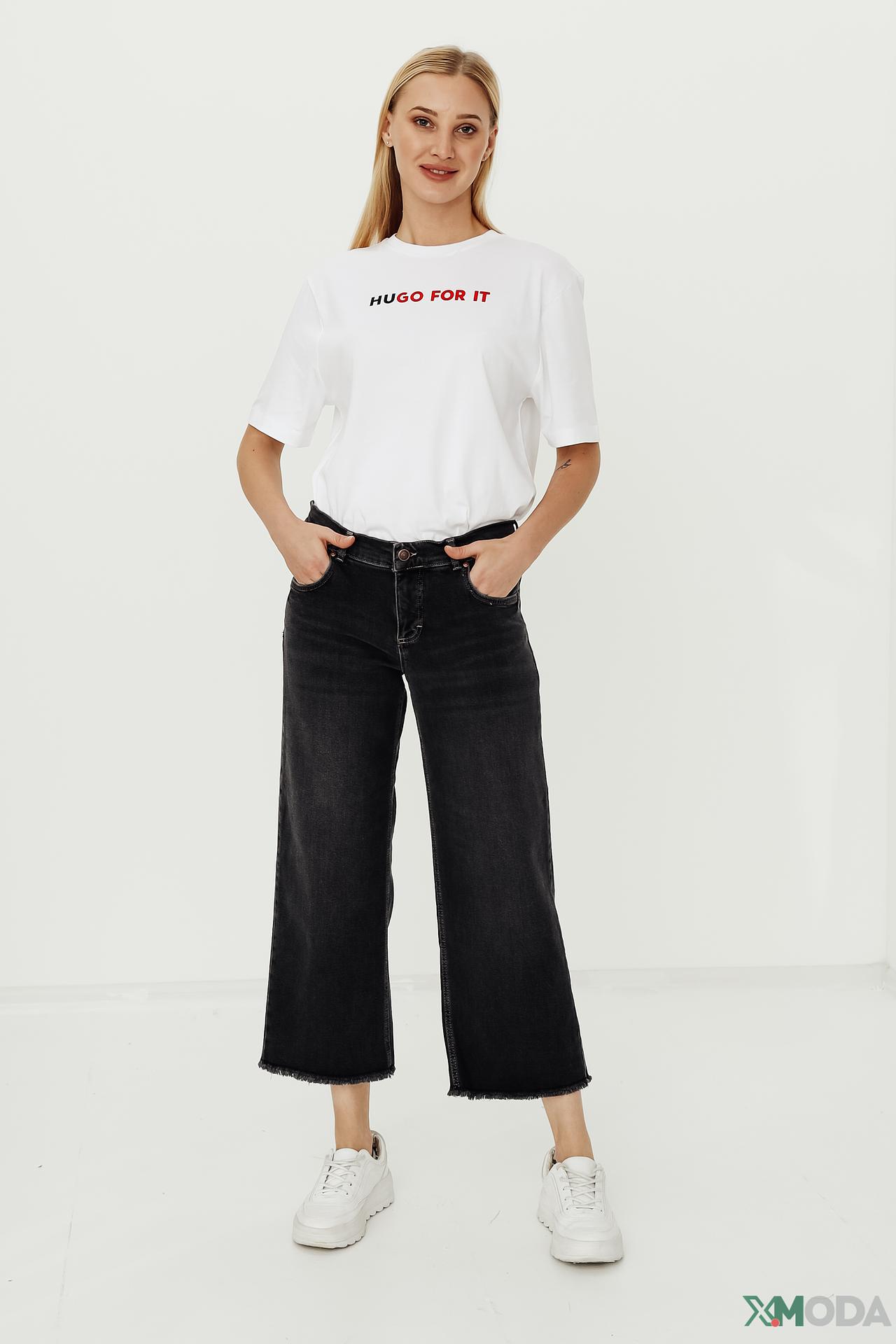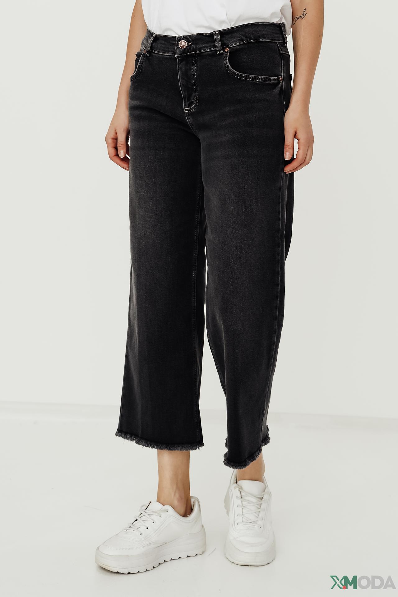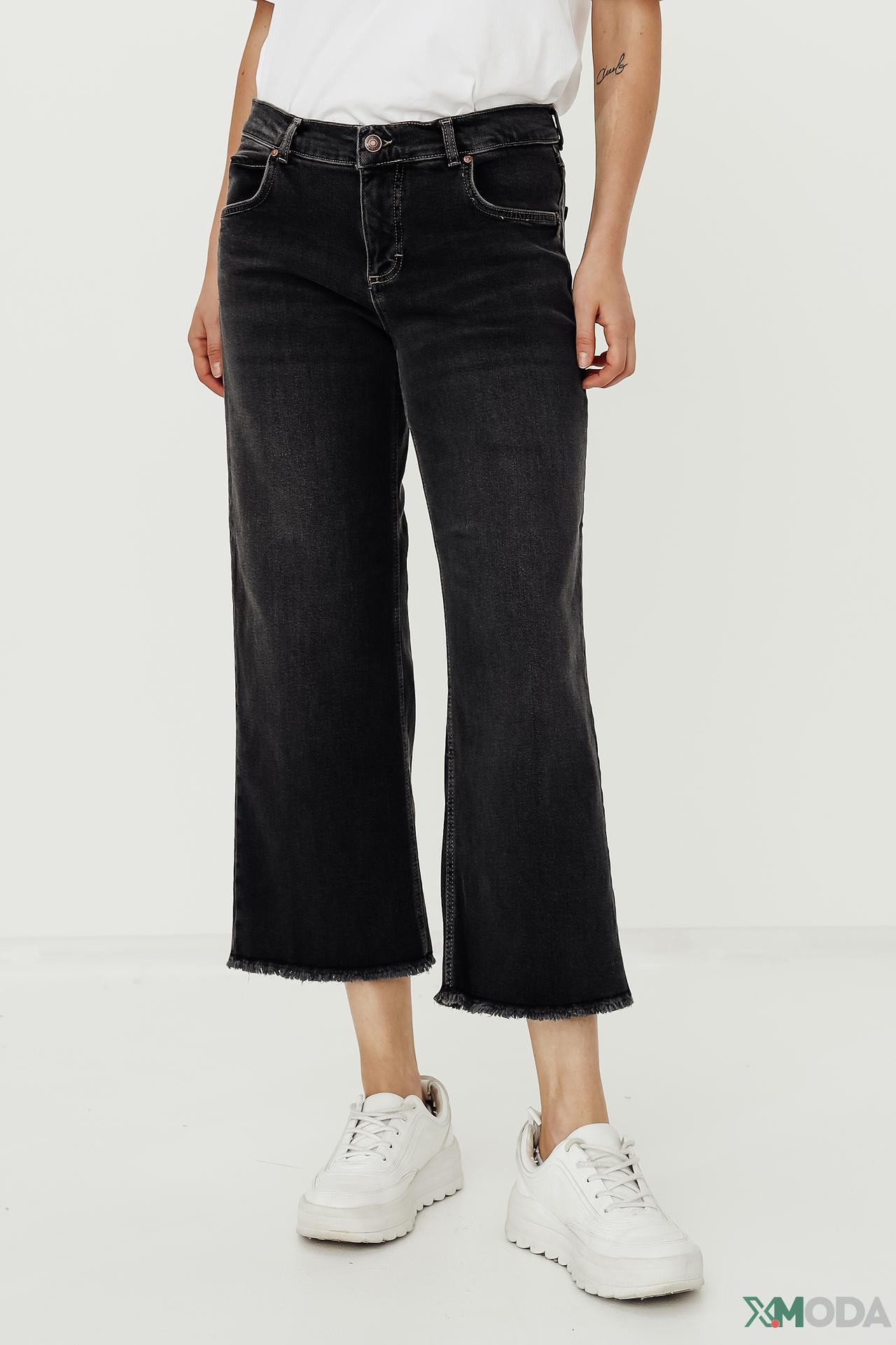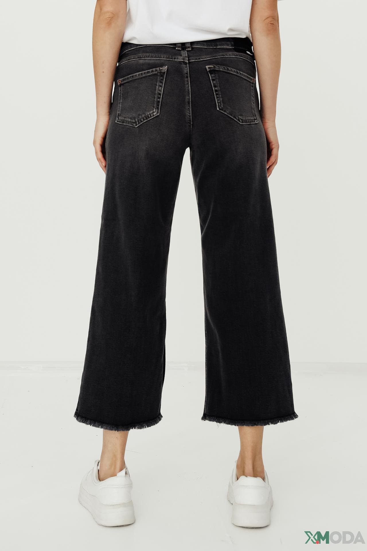 - Крой: Модель имеет современный укороченный крой с широкими штанинами, который визуально удлиняет ноги и подчеркивает фигуру.