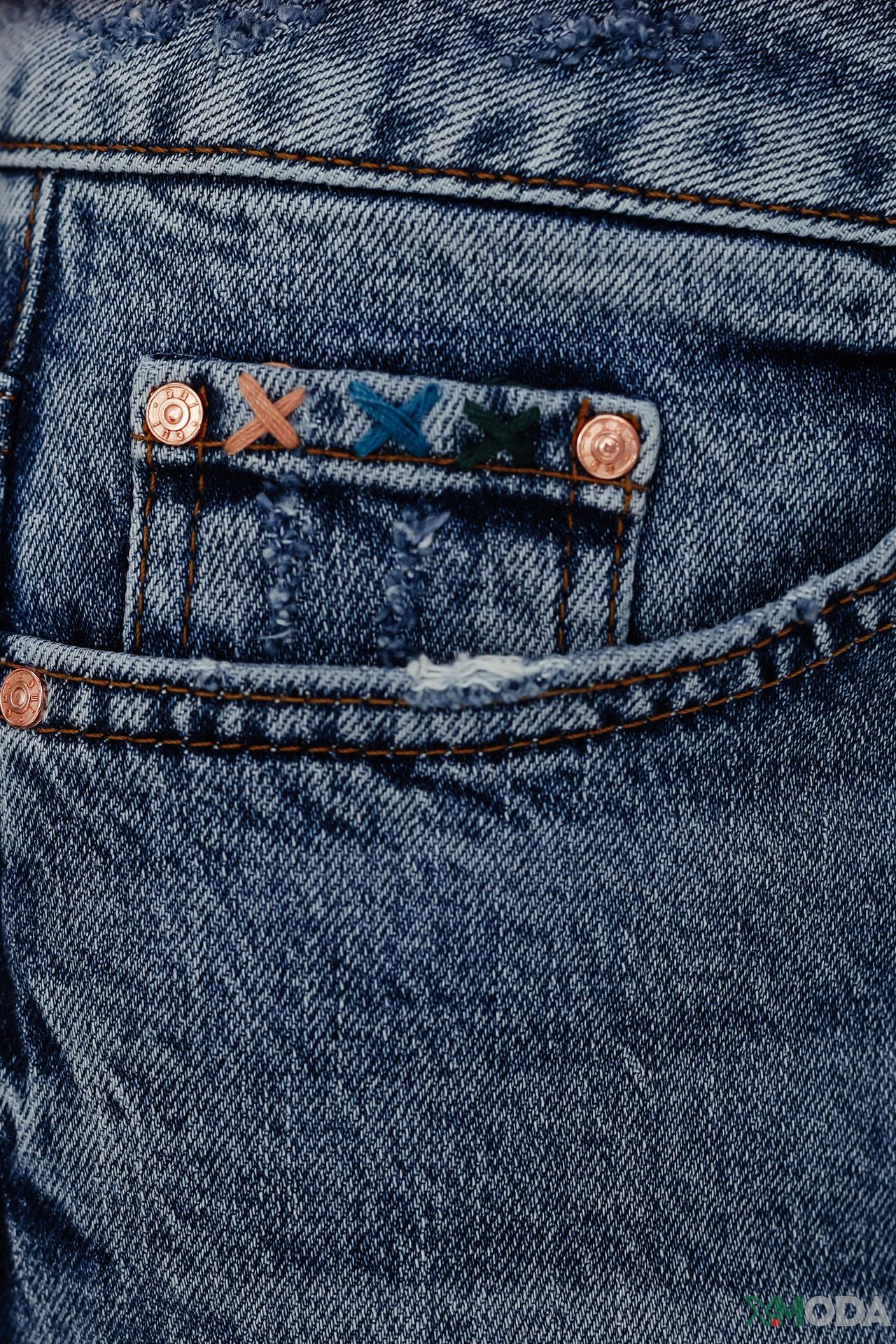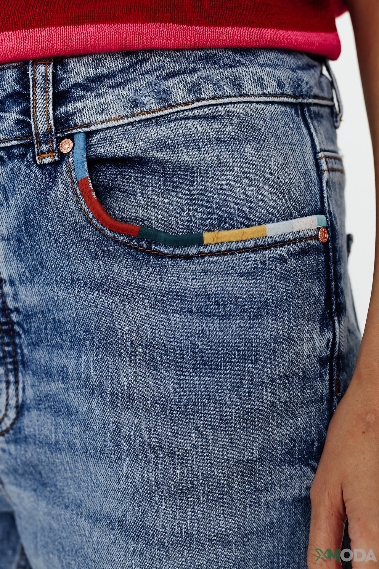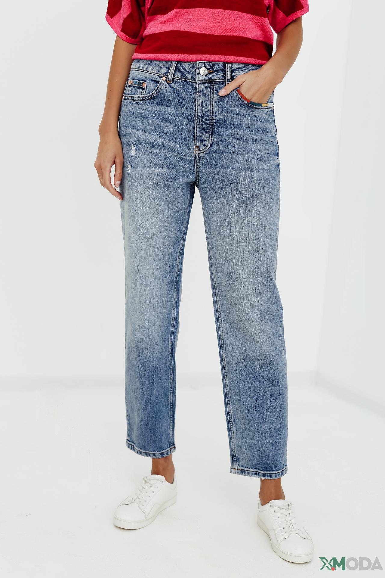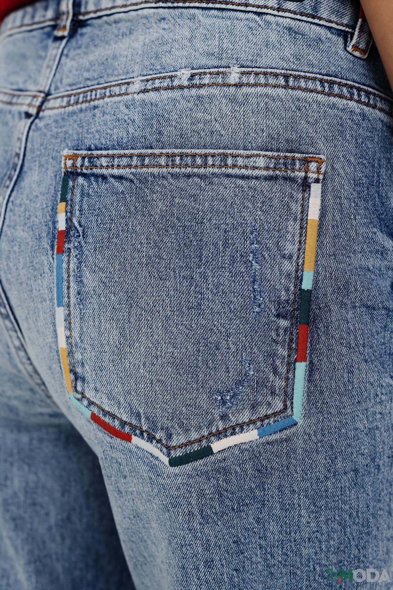- Оригинальные детали. Легкие потертости и декоративные цветные акценты на карманах придают джинсам уникальность и современный вид.