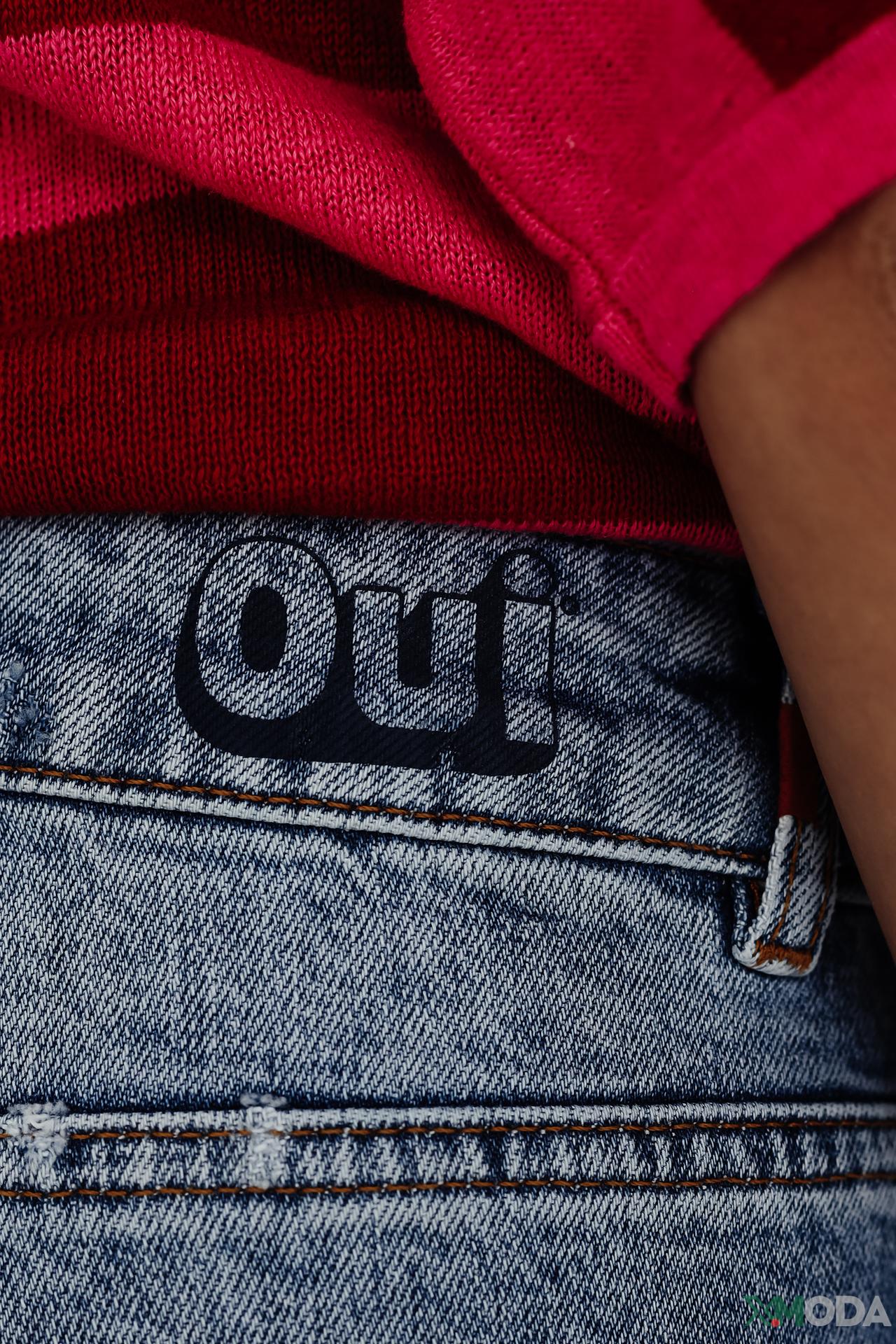 Джинсы Oui голубые с потертостями и цветными акцентами