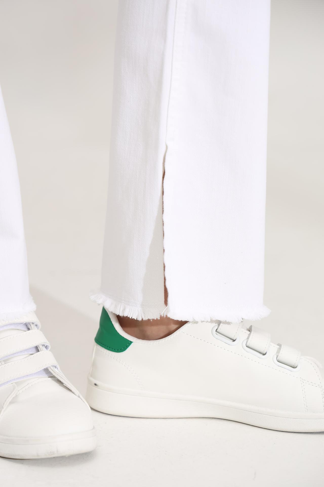 - Универсальность: Классический белый цвет и универсальный крой делают эти джинсы идеальными для сочетания с любым верхом – от повседневных футболок до элегантных блузок. Отличный вариант для летних джинсов и межсезонья.