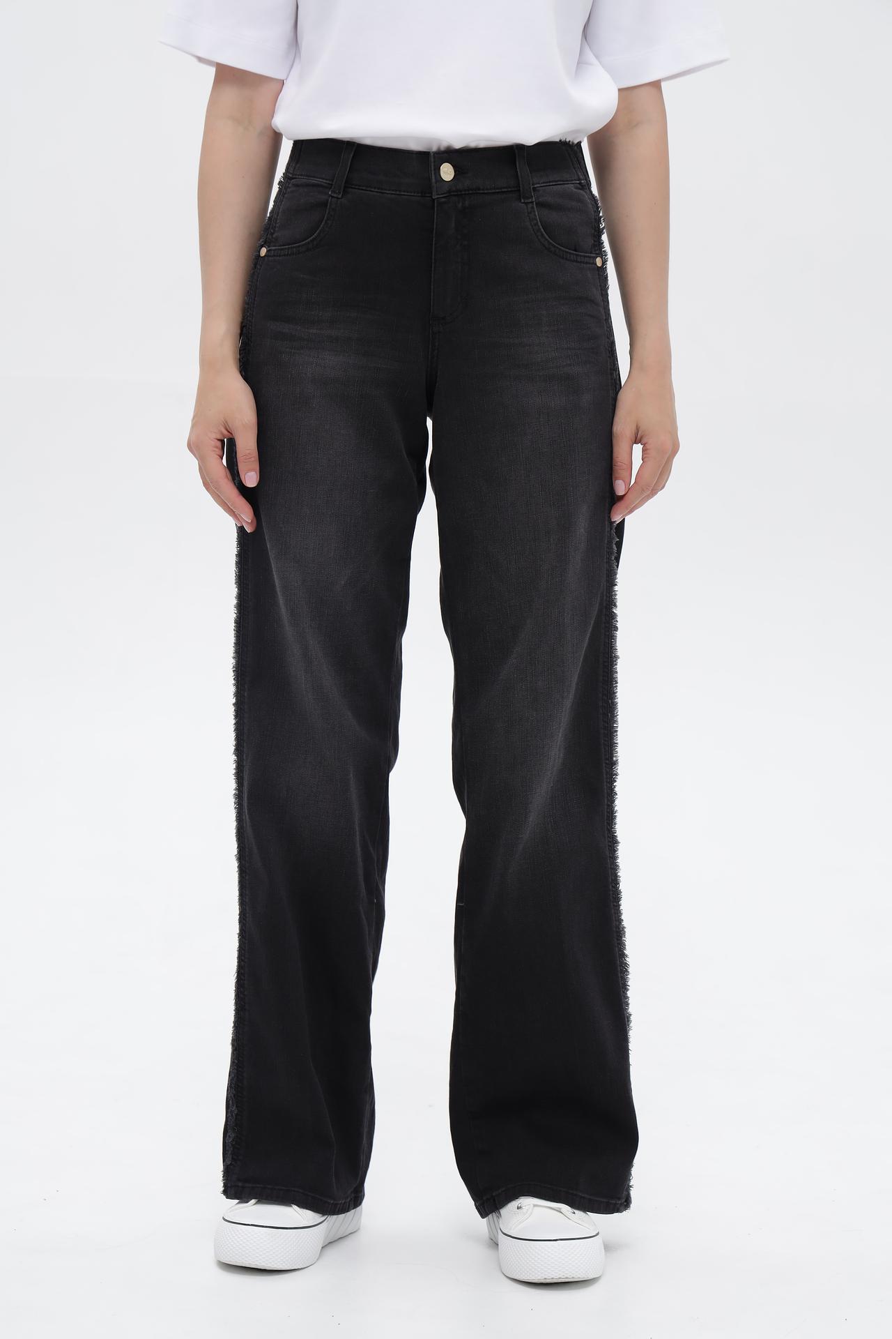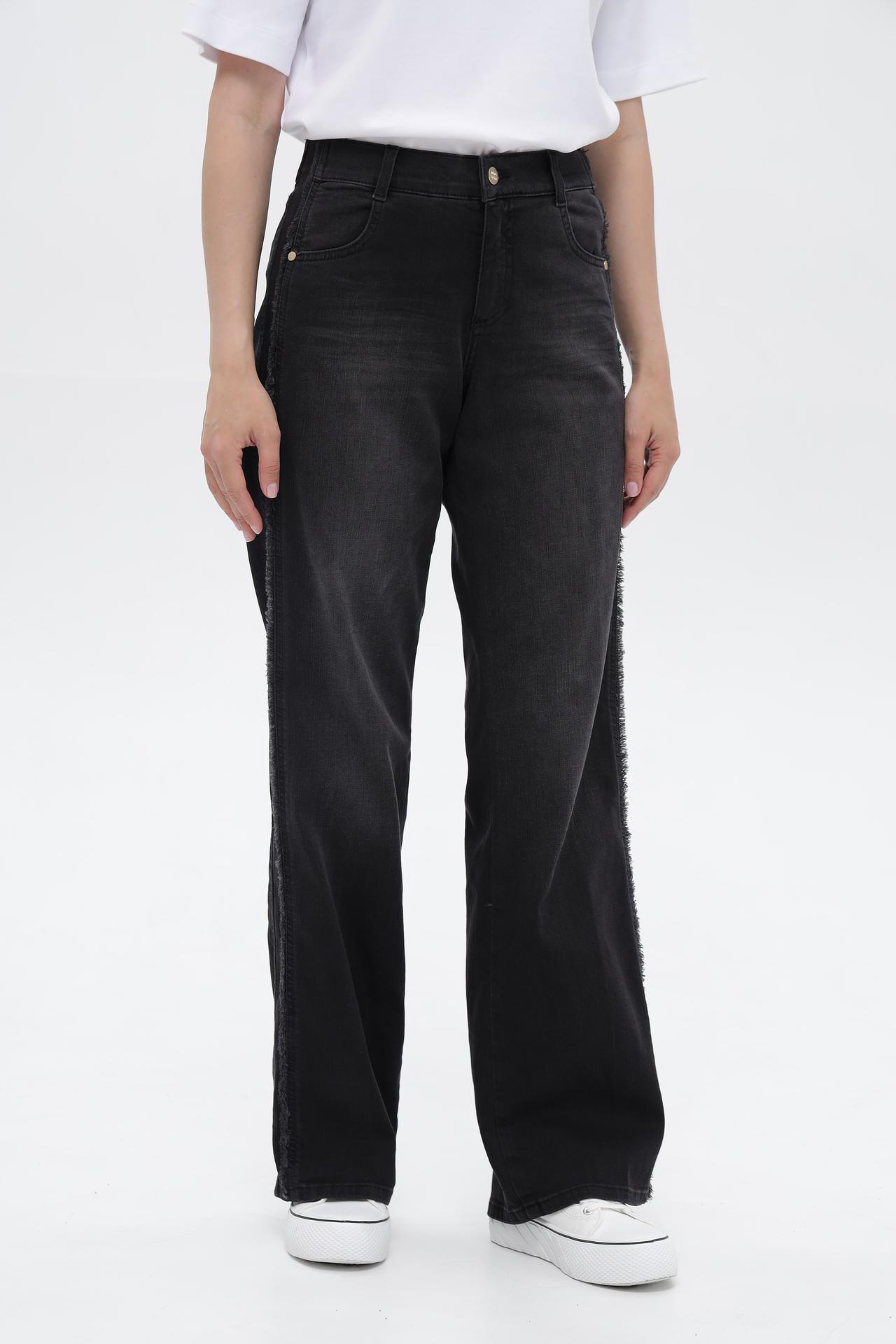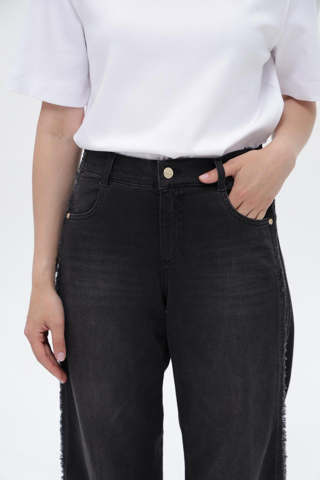 - Дизайн: Прямой крой брючин и высокая посадка создают элегантный силуэт. Детали в виде необработанного края по низу брючин придают модели актуальный вид.