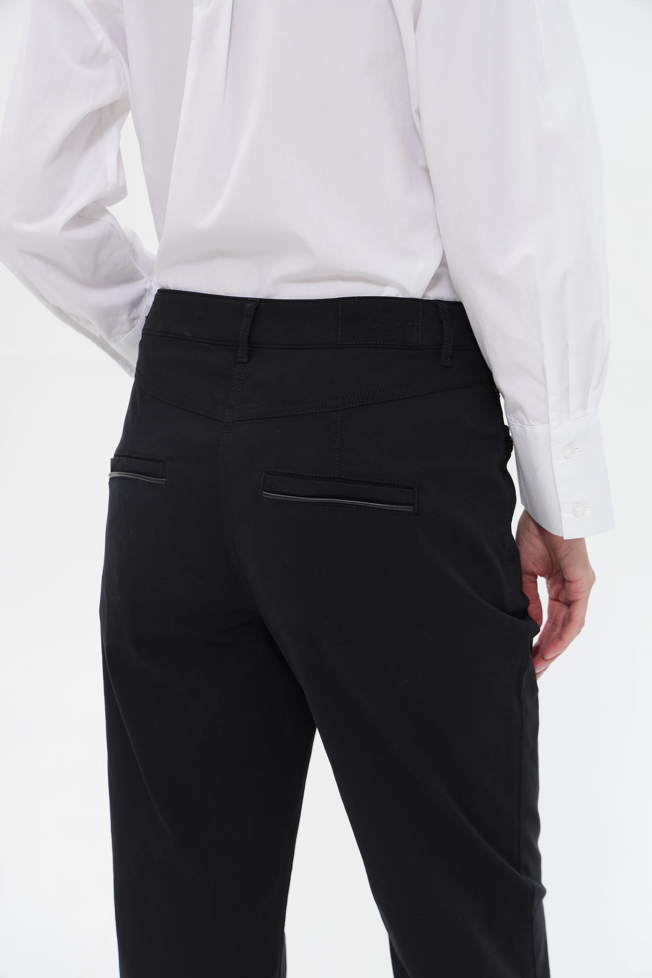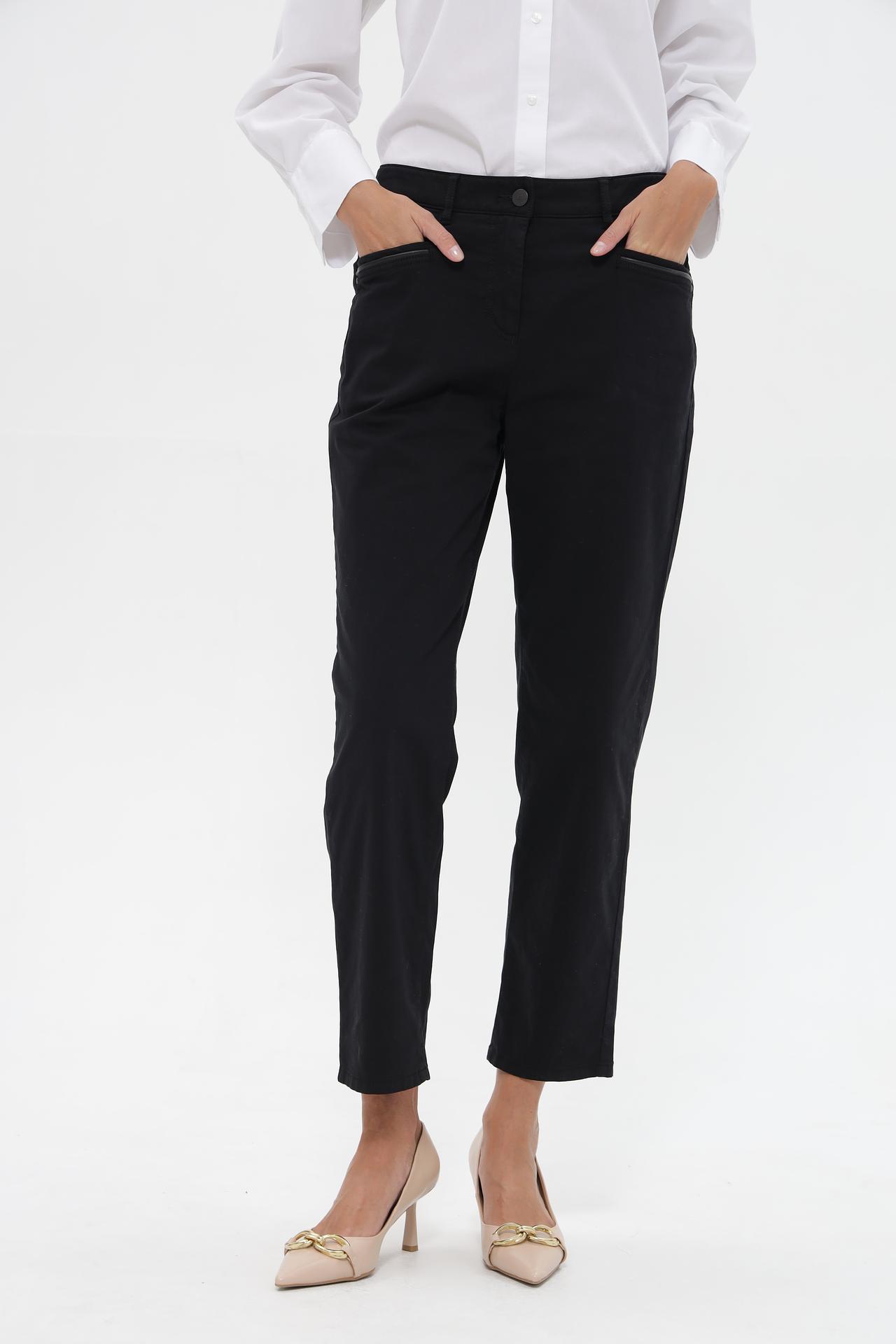Классический чёрный цвет делает джинсы универсальной основой для множества стильных комбинаций, от деловых до повседневных. Декоративная отделка карманов добавляет изысканности и акцентирует внимание на деталях.