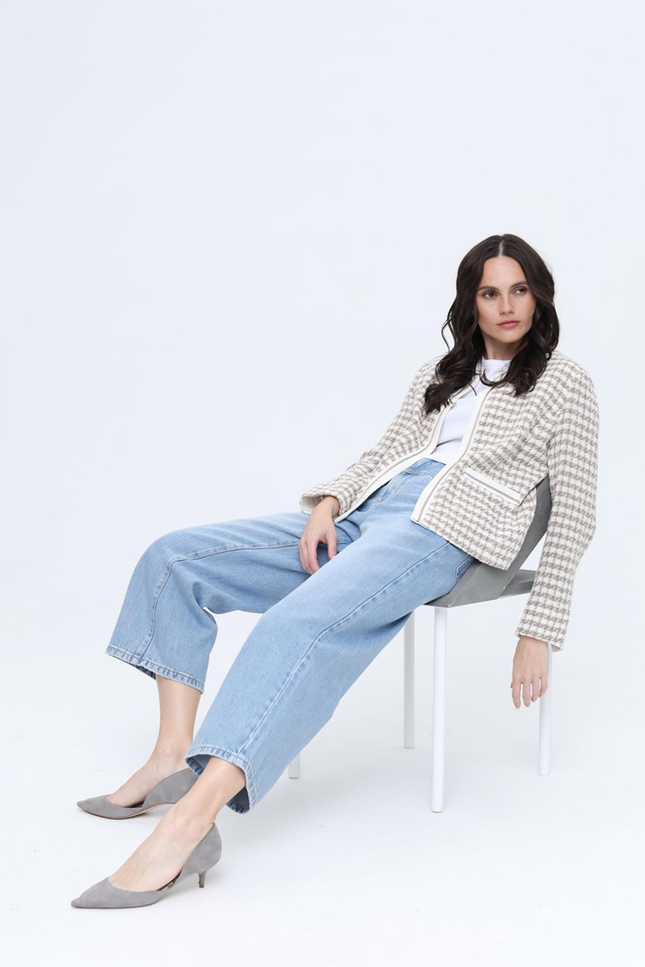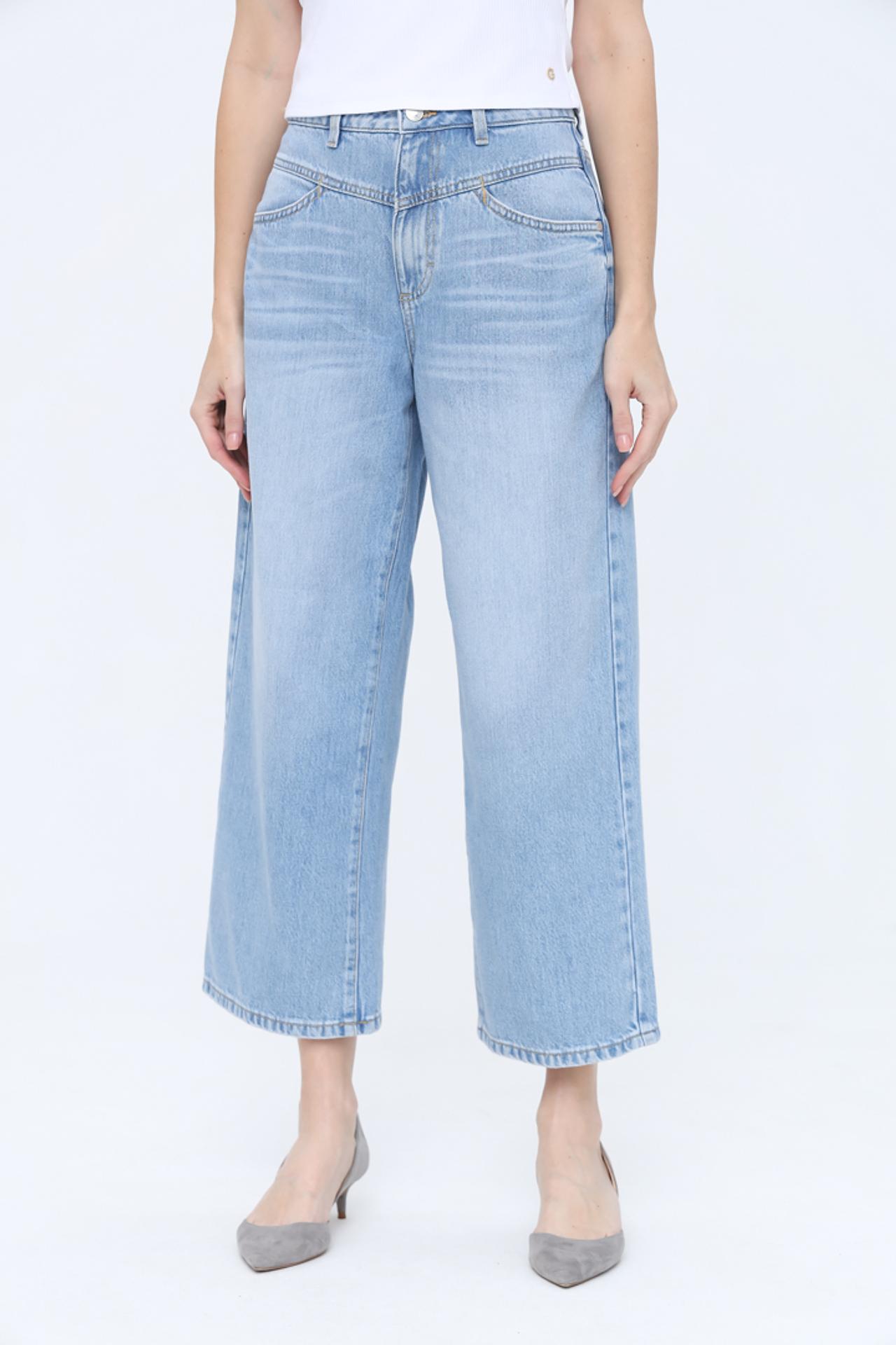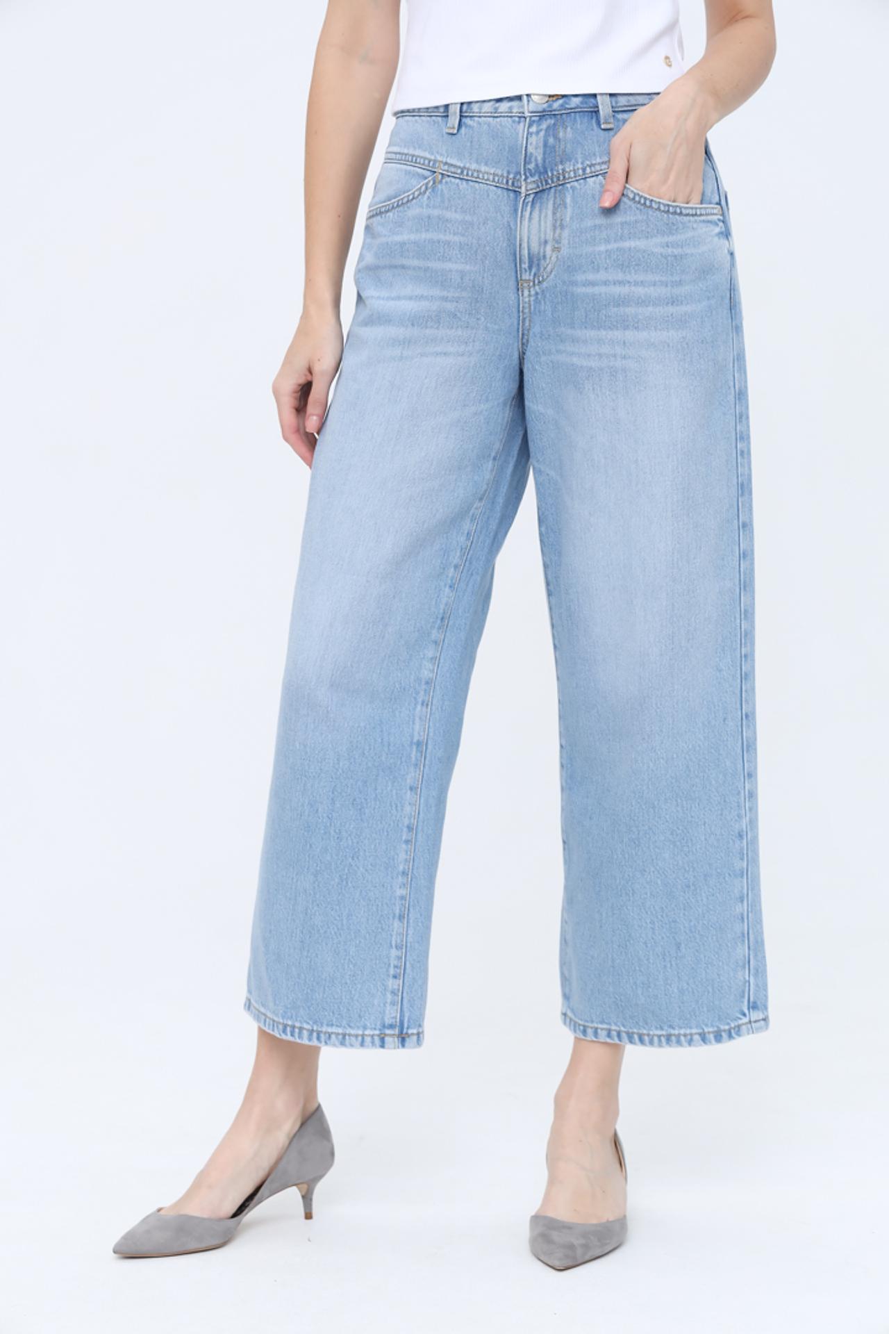 Изготовлены из премиальной ткани, состоящей из 60% хлопка и 40% лиоцела, обеспечивая мягкость и долговечность. Светло-голубой цвет ткани придает джинсам свежий вид.
