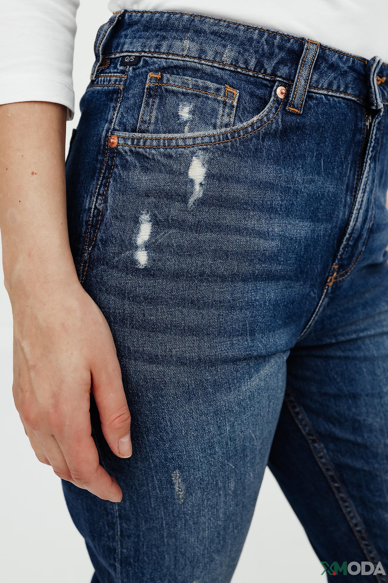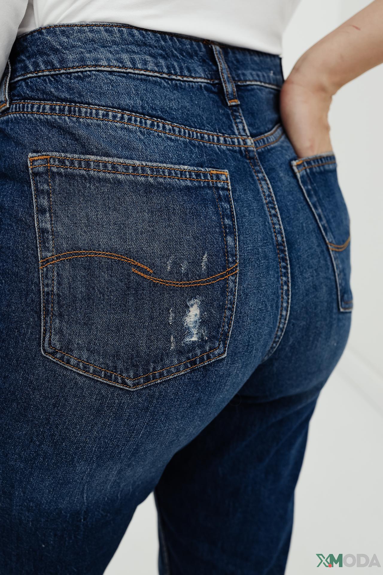 - Стильный дизайн: Темно-синие джинсы с эффектом легких потертостей и аккуратными рваными деталями на штанинах создают непринужденный и актуальный образ. Эта модель станет акцентом вашего повседневного стиля, легко сочетаясь как с простыми футболками, так и с нарядными блузками, подчеркивая вашу индивидуальность.
