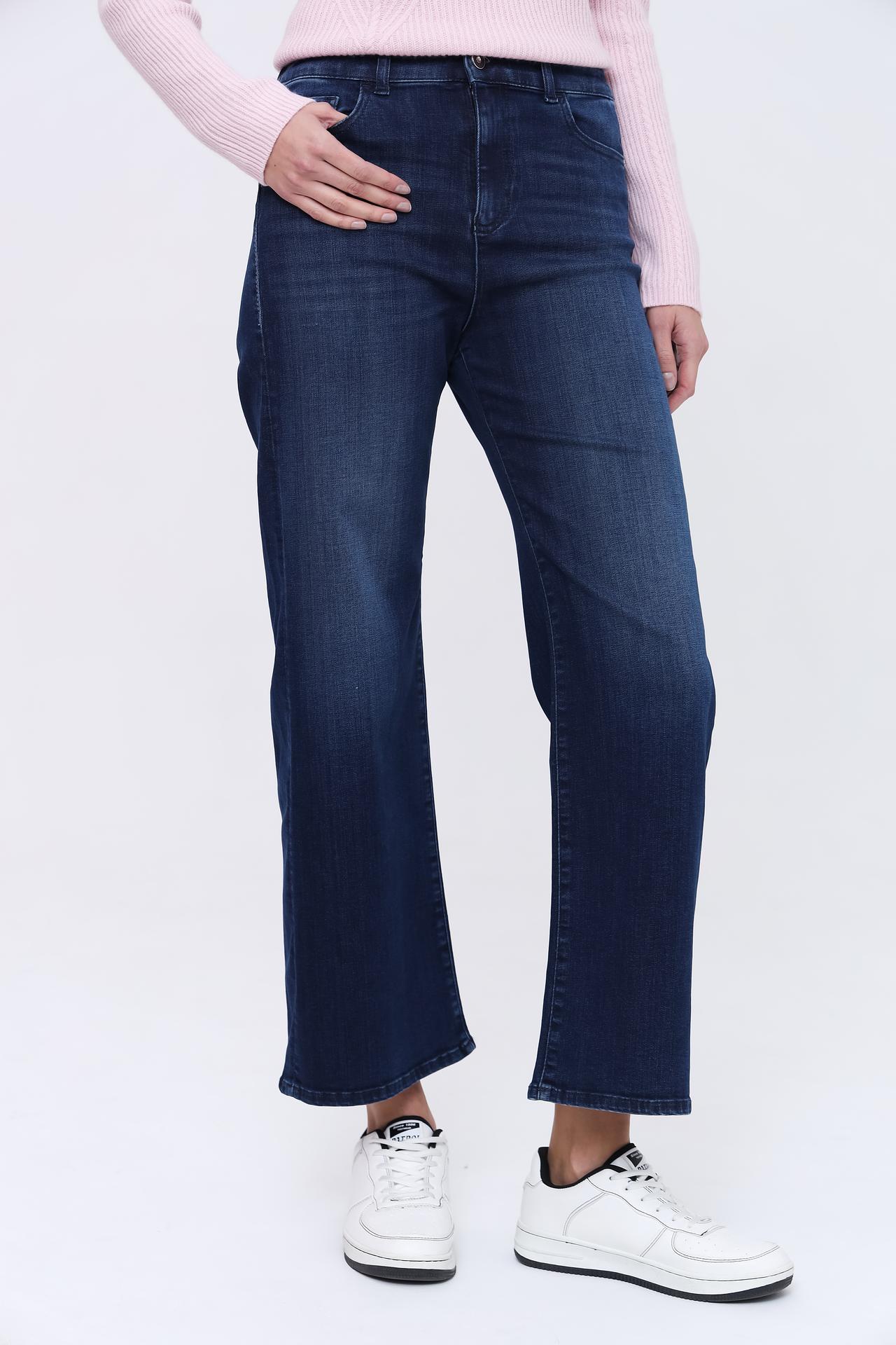 Представляем стильные женские брюки из денима в насыщенном темно-синем цвете. Эти удобные и модные брюки станут отличным дополнением к вашему гардеробу, идеально подходя как для повседневной носки, так и для создания более элегантных образов. Благодаря универсальному крою, они прекрасно сочетаются с различными видами обуви и верха.
