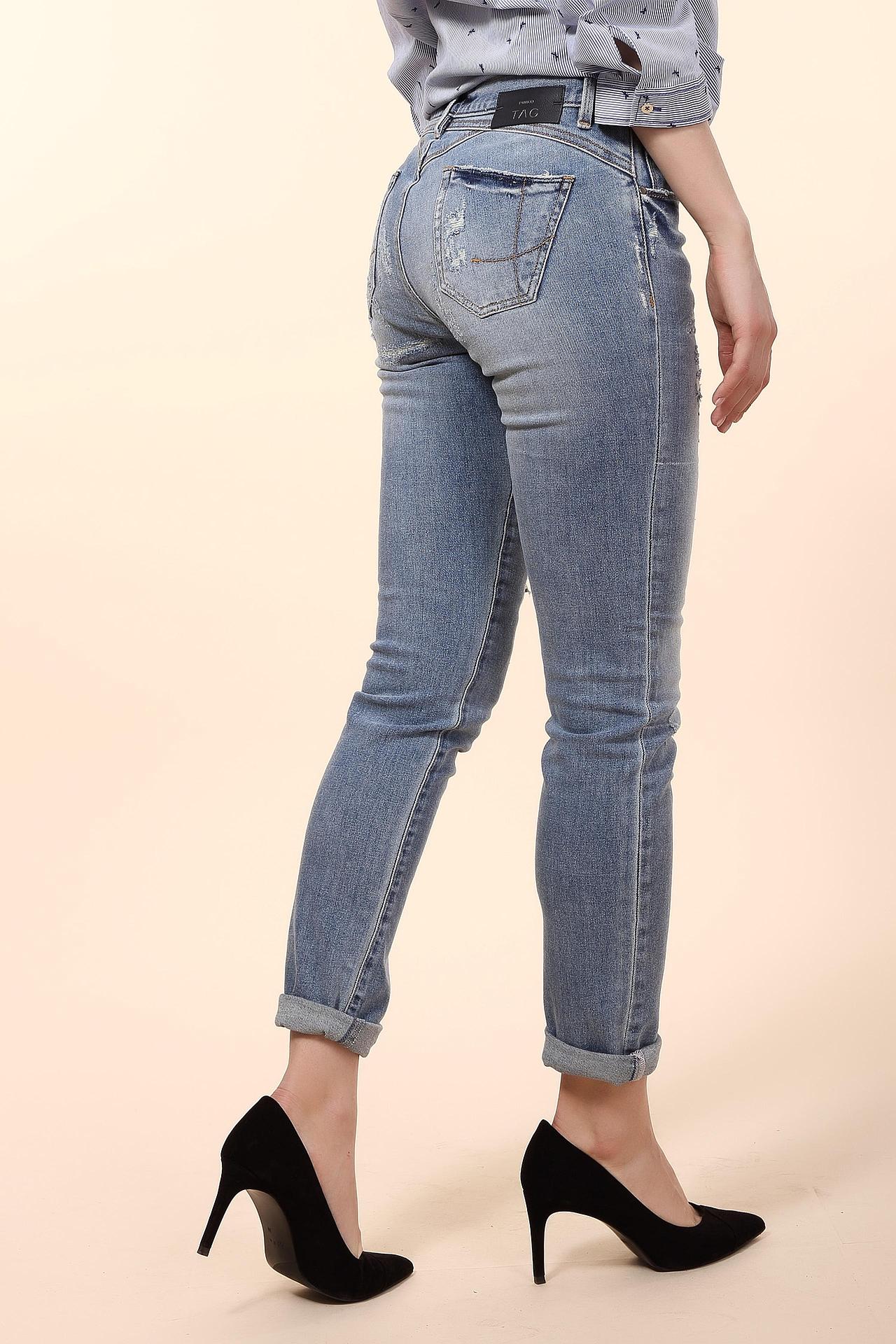 Джинсы дополнены потертостями и рваностями, что придает им оригинальный и стильный вид. Отлично подойдут для создания повседневных образов в стиле casual.
