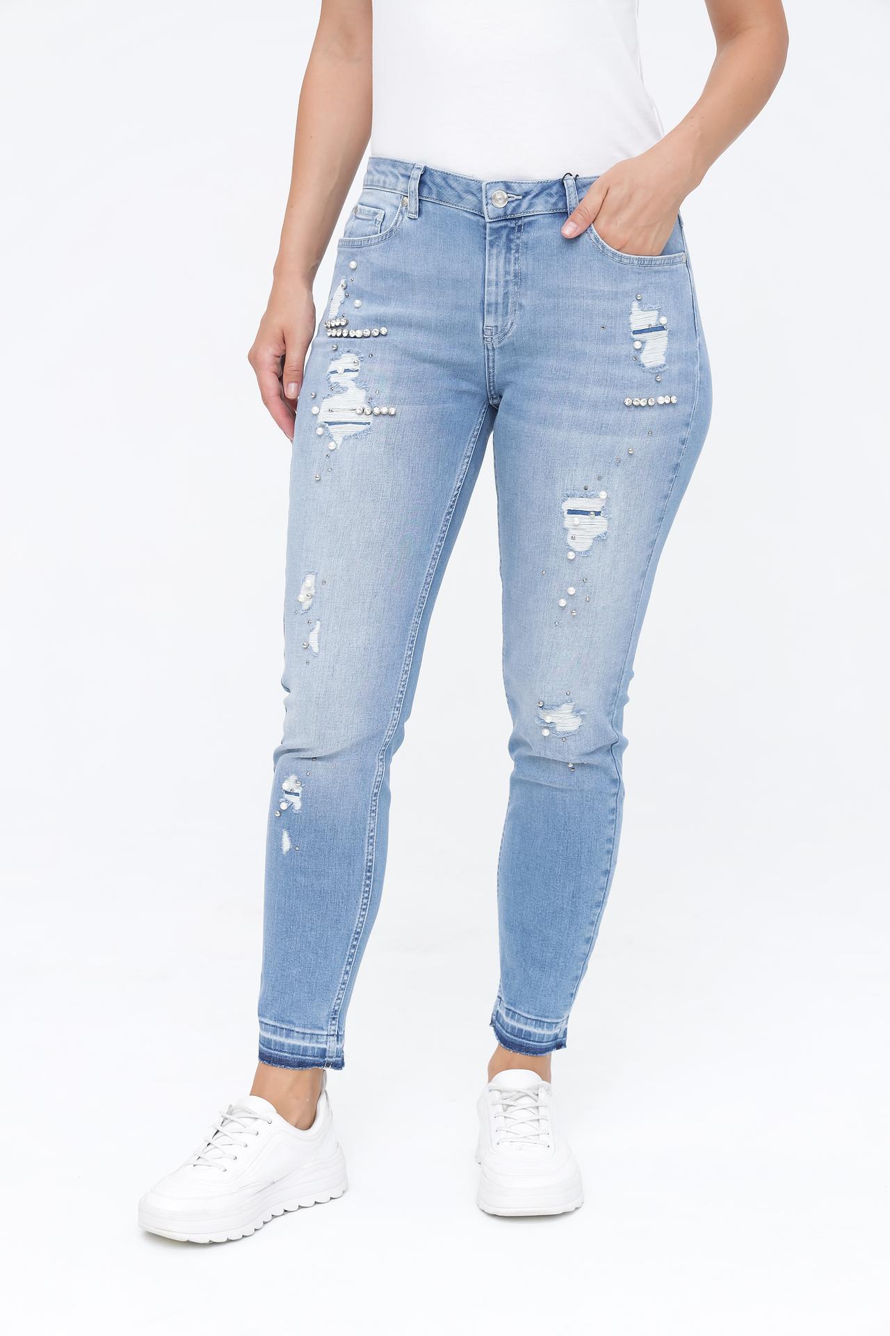 Джинсы Monari Голубые с рваными деталями, жемчугом и стразами